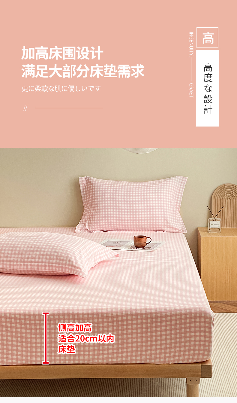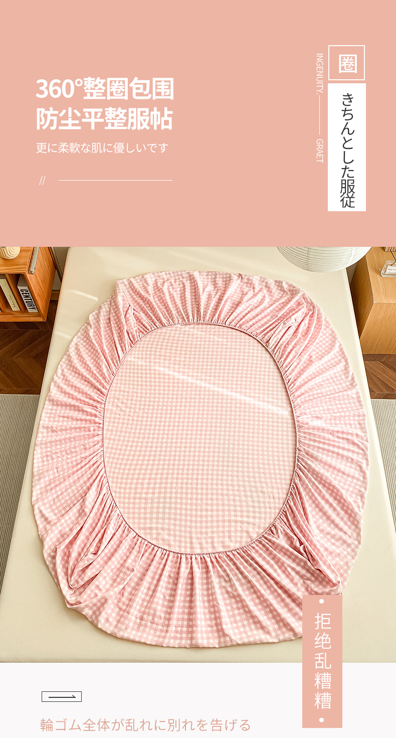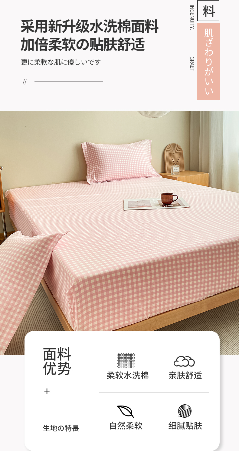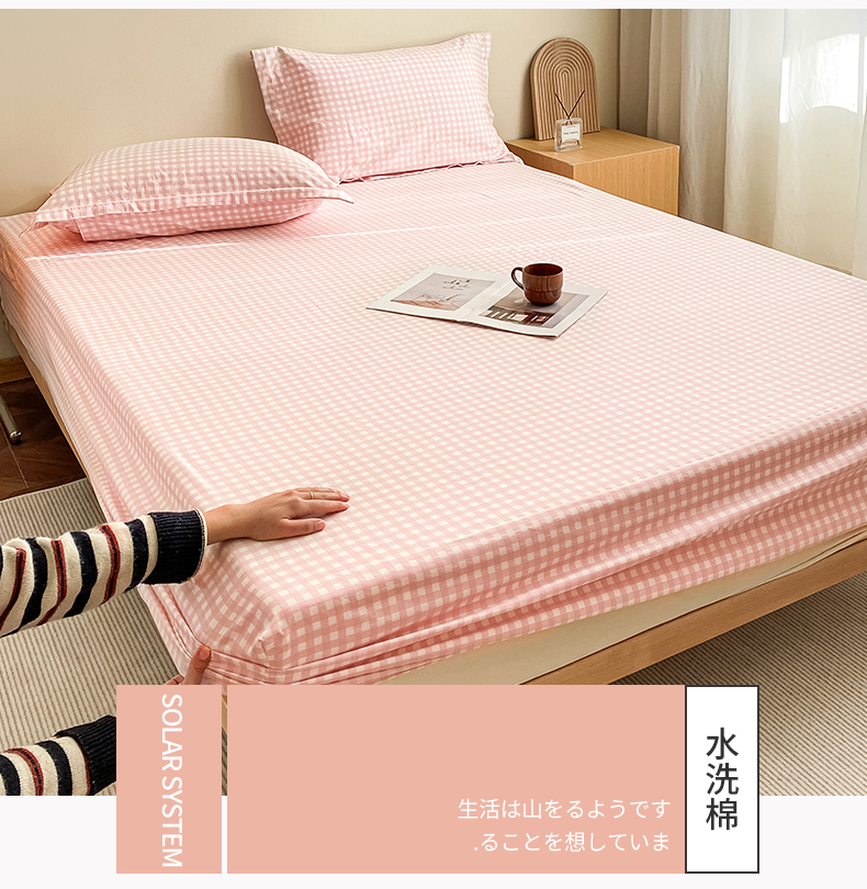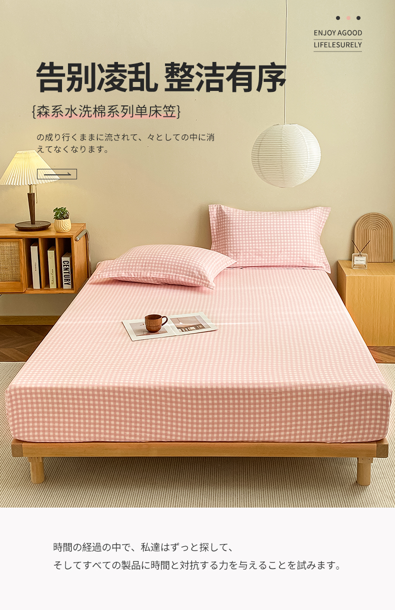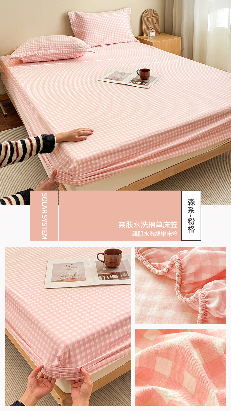 恬澳家纺 2025新款森系水洗棉无印风单床笠场景三 森系-粉格