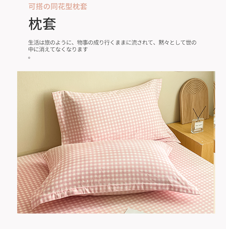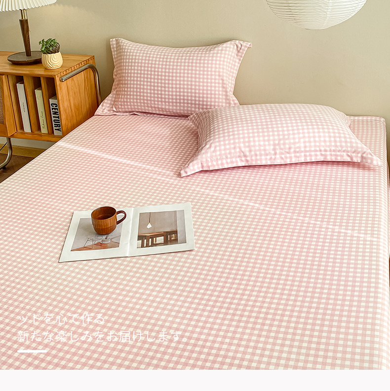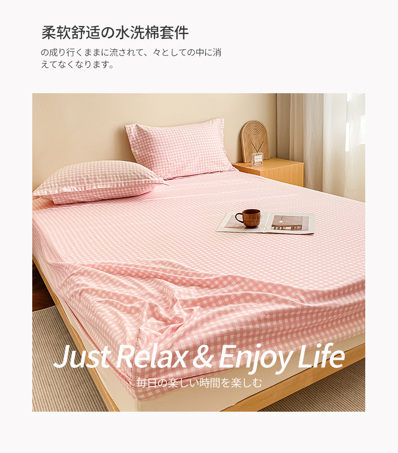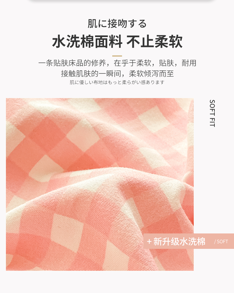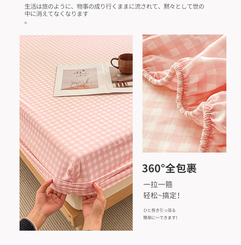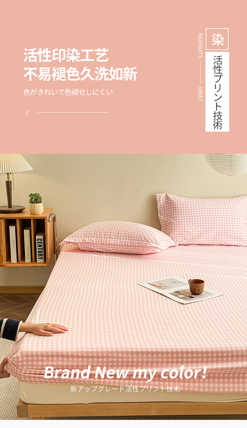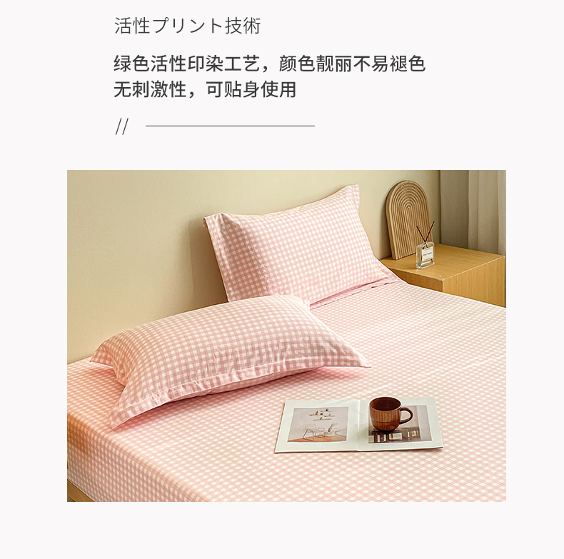 恬澳家纺 2025新款森系水洗棉无印风单床笠场景三 森系-粉格