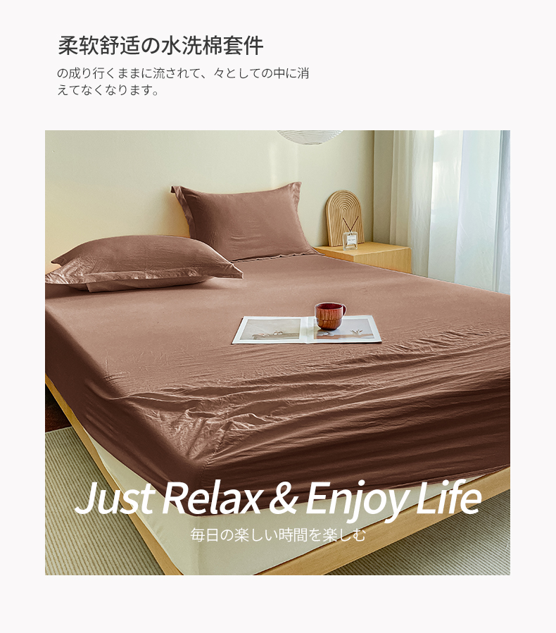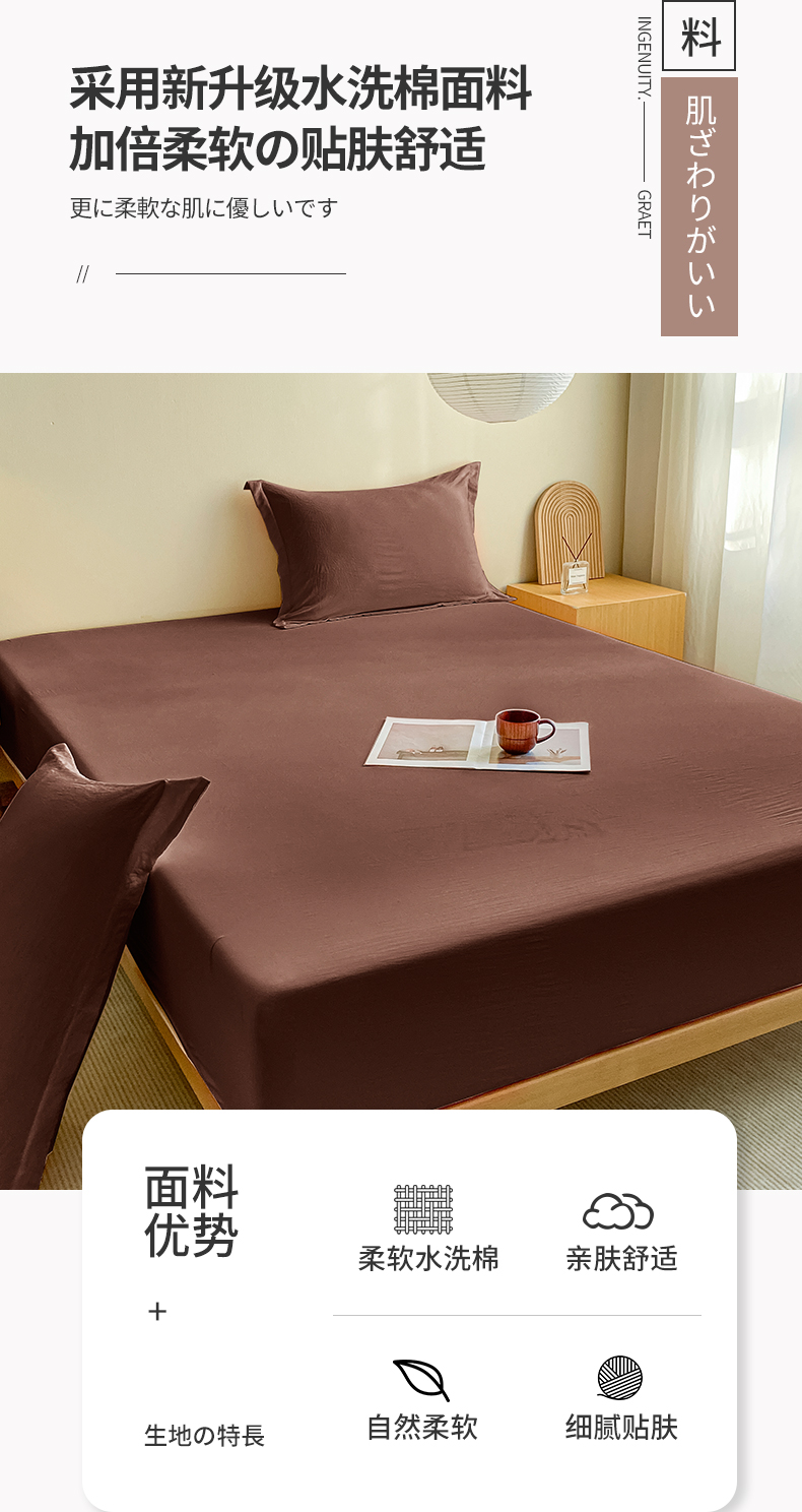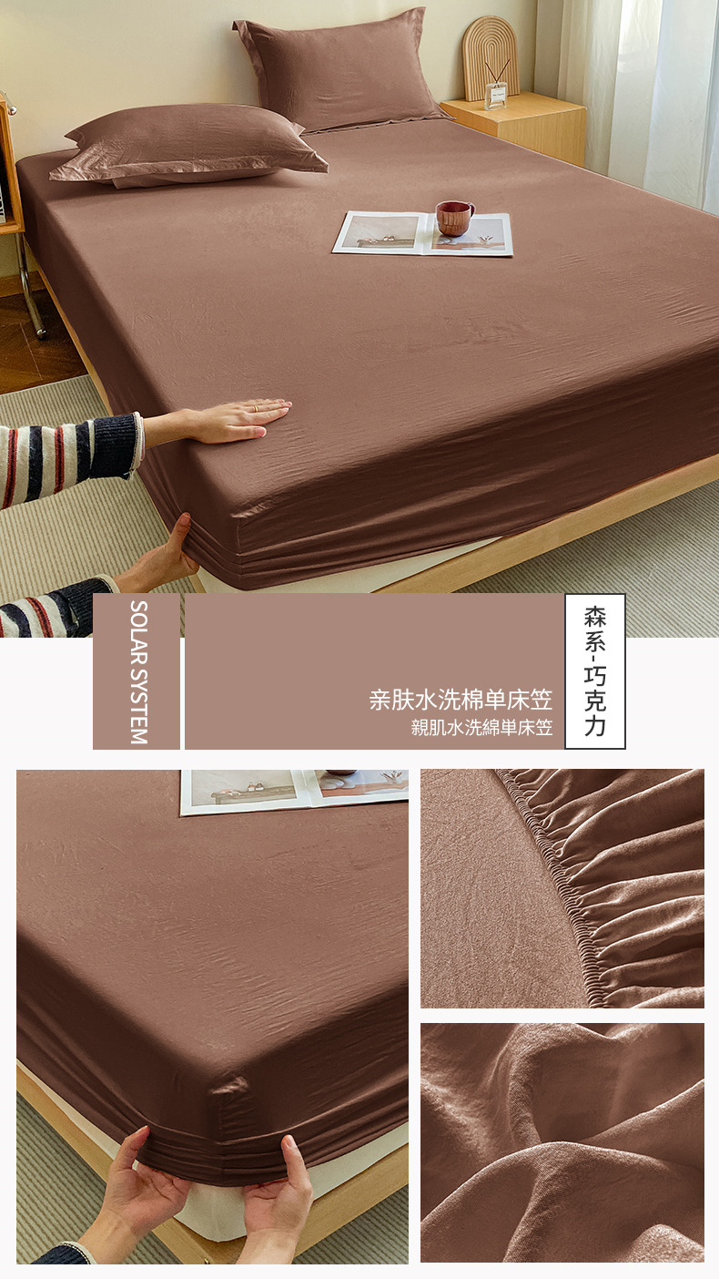 恬澳家纺 2025新款森系水洗棉无印风单床笠场景三 森系-巧克力