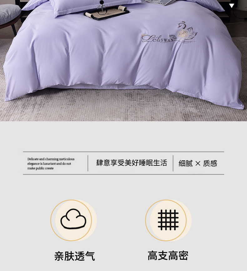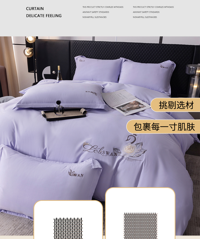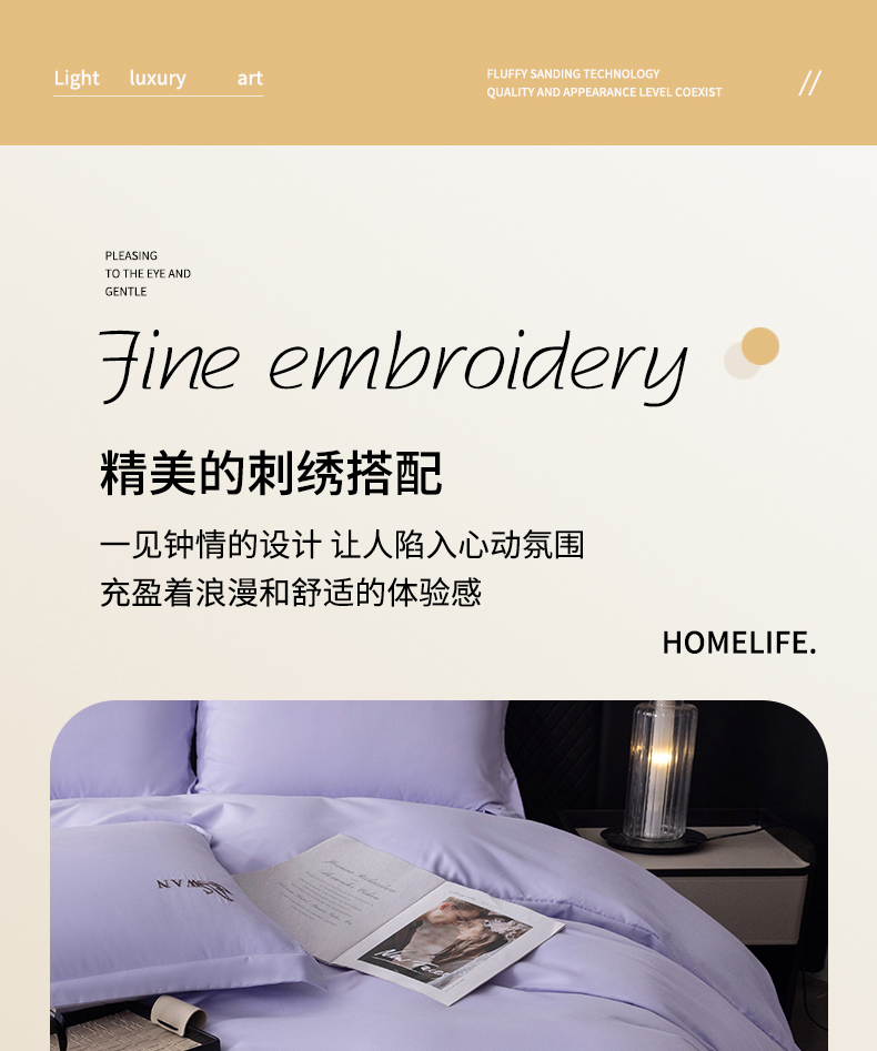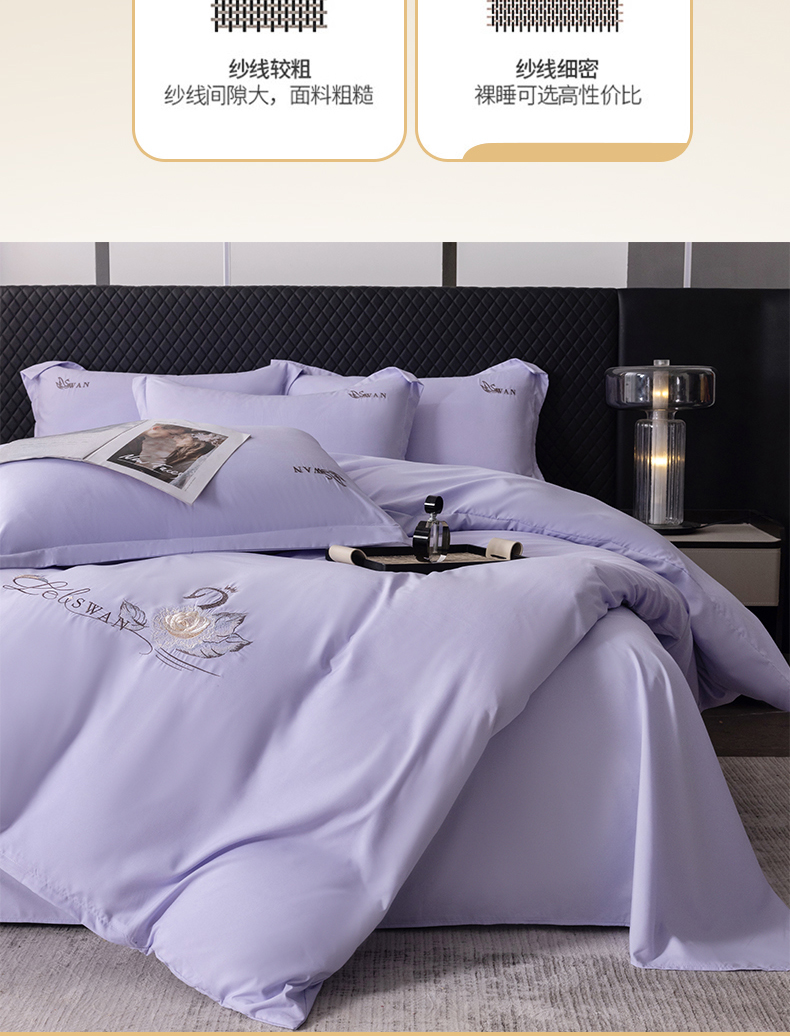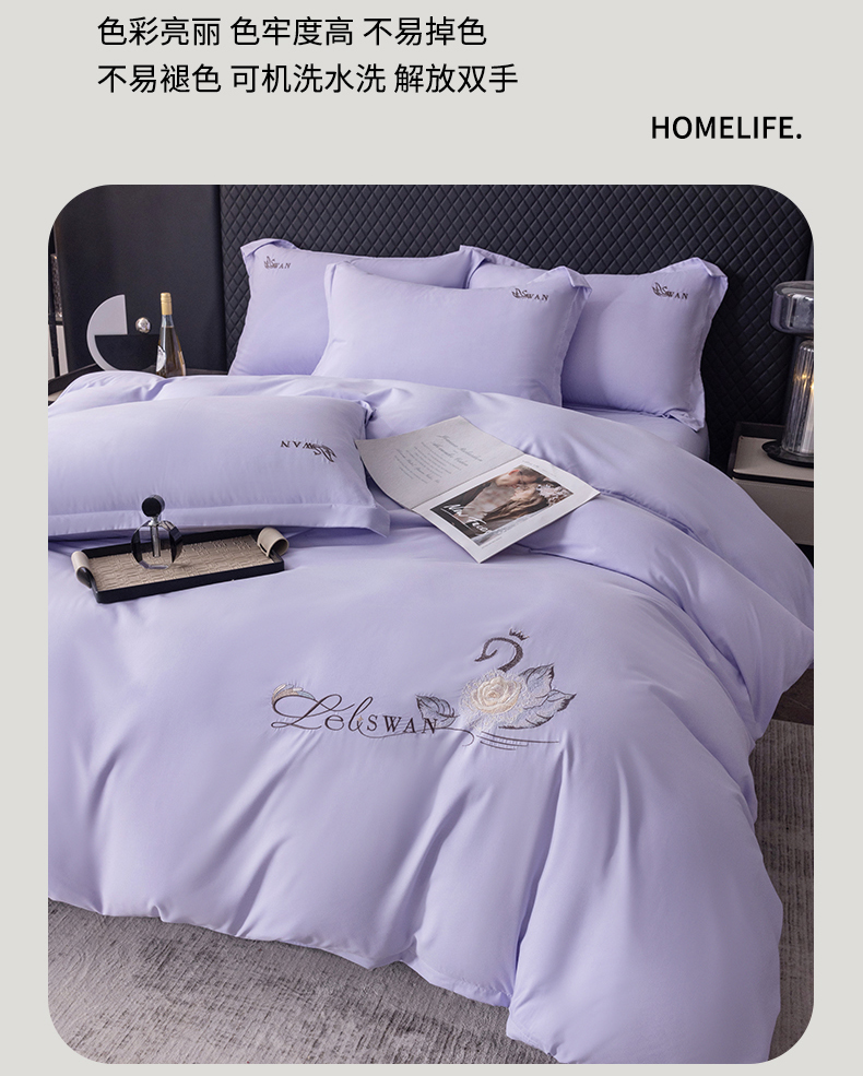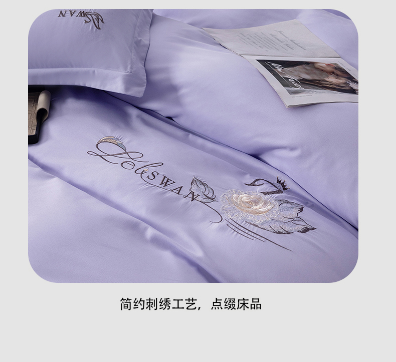 当前位置: 91家纺网 > 商品网购 > 床品套件 > 四件套 > 水洗棉四件套 > 丫丫家纺 2025纯色绣花四件套 花梦-梦幻紫