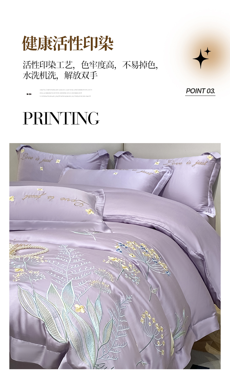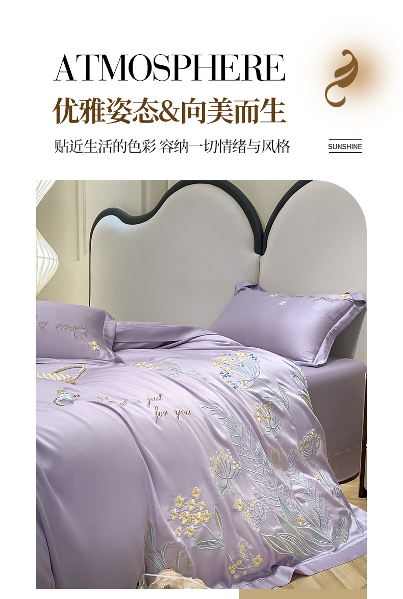 (总)爱家 2023新款超柔雪莲天丝刺绣四件套-花开半夏系列,花开半夏-宾利蓝,花开半夏-公主粉,花开半夏-奶油黄,花开半夏-奶油绿,花开半夏-优雅紫