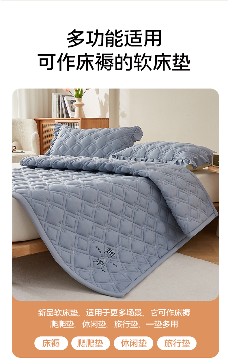 当前位置: 91家纺网 > 商品网购 > 床垫/床褥 > 普通床垫 > 东宇 2025年新款A类亲肤水洗棉-羽丝棉床垫 无染床垫-蓝灰
