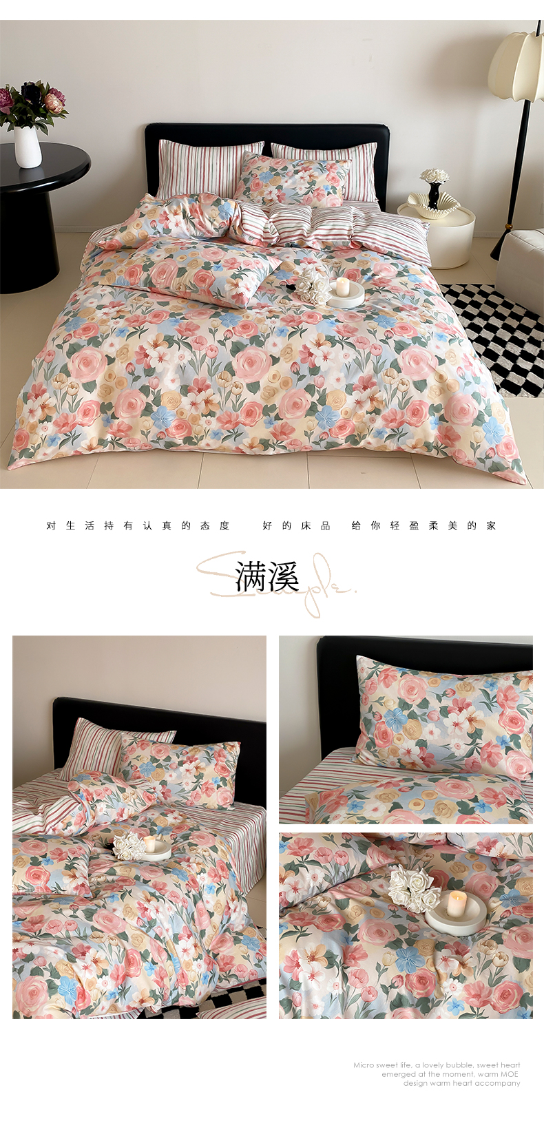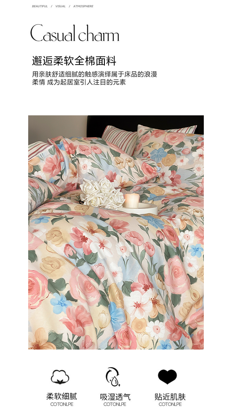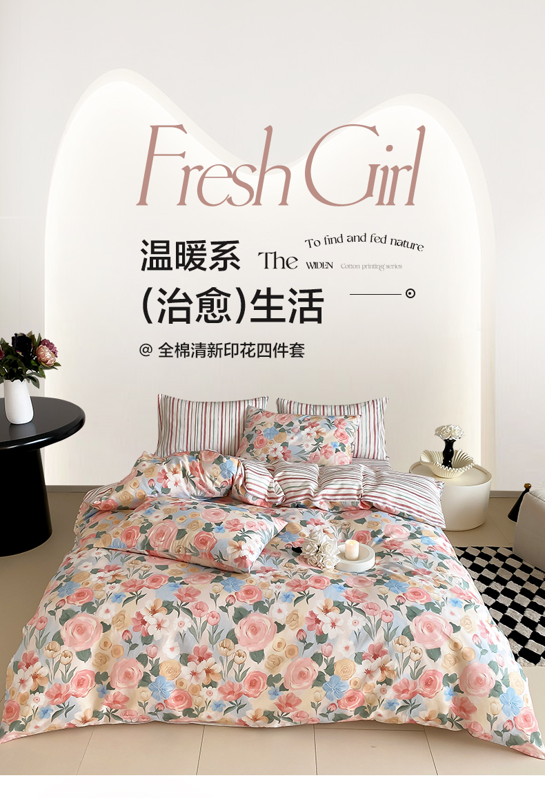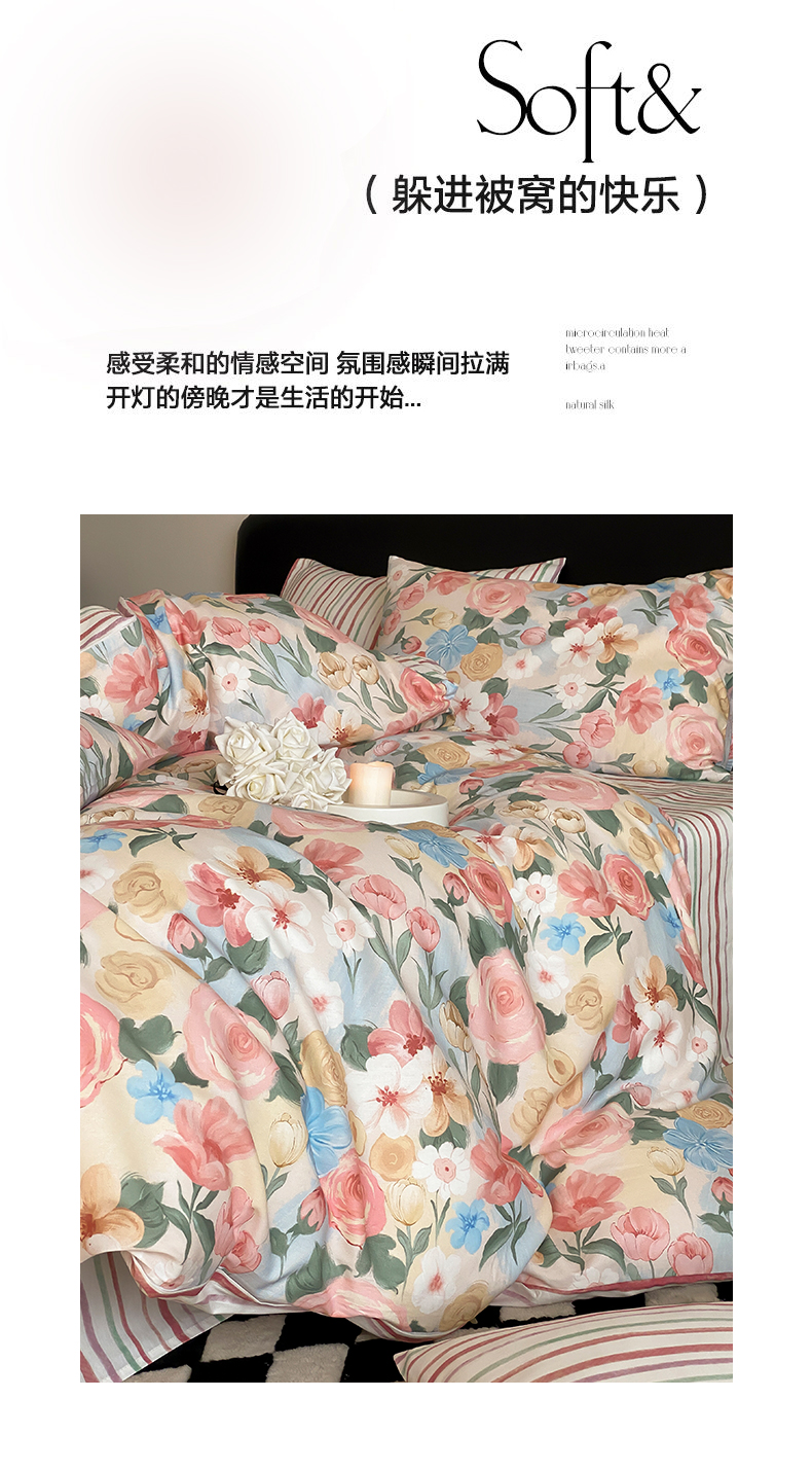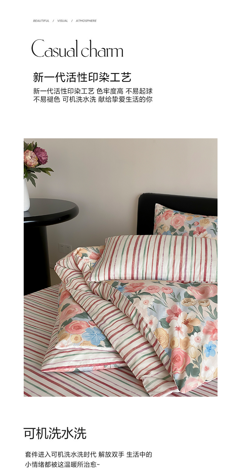 商品名称:帅露 2025开春新品全棉喷气13070小清新印花纯棉全棉四件套 满溪