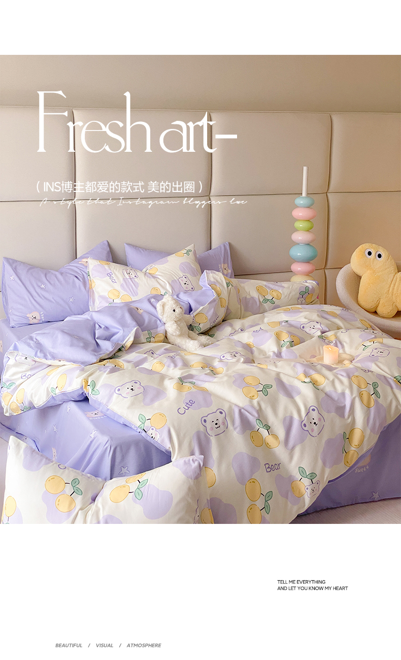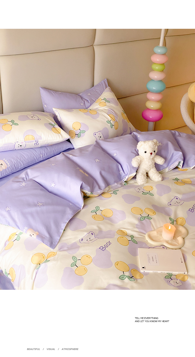 商品名称:帅露 2025开春新品全棉喷气13070小清新印花纯棉全棉四件套 熊噜噜爱果子