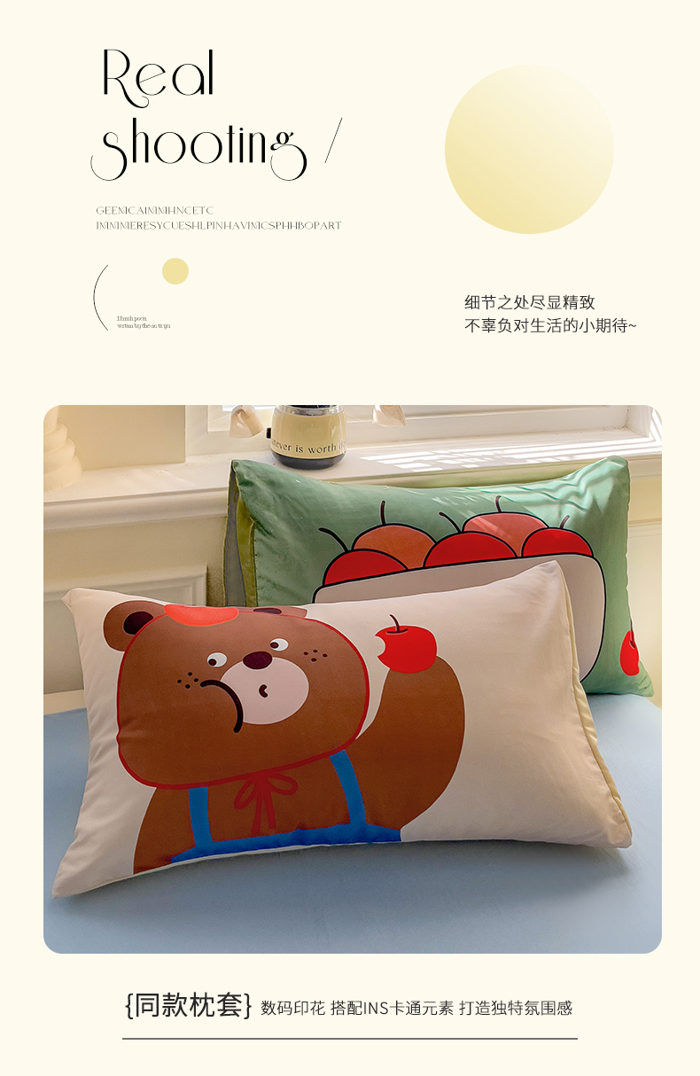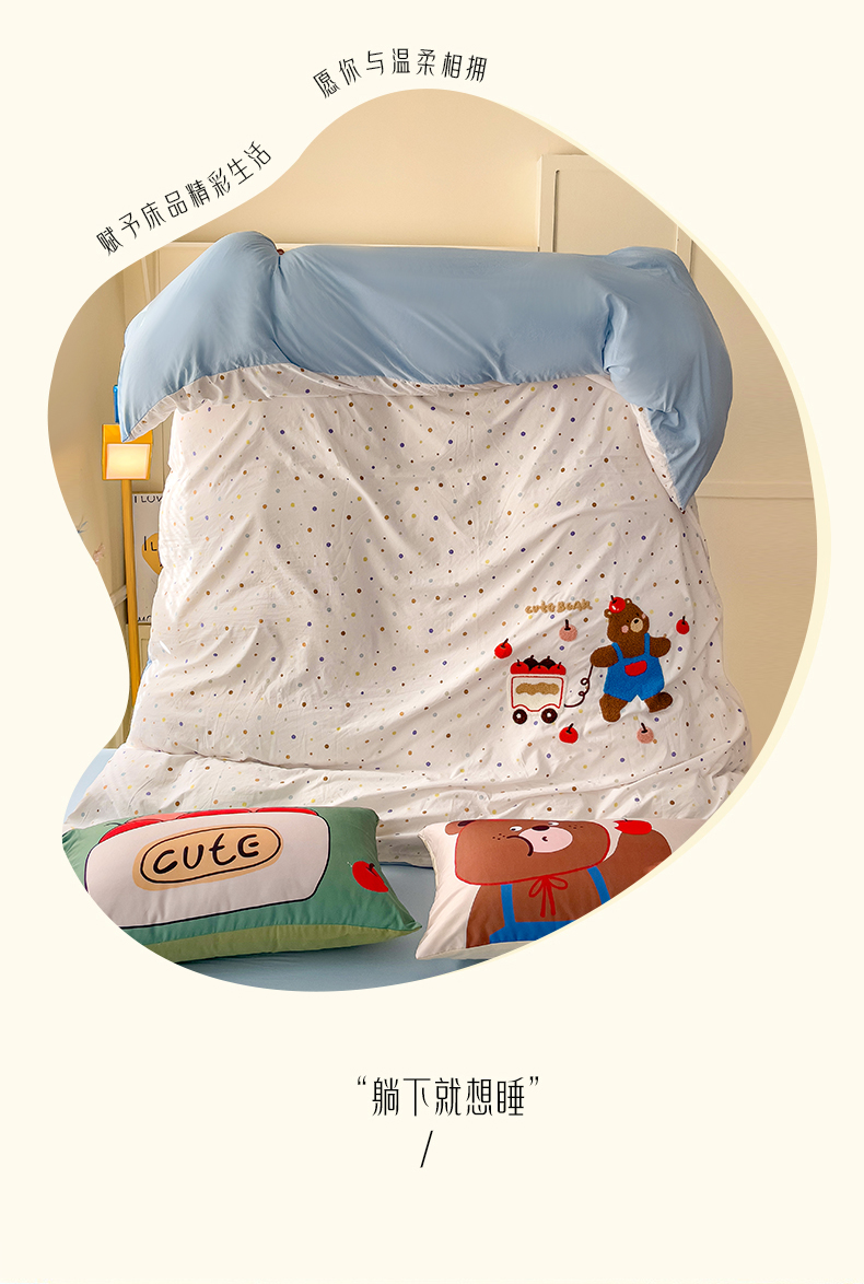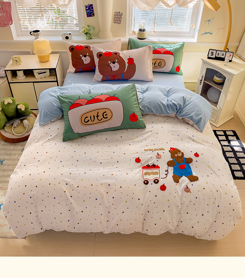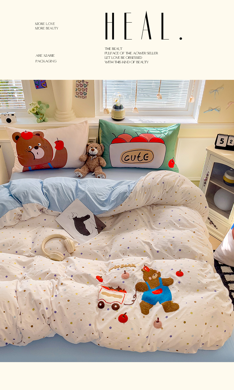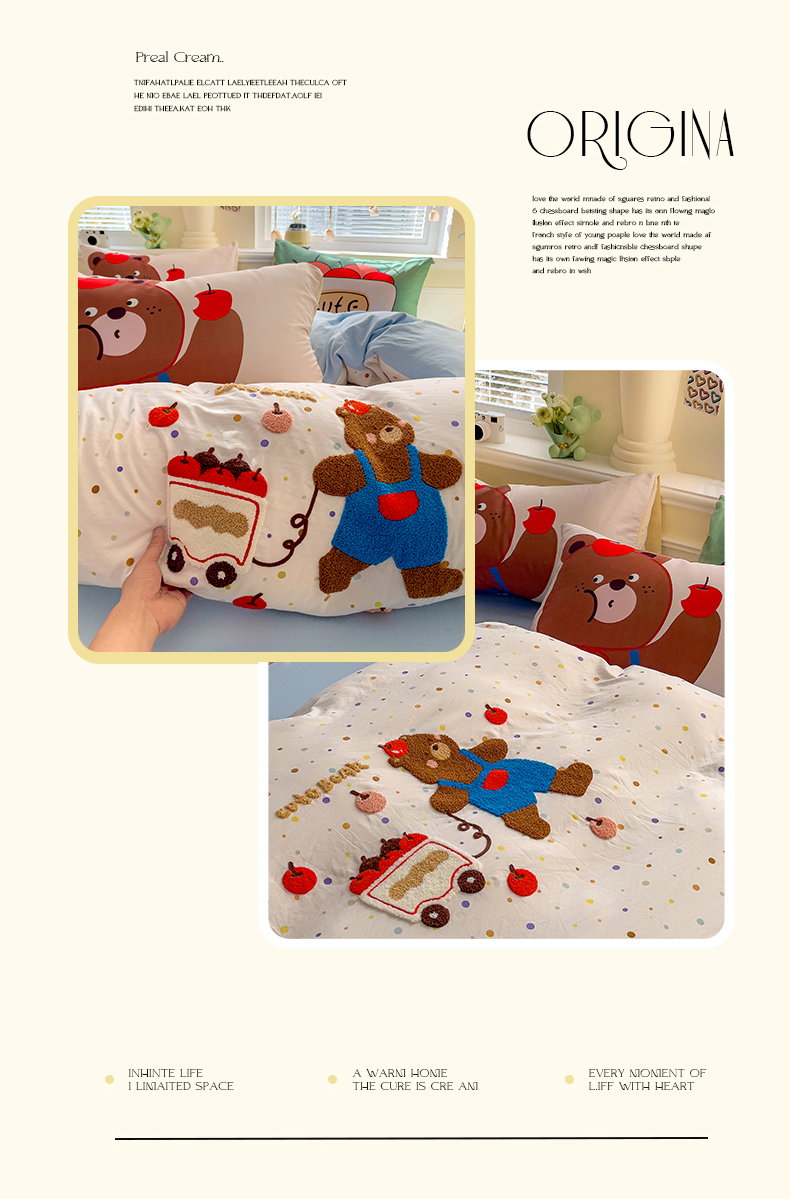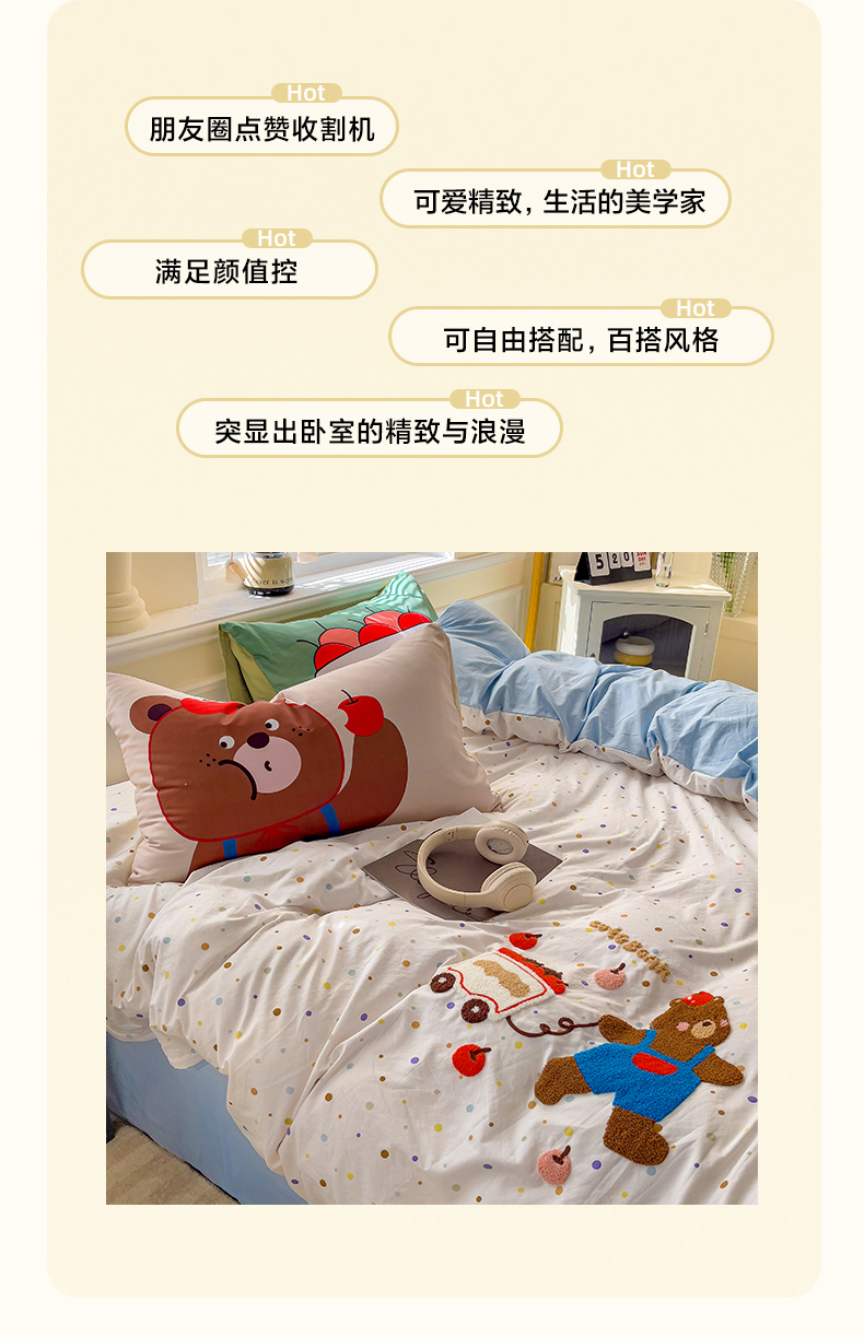 当前位置: 91家纺网 > 商品网购 > 床品套件 > 四件套 > 全棉普通四件套 > 尤米【提供买家秀】2025新款水洗棉大版卡通毛巾绣四件套 苹果熊-波点