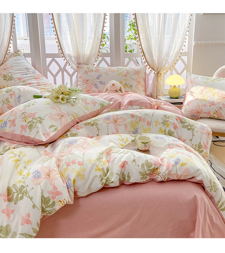 商品名称:帅露家纺 2025开春新品全棉喷气13070小清新印花纯棉全棉四件套 浮春绘