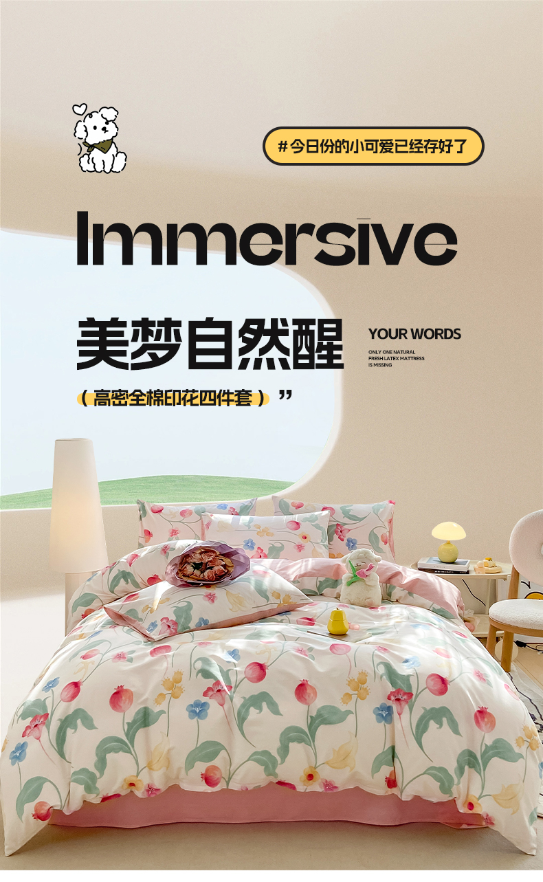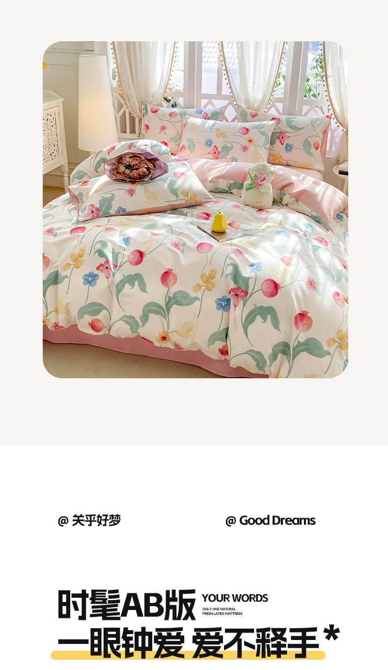 商品名称:帅露家纺 2025开春新品全棉喷气13070小清新印花纯棉全棉四件套 时留