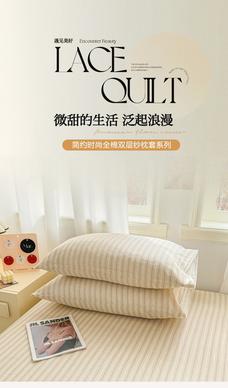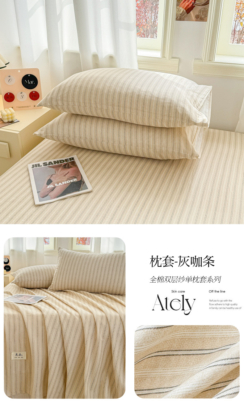 商品名称:眠博士2025新款全棉双层纱单枕套 双层纱枕套-灰咖条