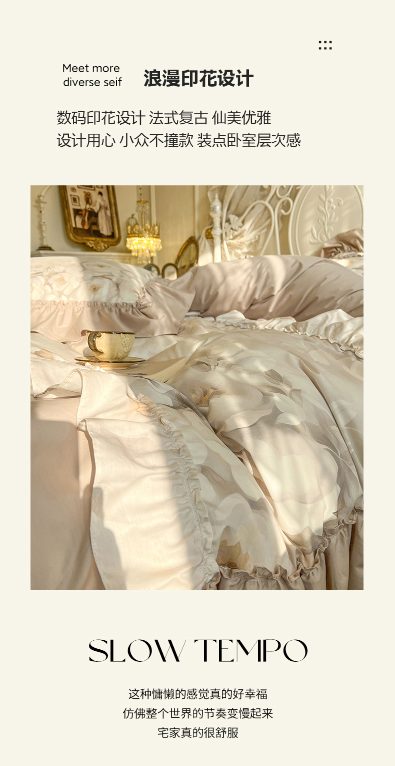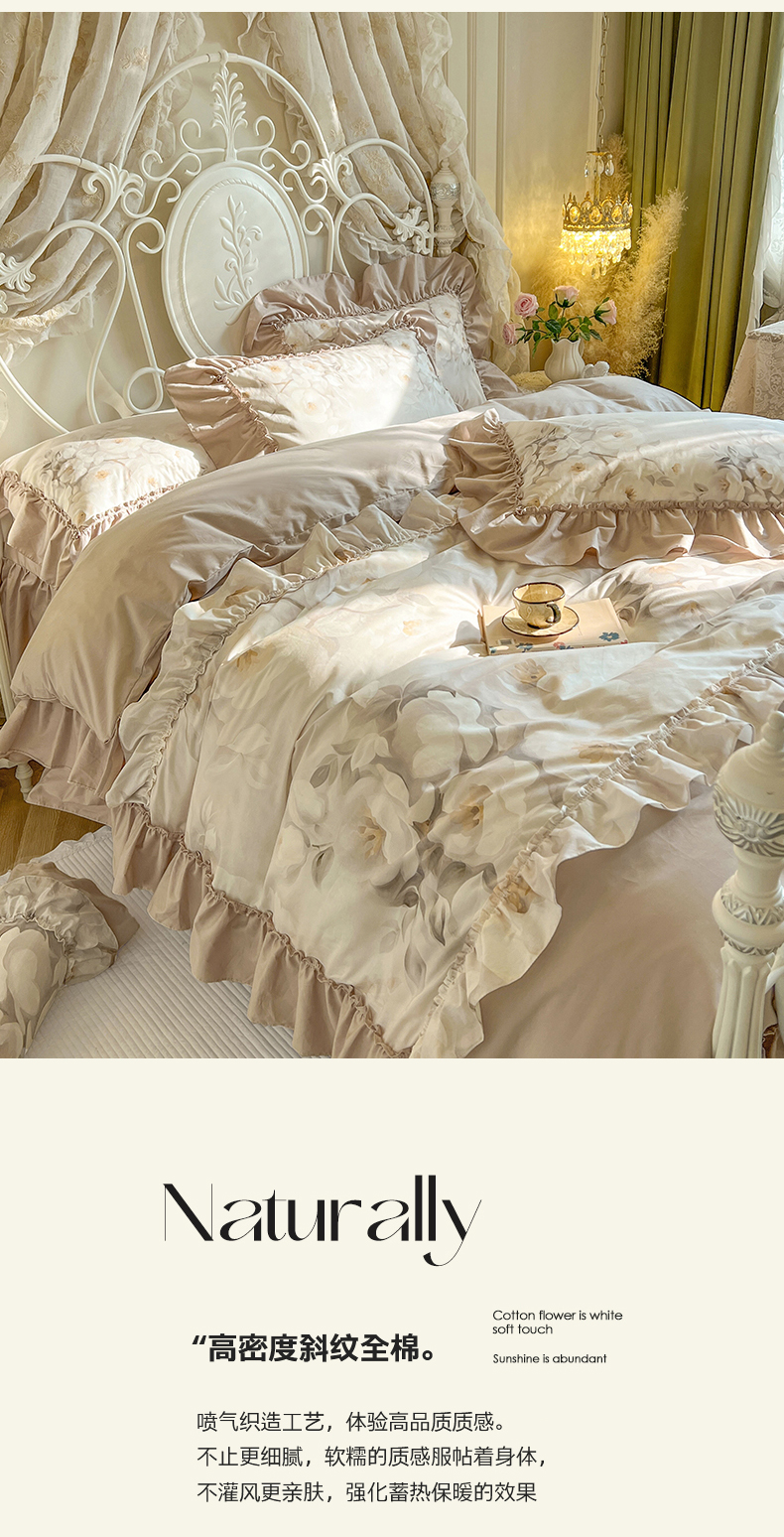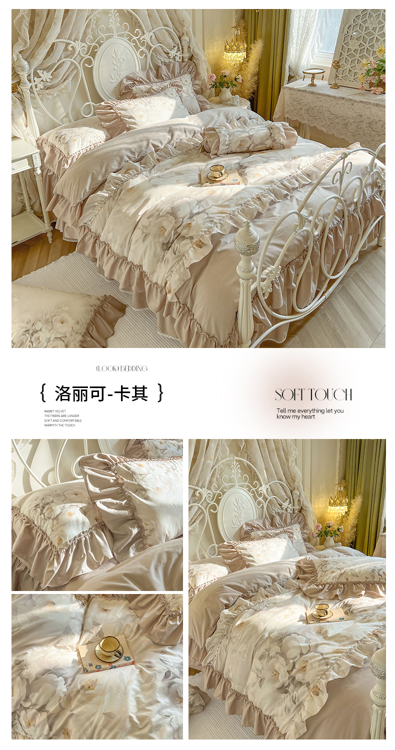 当前位置: 91家纺网 > 商品网购 > 床品套件 > 四件套 > 其它四件套 > 惯盈家纺 2025新款全棉法式四件套洛丽可系列 卡其