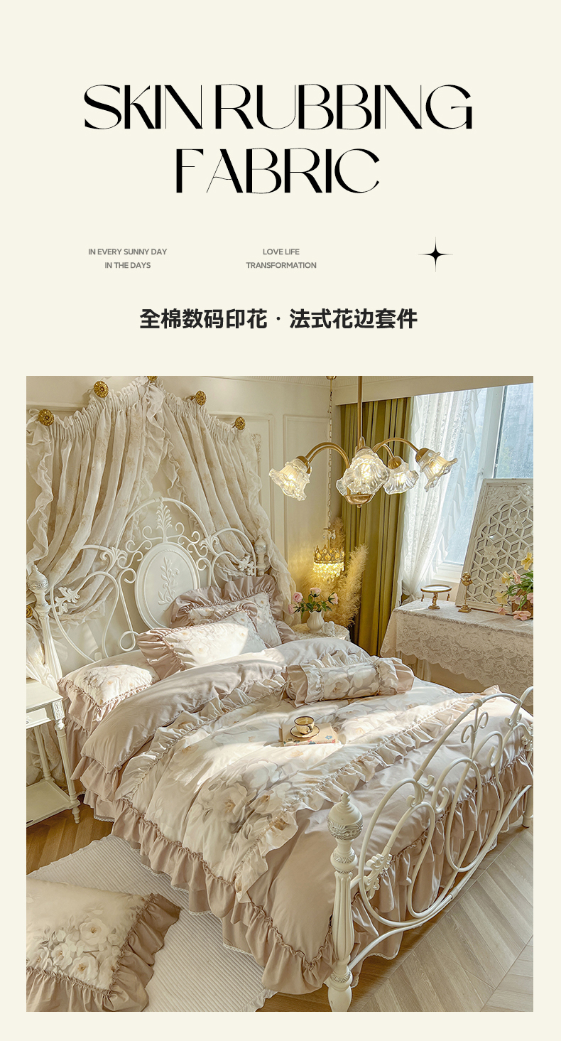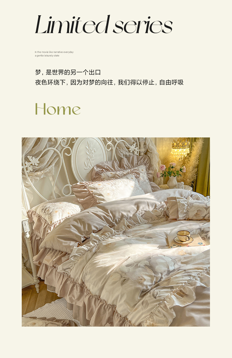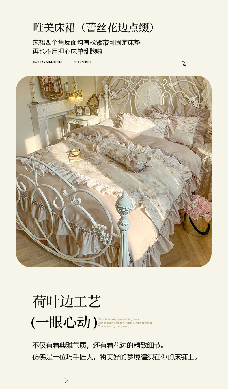 当前位置: 91家纺网 > 商品网购 > 床品套件 > 四件套 > 其它四件套 > 惯盈家纺 2025新款全棉法式四件套洛丽可系列 卡其
