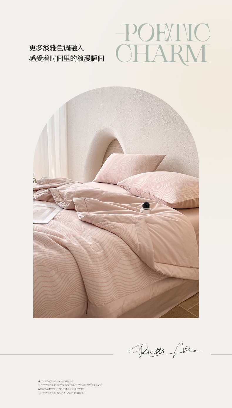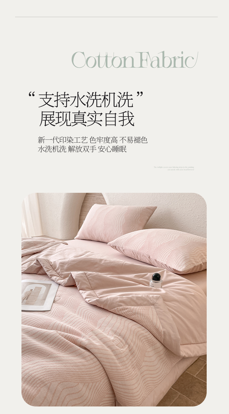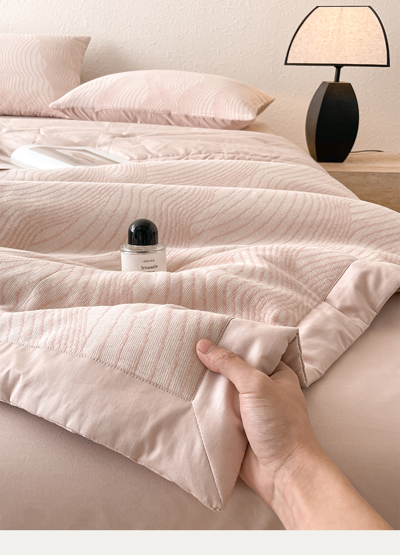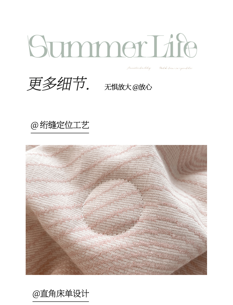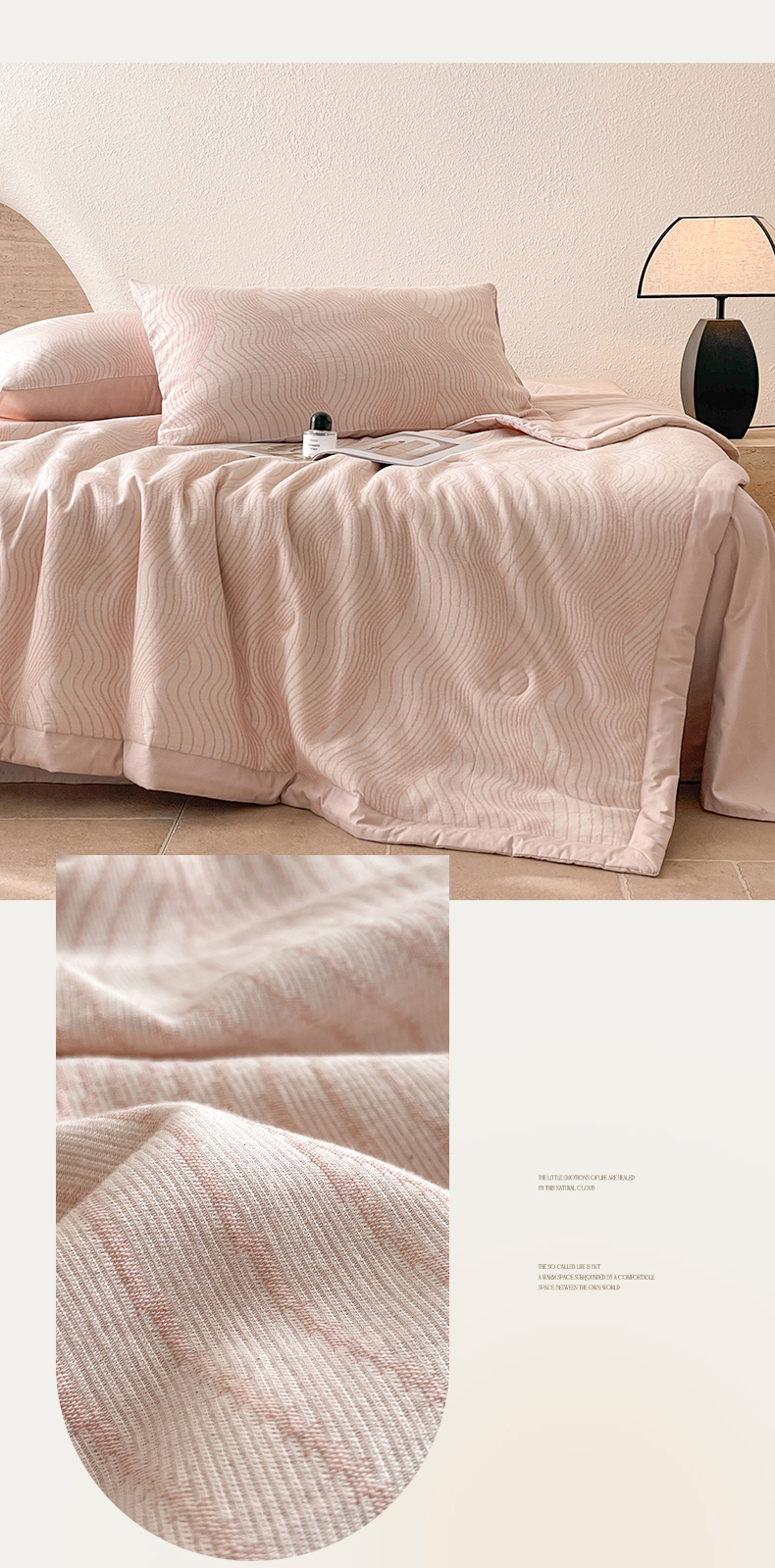 • 91家纺网 家纺一手货源 找家纺 一加一家纺2025新款A类全棉三层纱色织提花大豆夏被四件套 波纹--粉