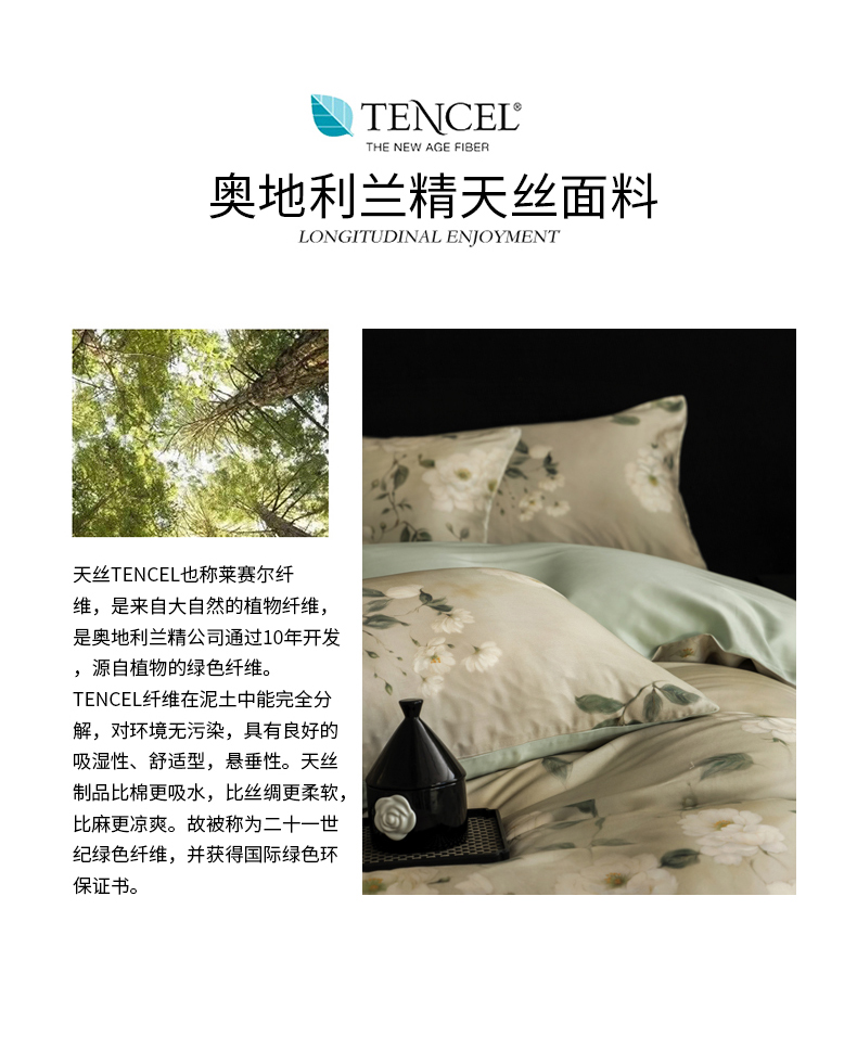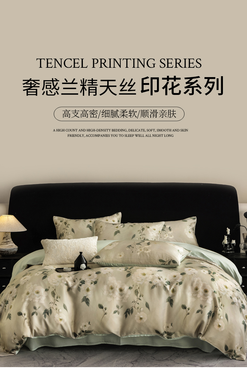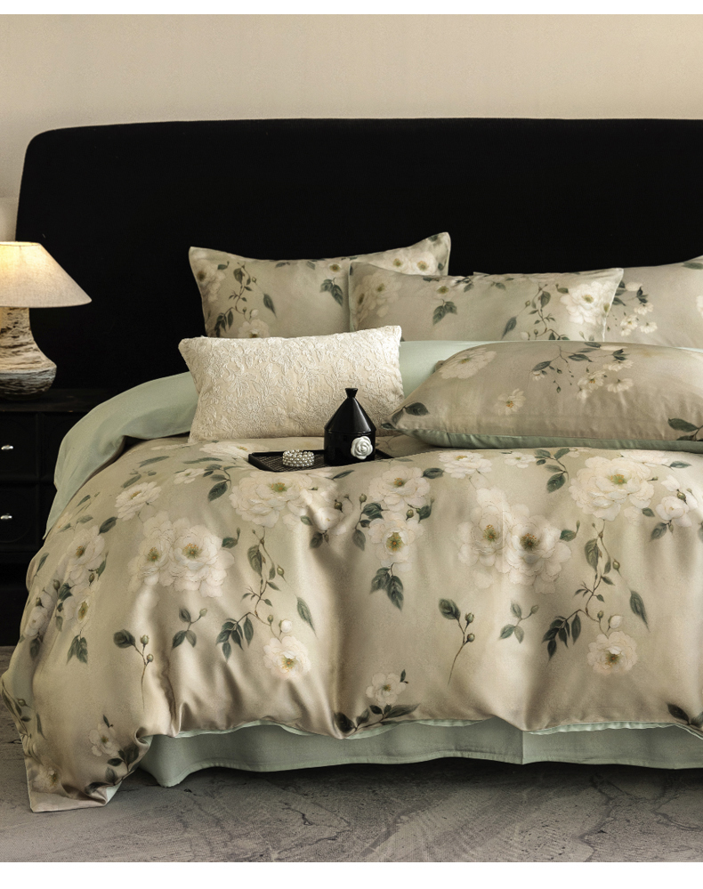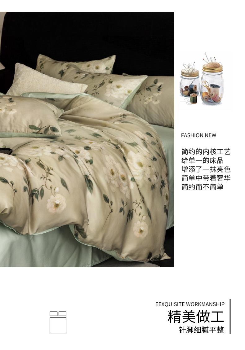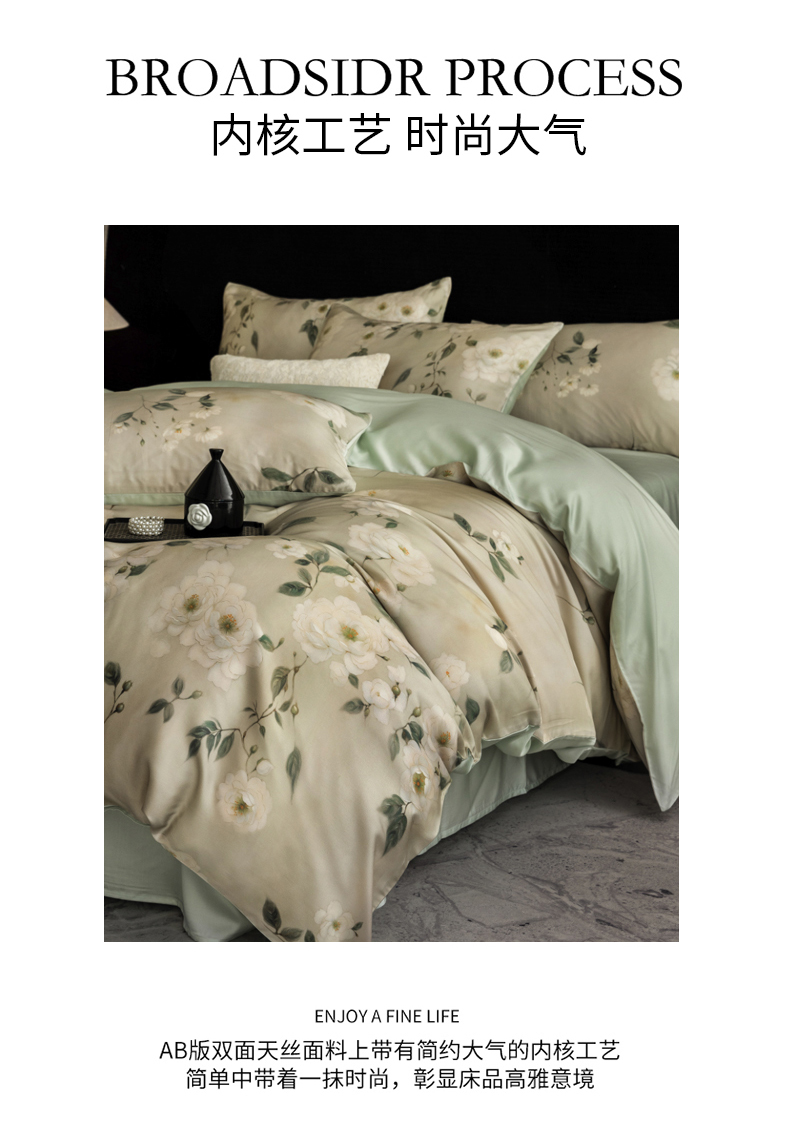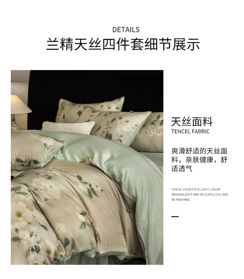 商品名称:立奥被业 2025年新款100%兰精天丝四件套天丝数码印花四件套 木兰花-绿