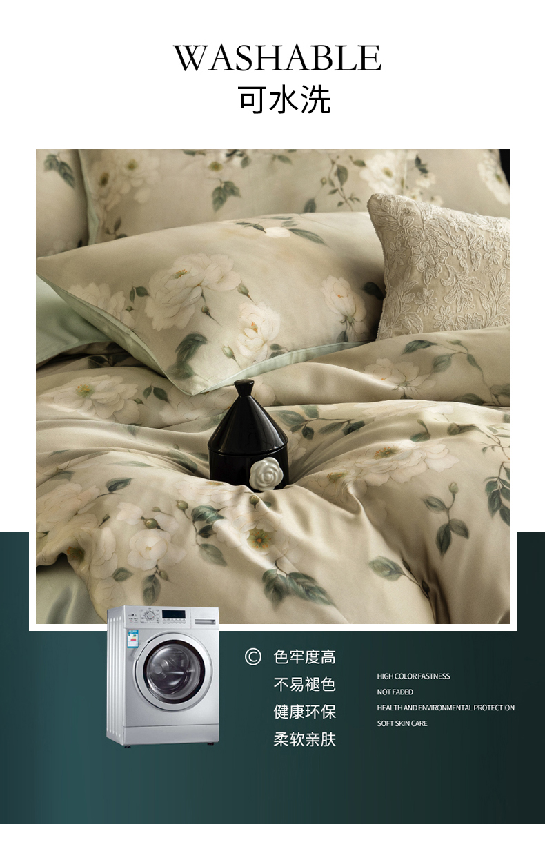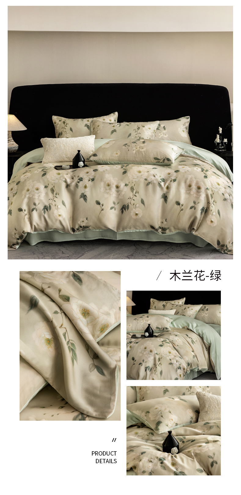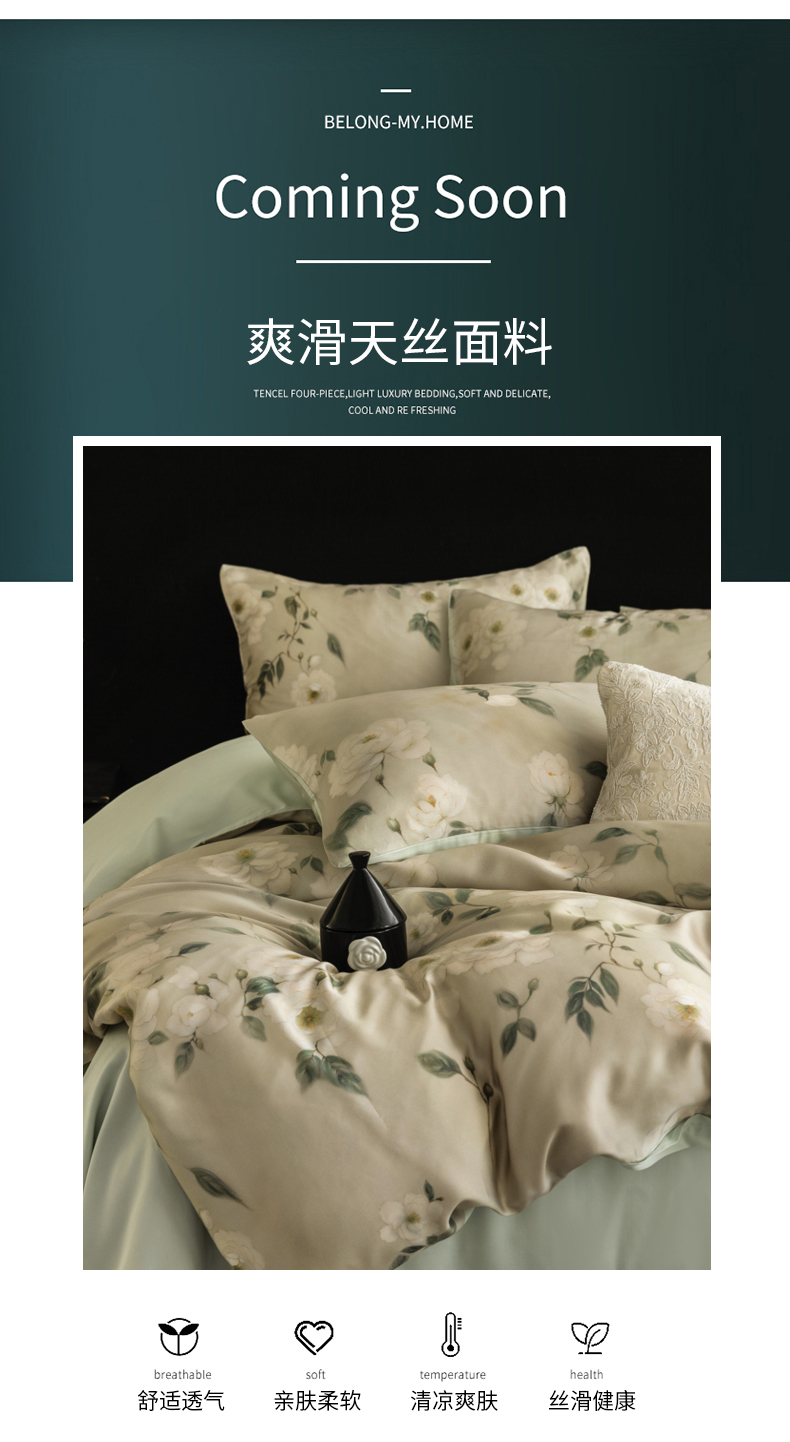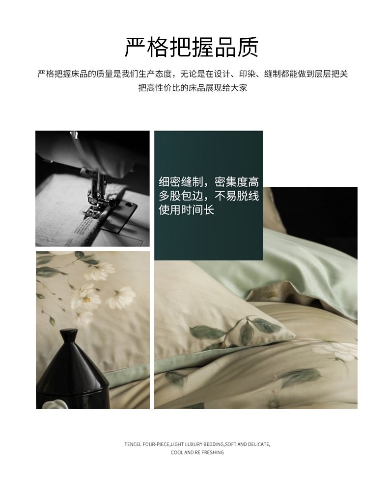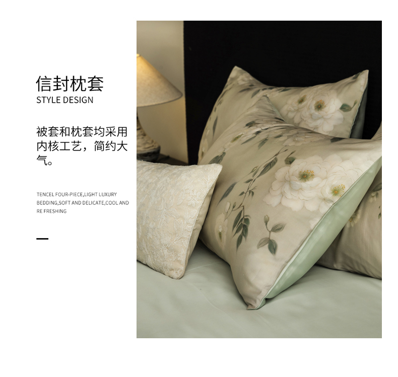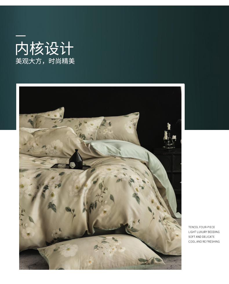 商品名称:立奥被业 2025年新款100%兰精天丝四件套天丝数码印花四件套 木兰花-绿