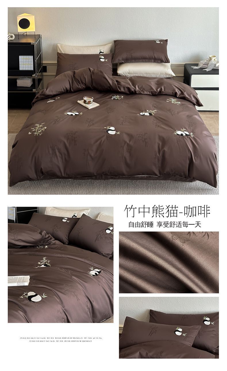 商品名称:佰亿莱 2025新款100s长绒棉四件套 竹中熊猫-咖啡