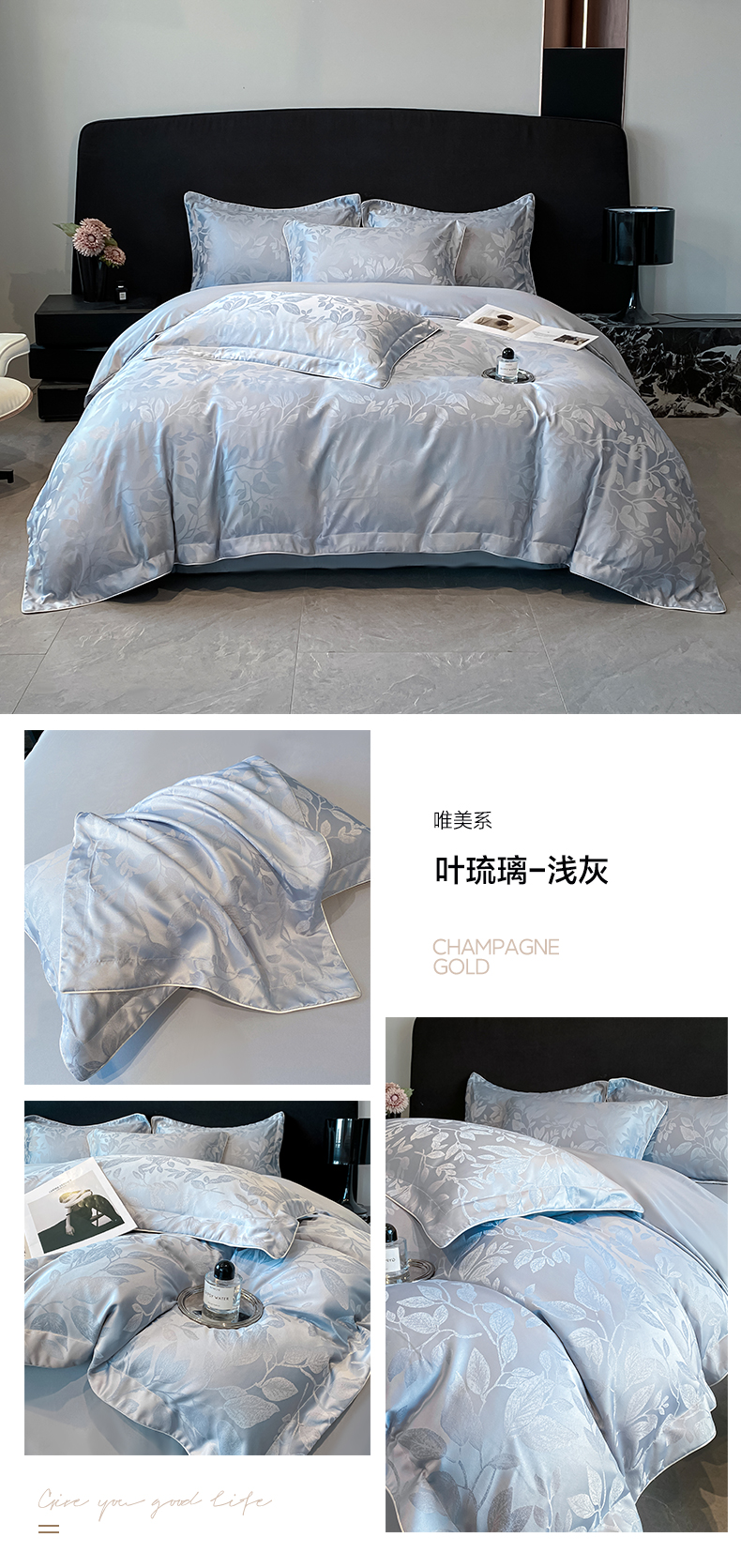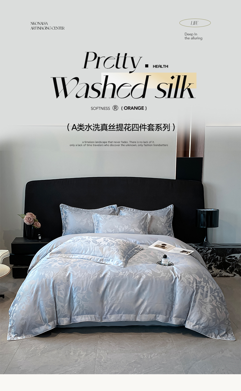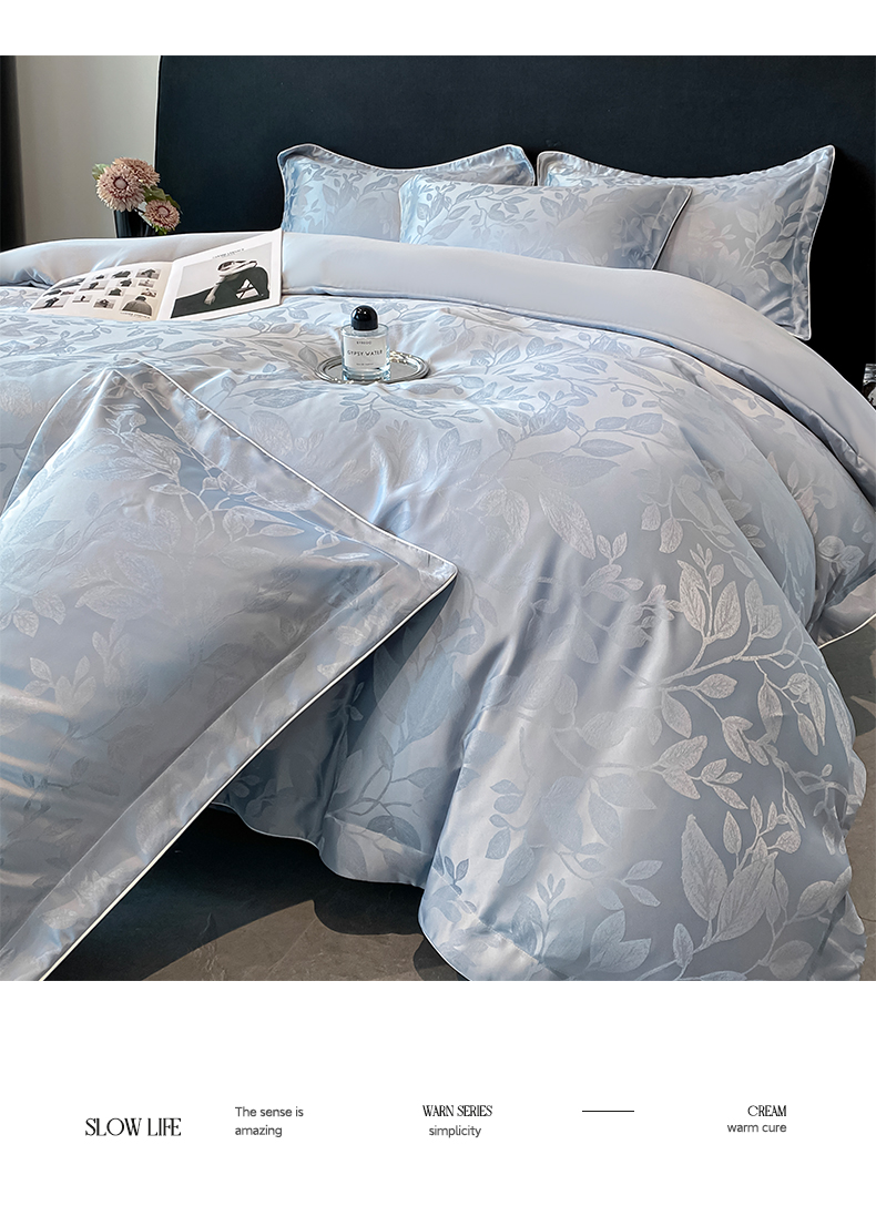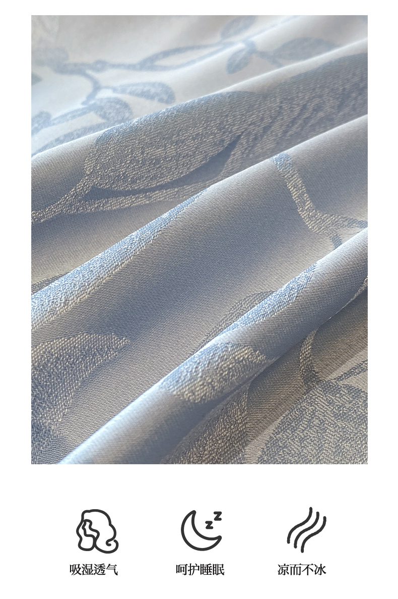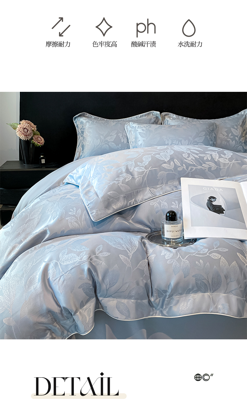 商品名称:米彩家纺 2025新款A类水洗真丝天丝提花四件套 叶琉璃浅灰