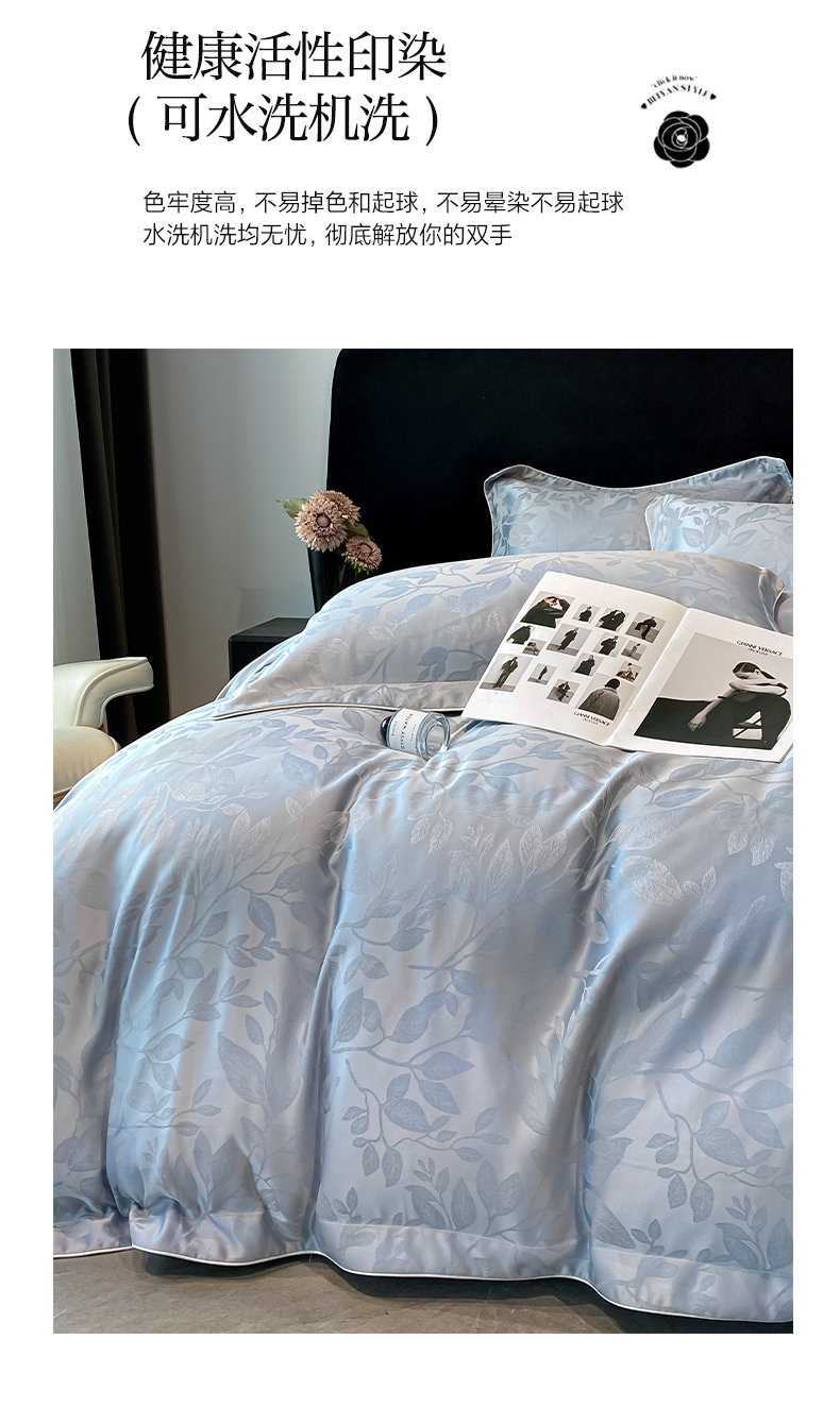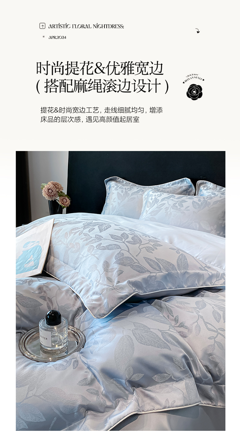 米彩家纺 2025新款A类水洗真丝天丝提花四件套 叶琉璃浅灰