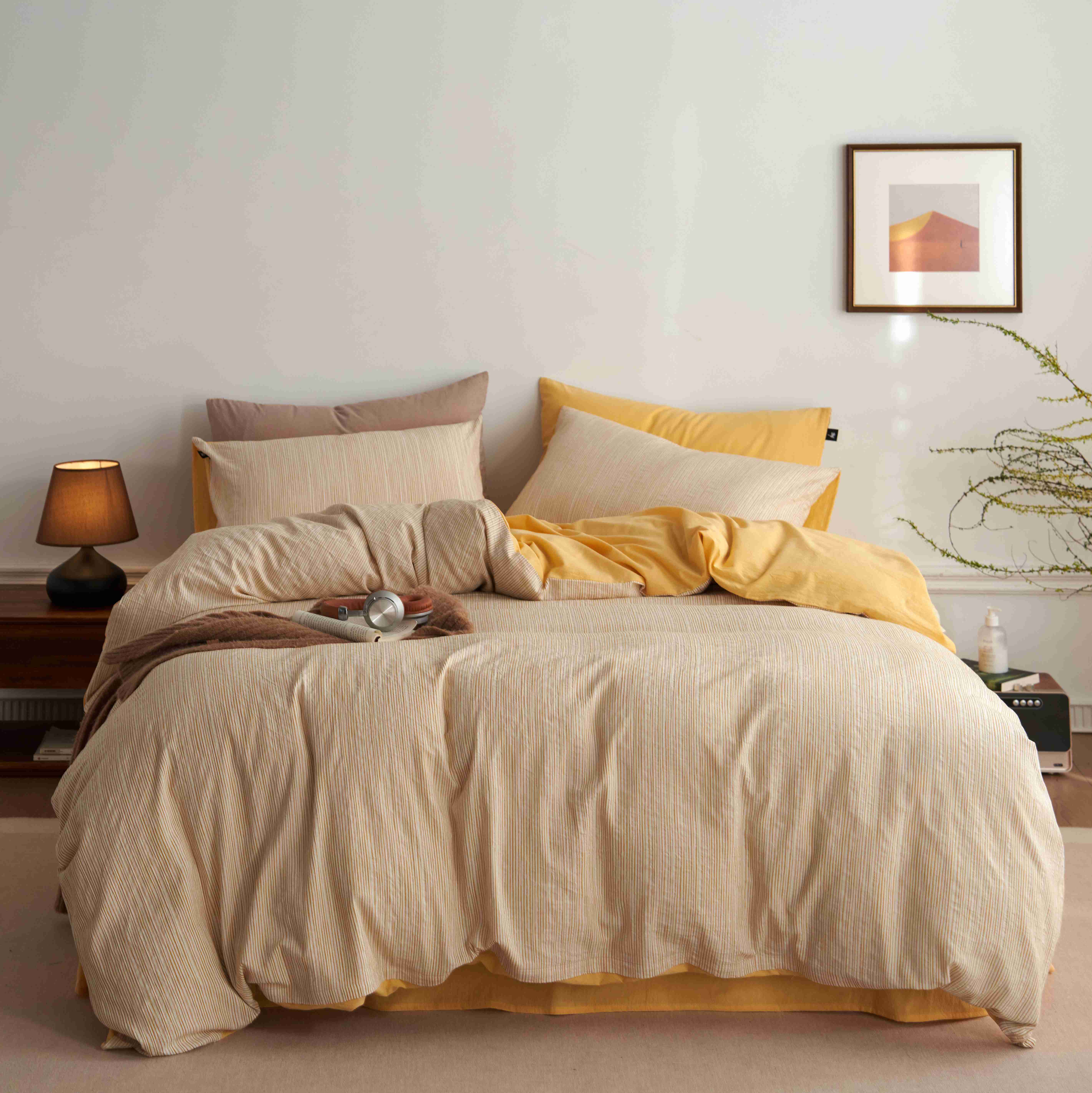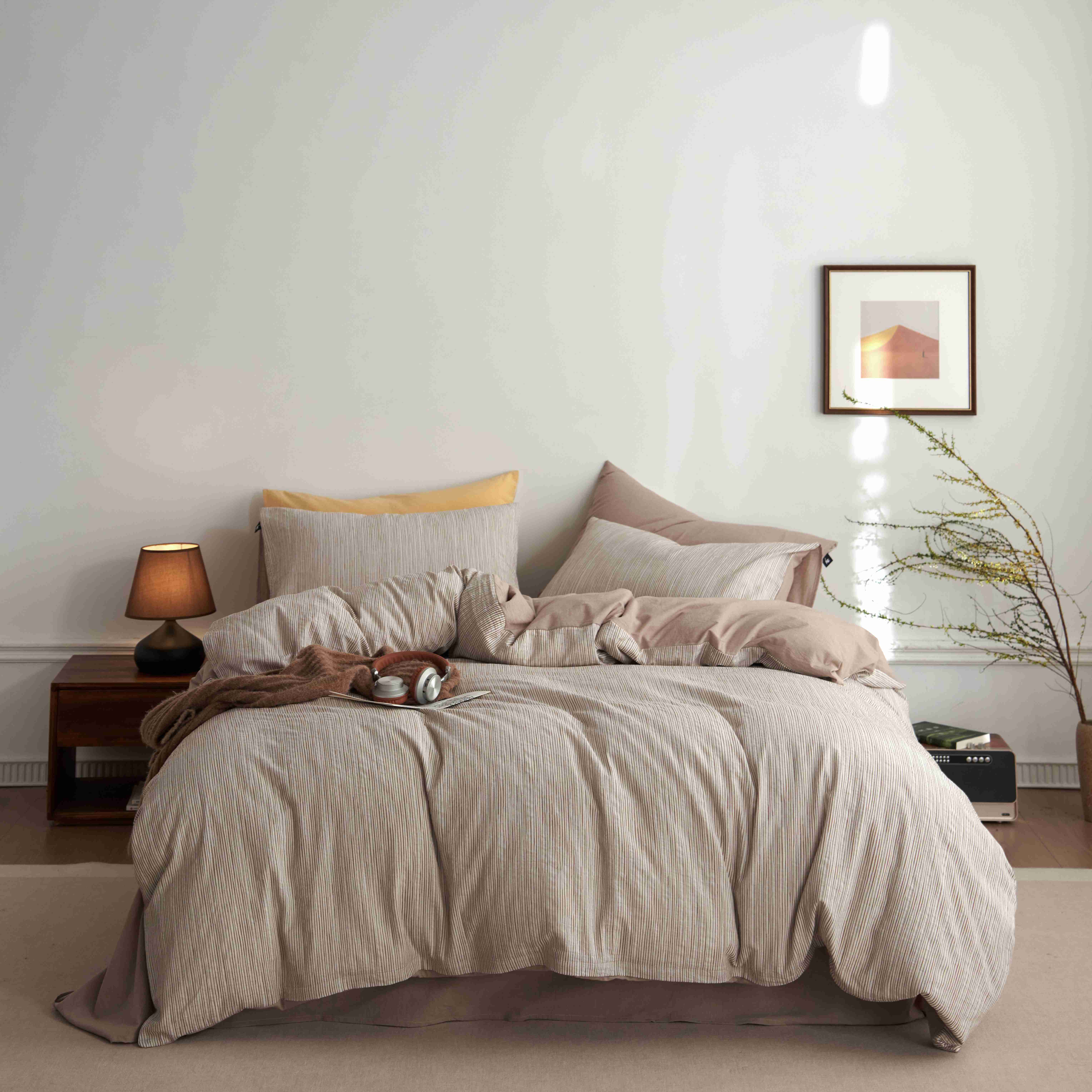 (总)安莱生活 2025春夏新款空气层色织提花四件套南阳假日系列,南阳假日-灰咖,南阳假日-卡其,南阳假日-银灰