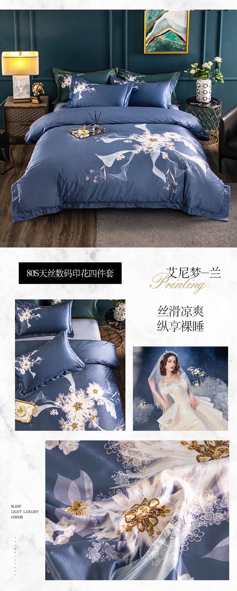 梵克保罗 2025春夏新款天丝数码大版印花四件套 奥洛琳-金