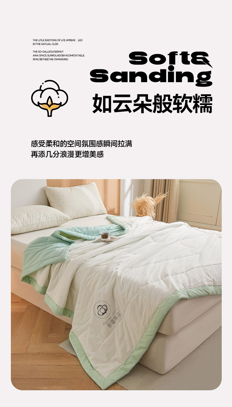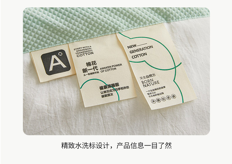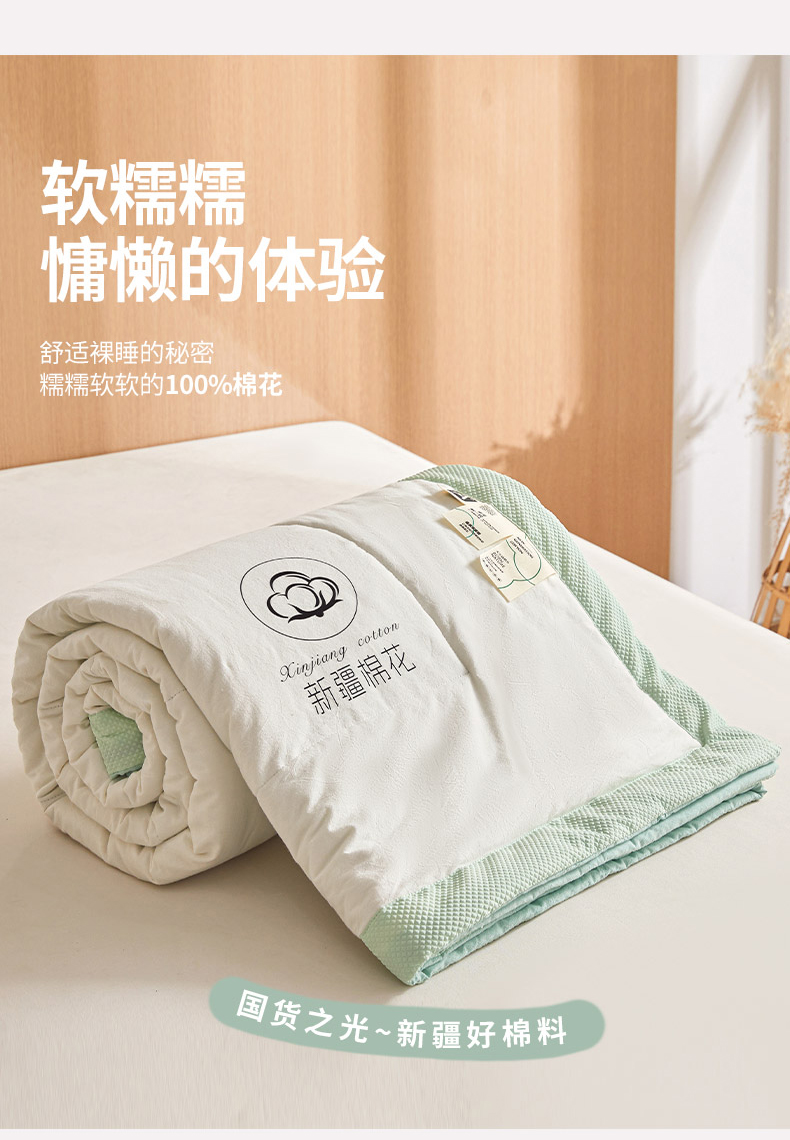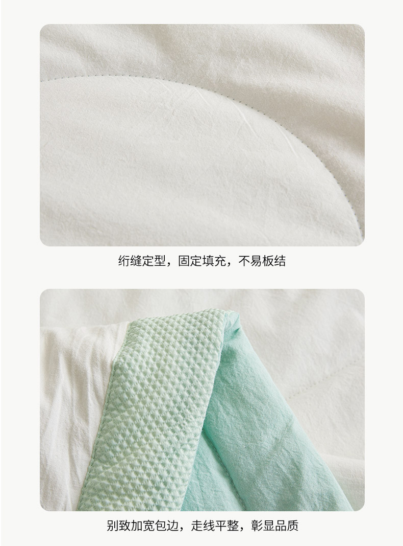 商品名称:熙宴家纺 2025新款水洗棉100%新疆棉花夏被-棉白 棉白+绿