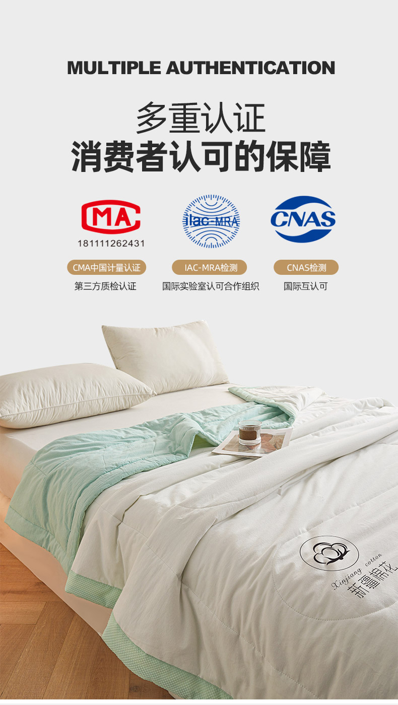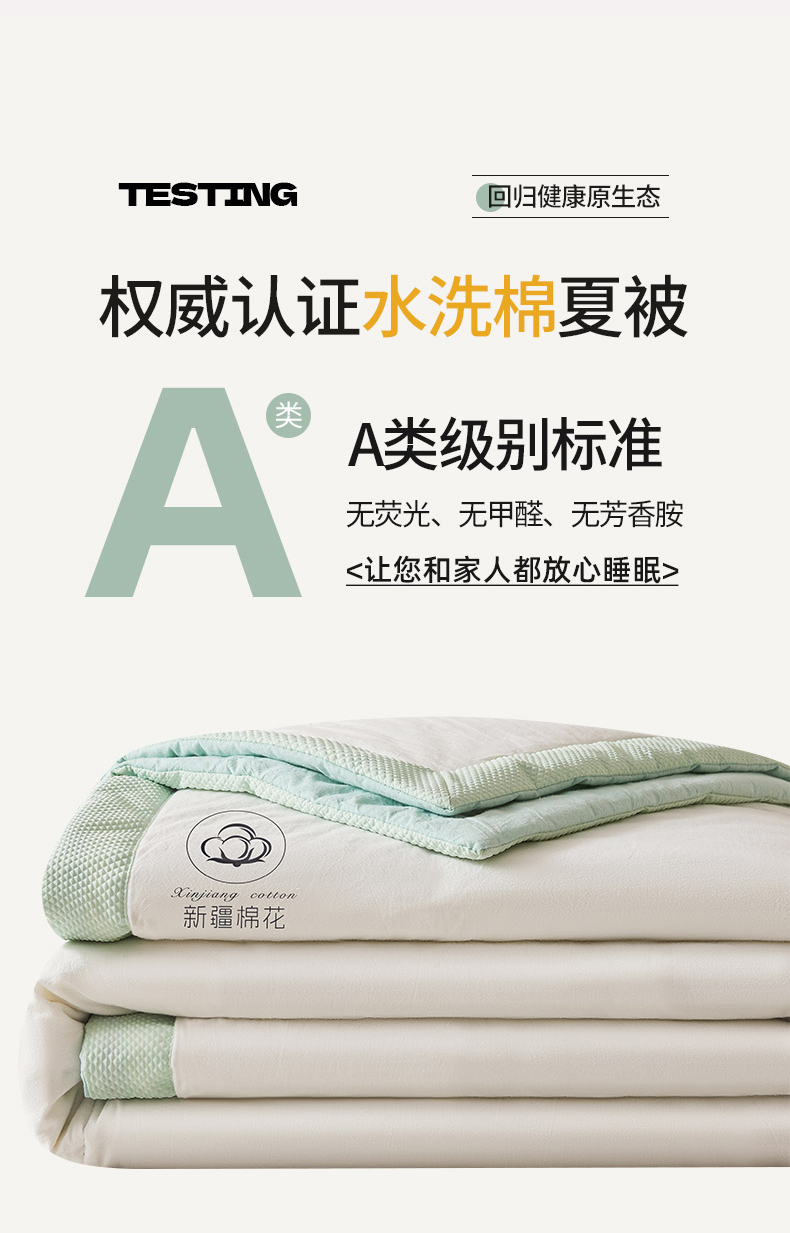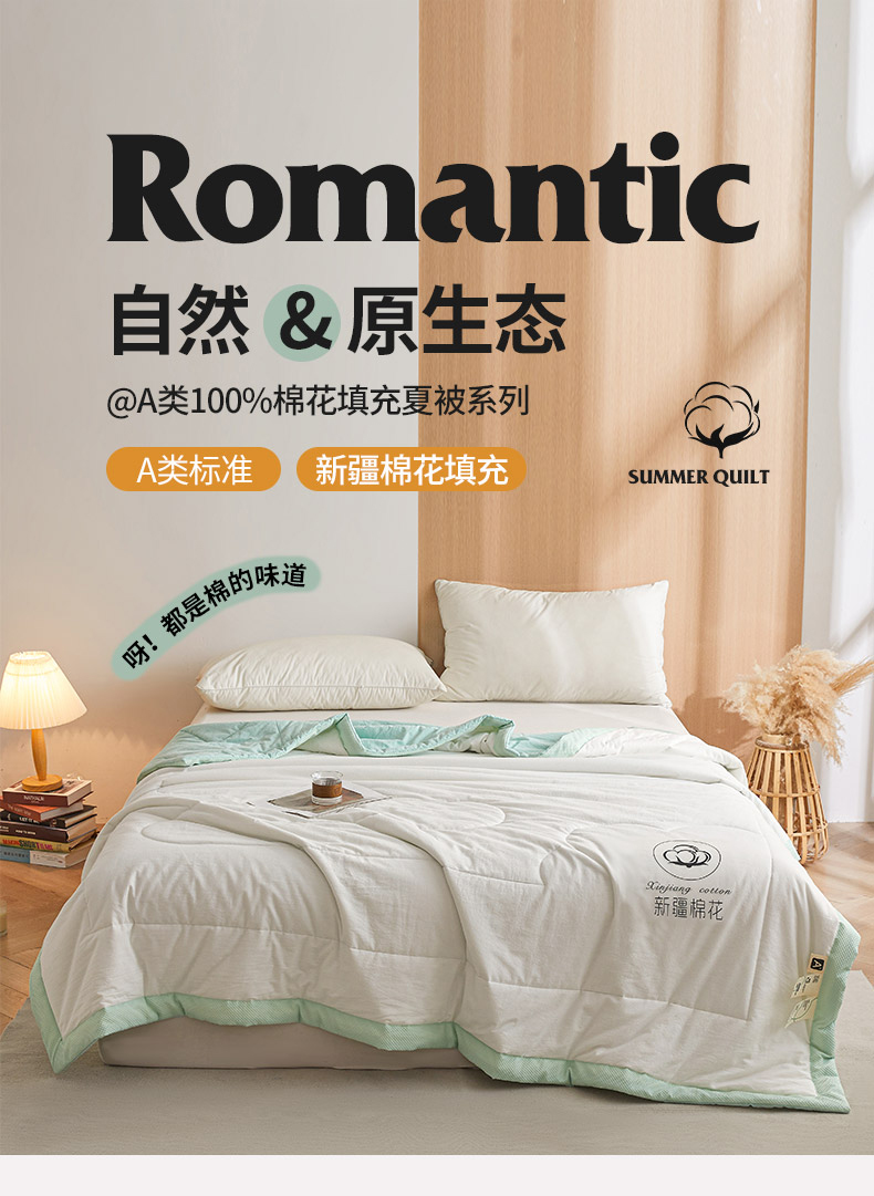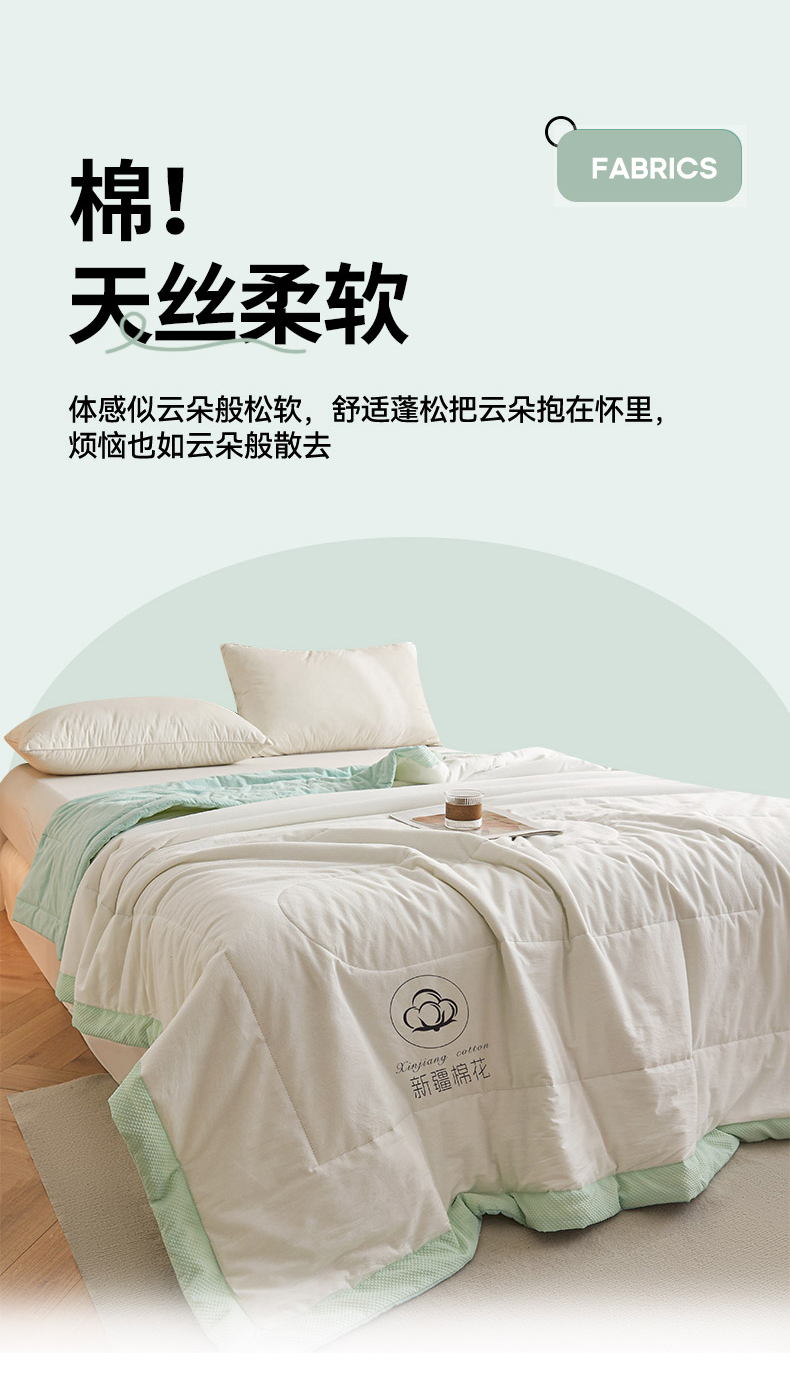 商品名称:熙宴家纺 2025新款水洗棉100%新疆棉花夏被-棉白 棉白+绿