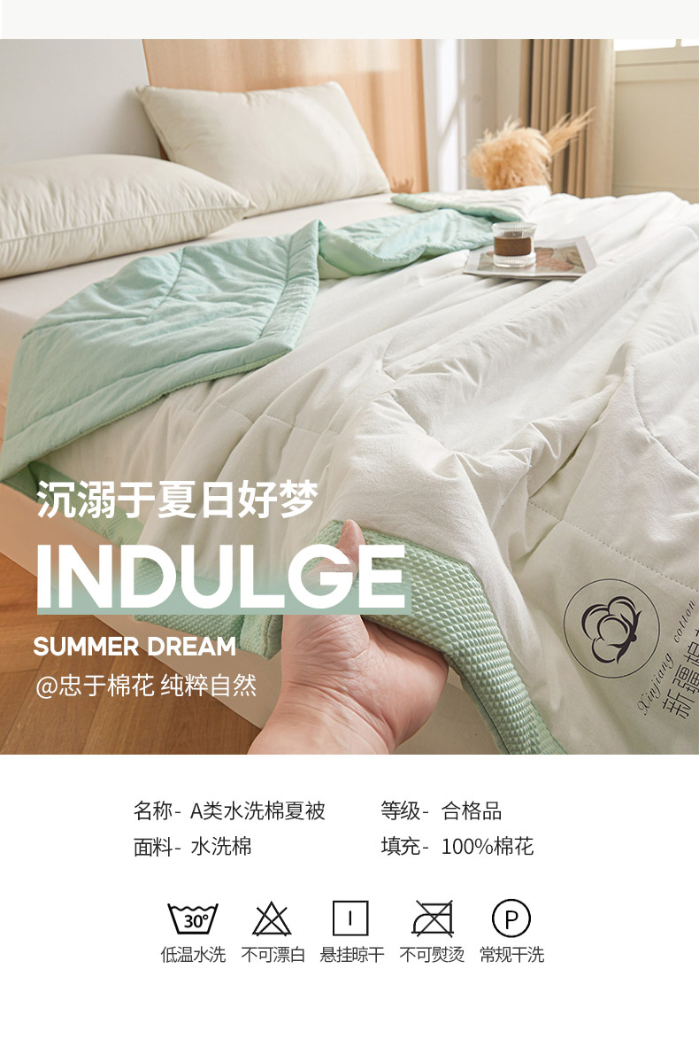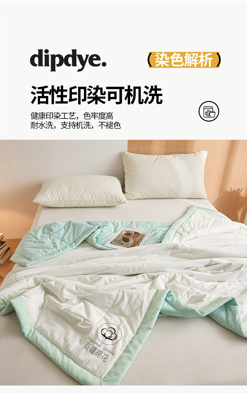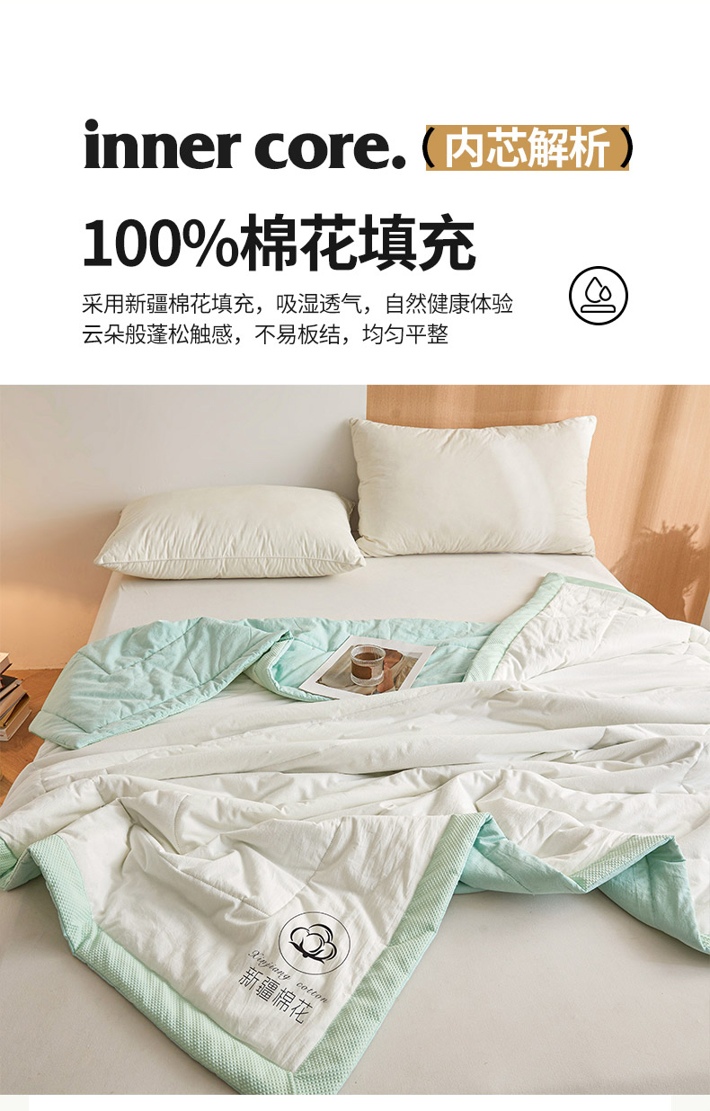 熙宴家纺 2025新款水洗棉100%新疆棉花夏被-棉白 棉白+绿