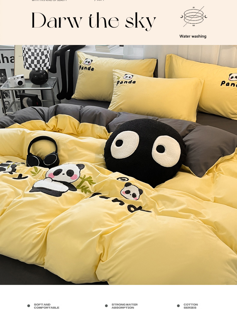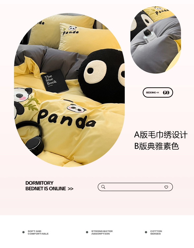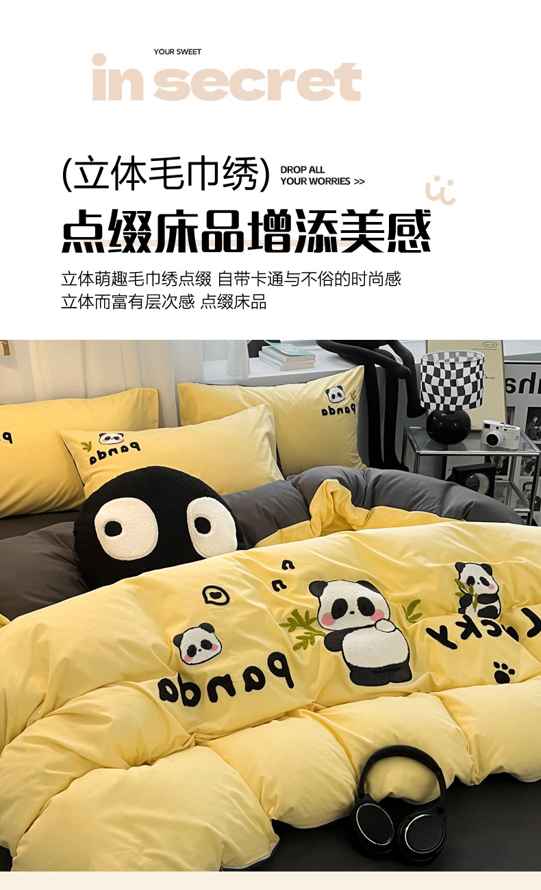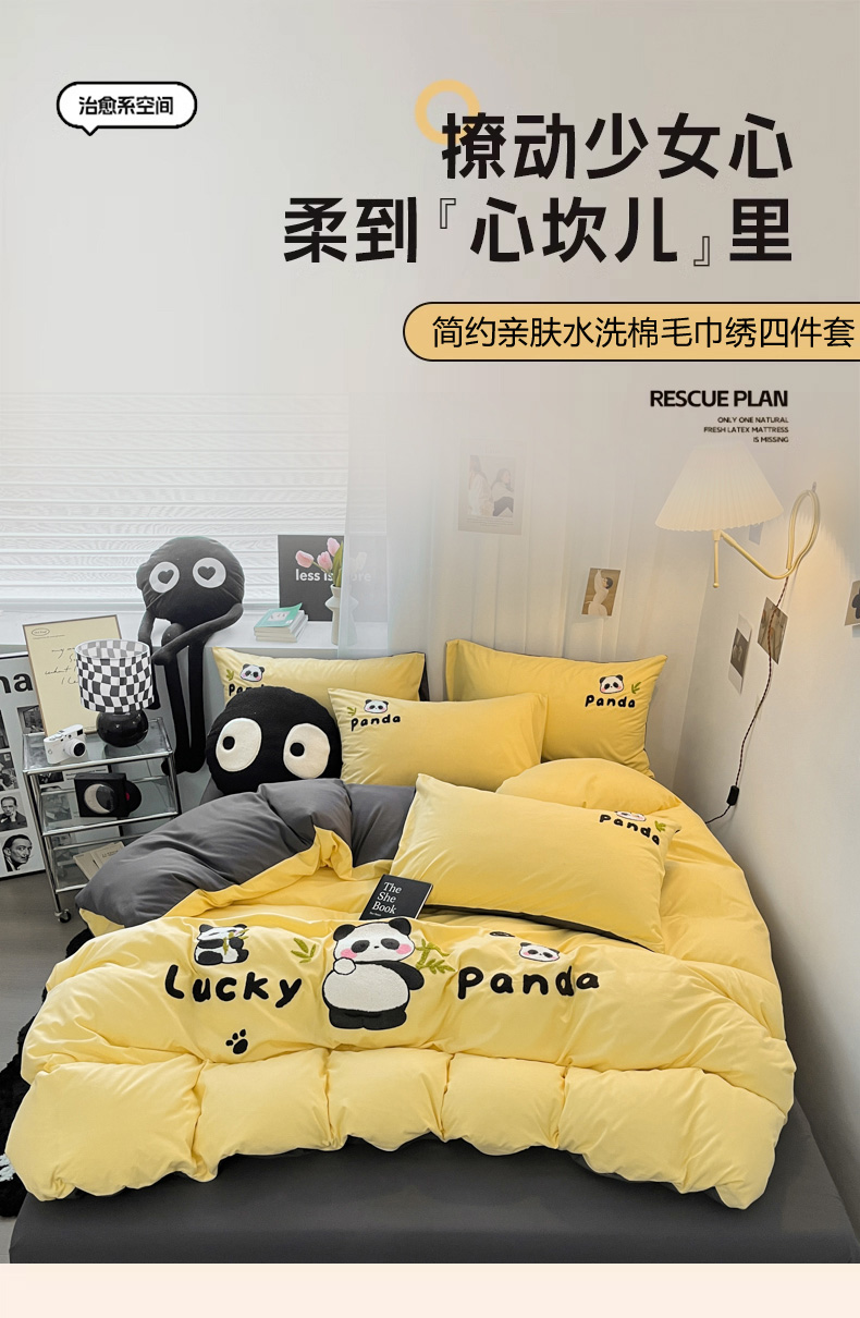 当前位置: 91家纺网 > 商品网购 > 床品套件 > 四件套 > 水洗棉四件套 > 沐慕 2025新款简约亲肤毛巾绣四件套 幸运熊猫-黄色