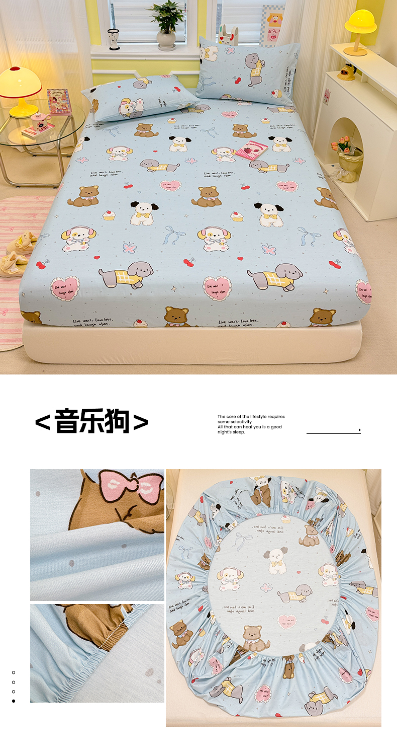 • 91家纺网 家纺一手货源 找家纺 吉象家纺 2025新款高支密全棉印花单品系列-单床笠 假日小狗