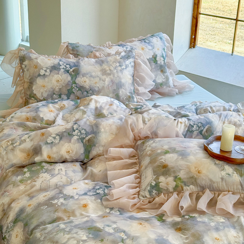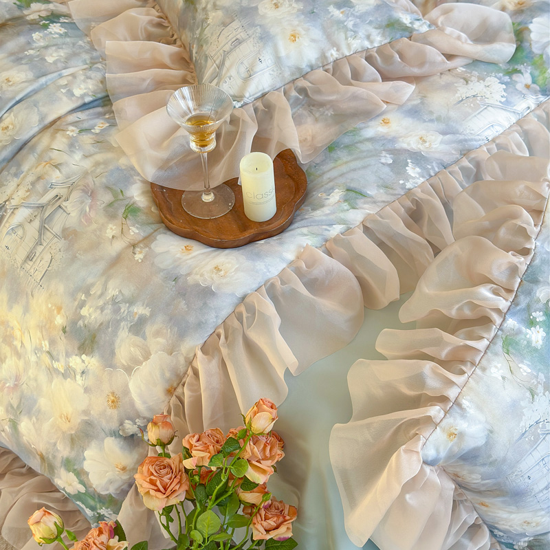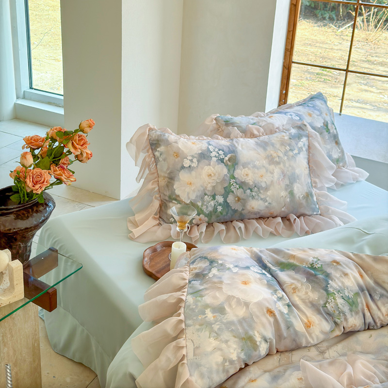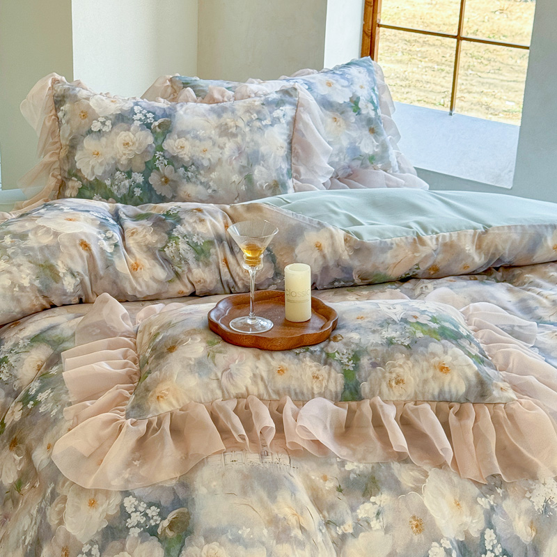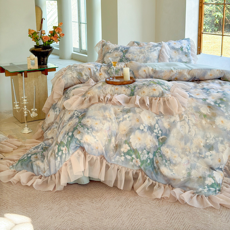(总)一比一 2026新款云感皱皱双层纱四件套-全棉花边款【控价99元销售】,半夏绿,百福蓝,薄荷微凉,春风里,春晓,豆蔻,蝴蝶梦,可颂,兰黛,山野栀子,素颜,太妃糖,心动,遇见,芝士奶酪,紫爱心,紫苏,花园兔,蜡笔画,小黑兔,白茶-绿,初恋,莱茵河畔,桃花诺