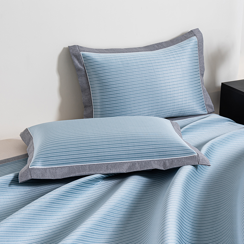 商品名称:小牛席业 2025新款经典条纹凉感冰丝枕套(宽包边+嵌条工艺)凉枕套夏天枕套冰丝枕套竹枕套藤枕套冰藤枕套 经典条纹凉感冰丝枕套+-粉色
