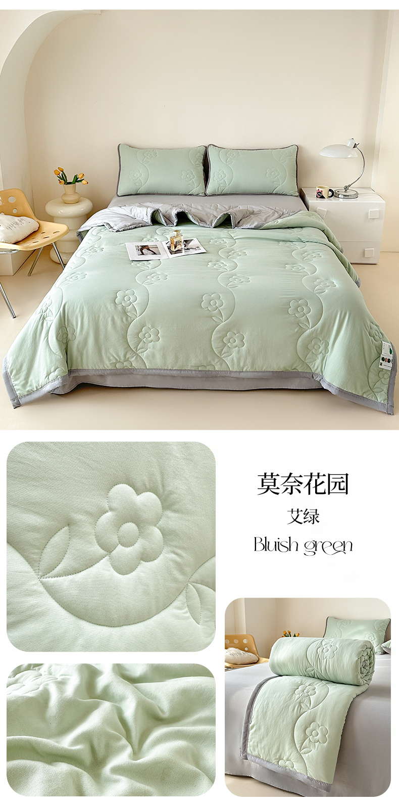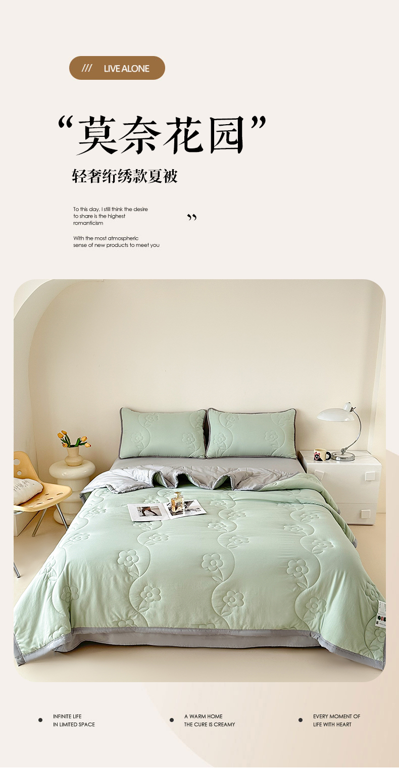 芙绣家纺 2025新款针织棉绗缝夏被-莫奈花园 莫奈花园-艾绿