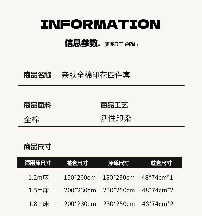 1.8m床单款四件套(含吊牌) | ¥135.00 |