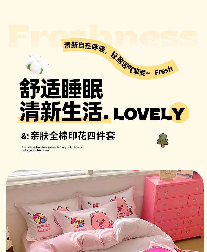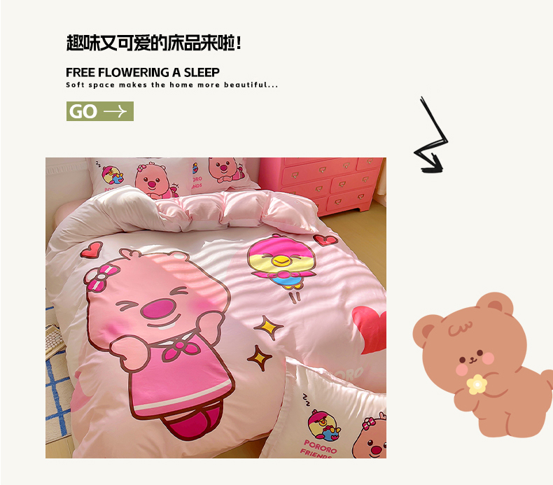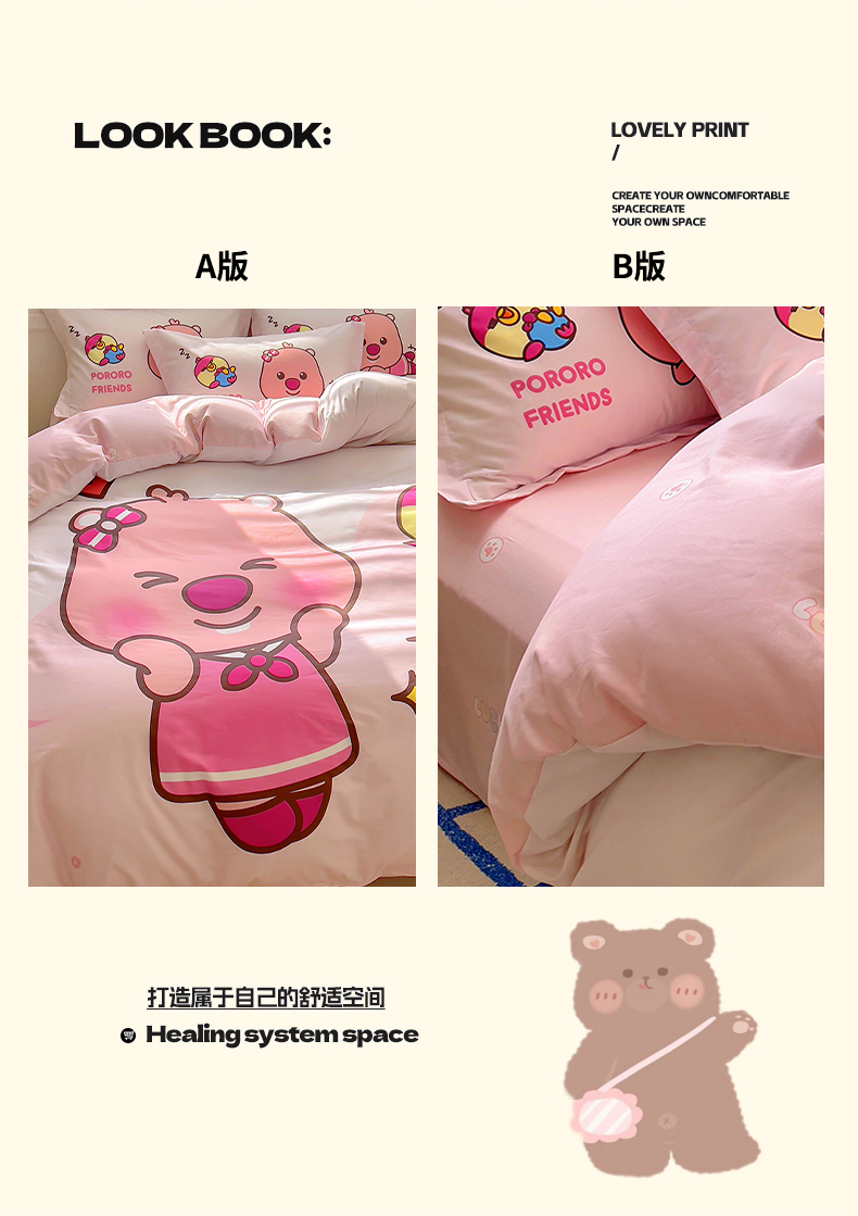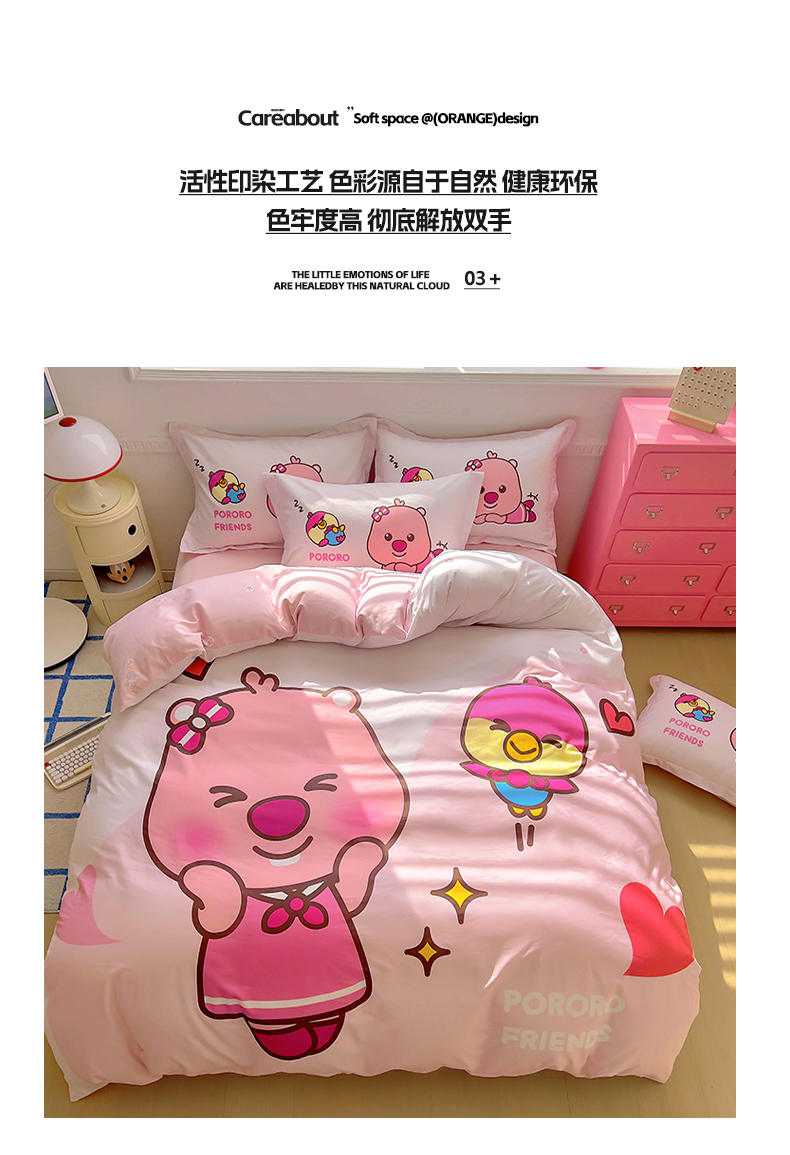 当前位置: 91家纺网 > 商品网购 > 床品套件 > 四件套 > 全棉普通四件套 > 浩诚 2025新款啵乐乐正版授权全棉纯棉四件套 甜心朋友