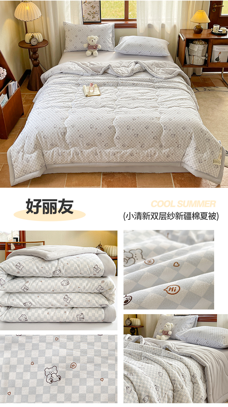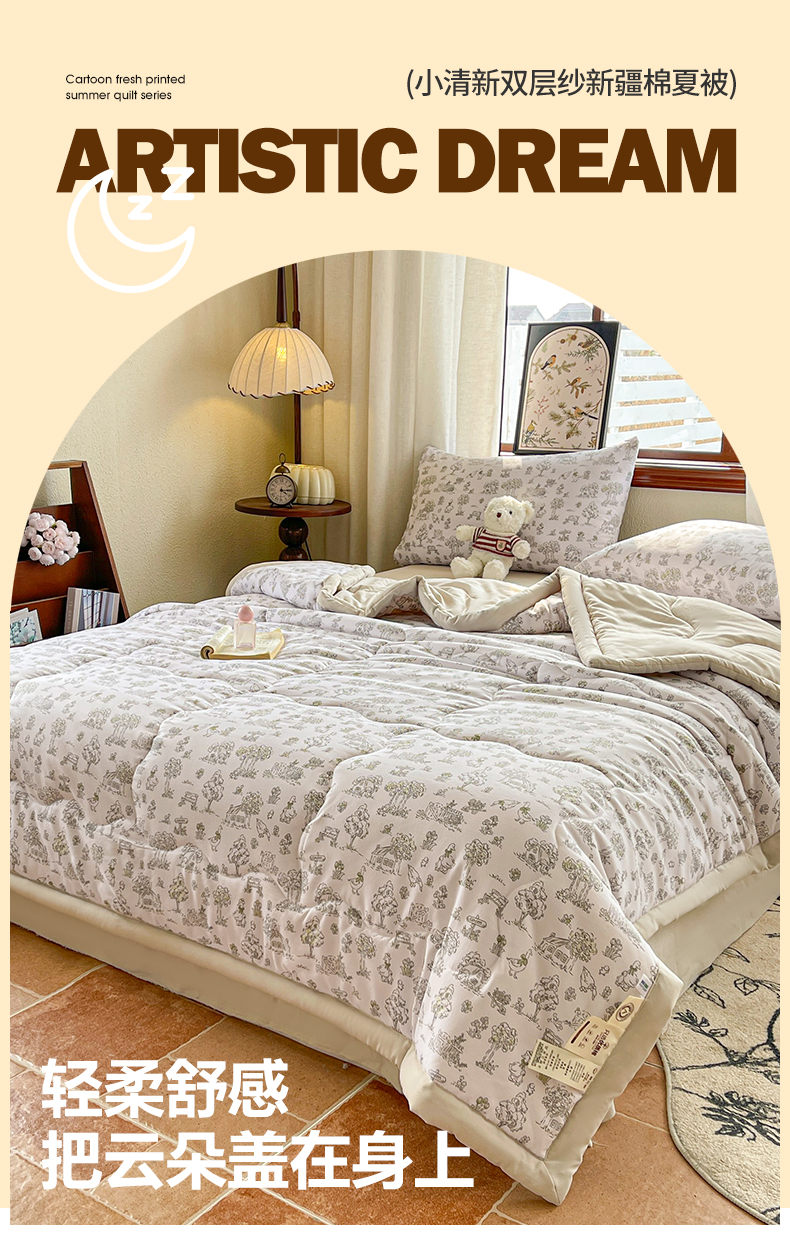 (总)易博 2025新款100% 棉花小清新双层纱新疆棉夏被夏凉被空调被棉花被(带买家秀),爱丽丝,蝶舞,动物世界,好丽友,花趣,花园兔,可爱萌宠 卡其,可爱萌宠 绿,腊肠狗,曼塔玫瑰,绵绵南瓜,木马奇缘,山茶物语,田园牧歌,熊博士,组合图仅做展示