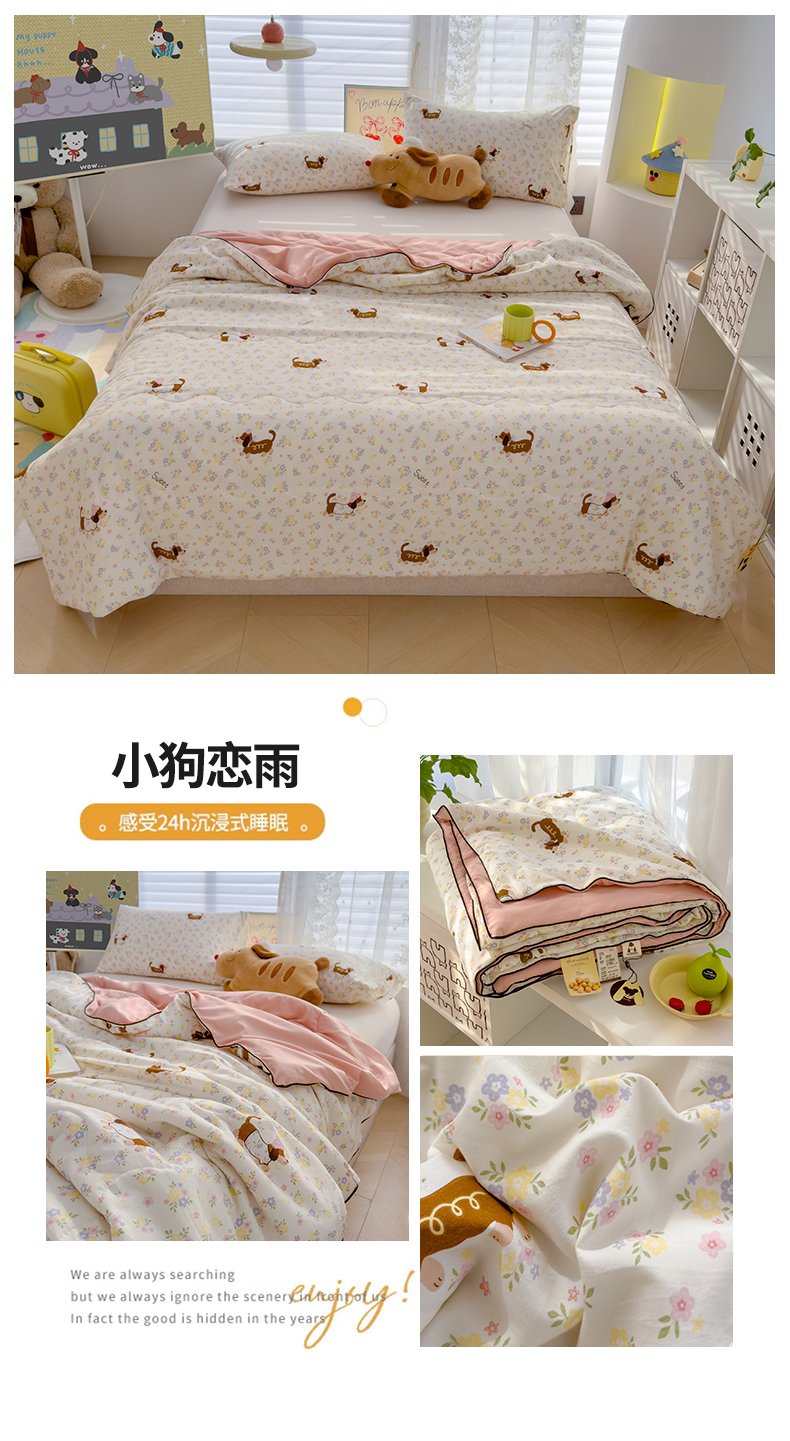 商品名称:贝扬思 2025新款水洗皱皱纱系列夏被夏凉被空调被(风格一) 小狗恋雨