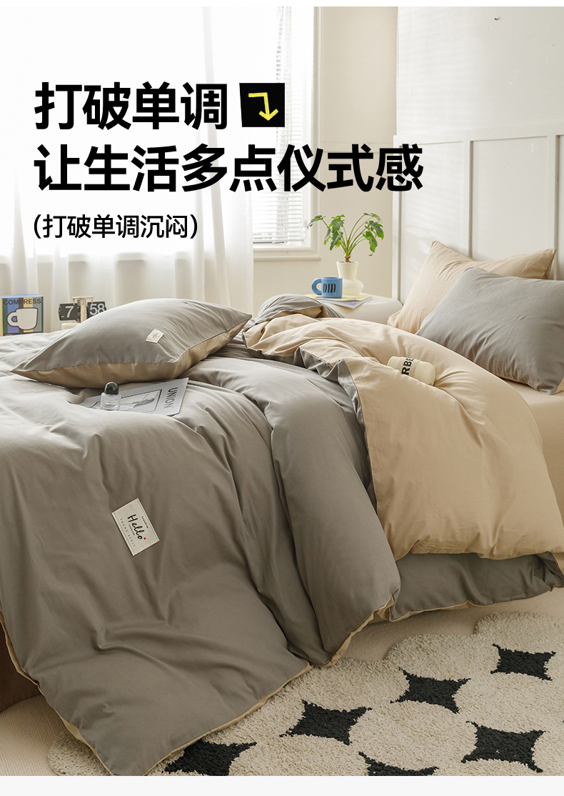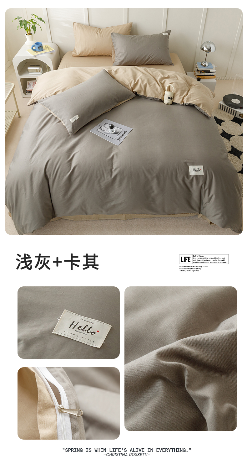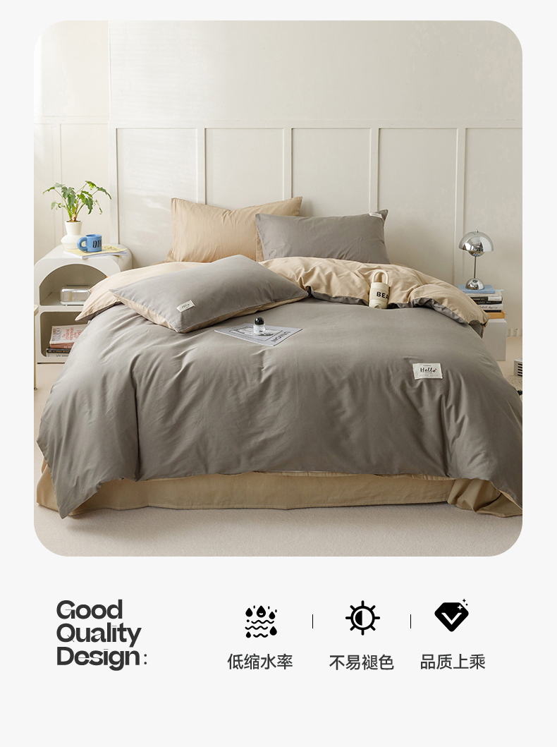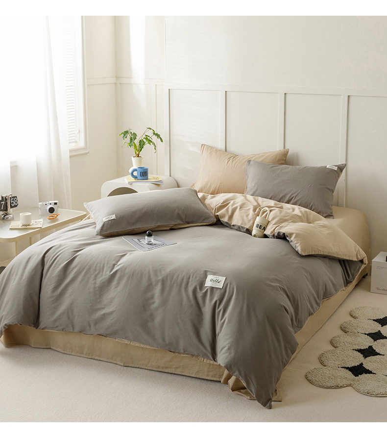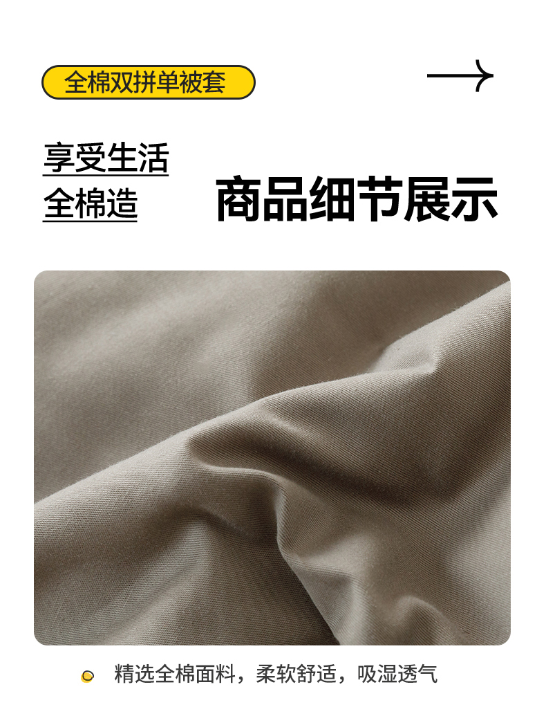 商品名称:798家纺 2026新款全棉13070纯色双拼系列单被套场景一 浅灰+卡其