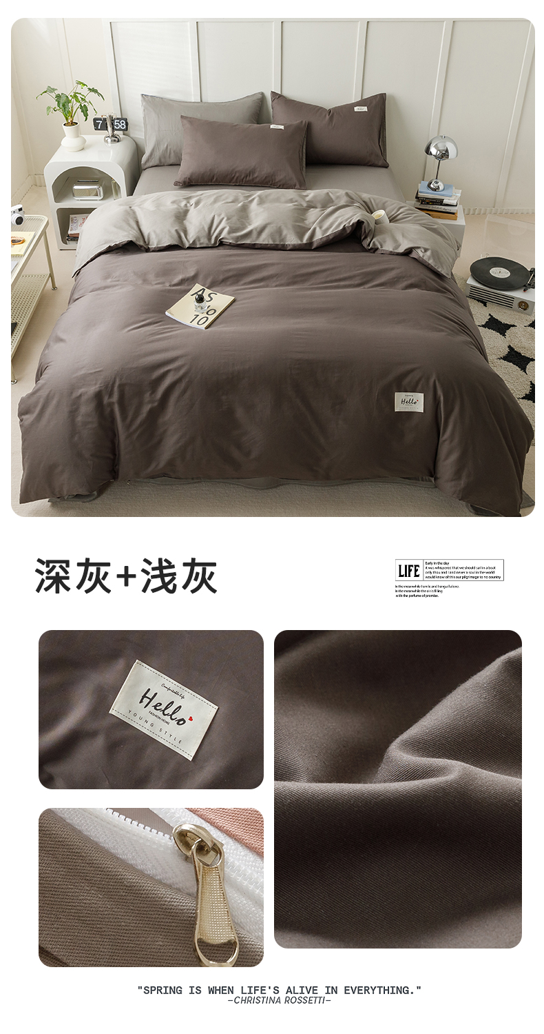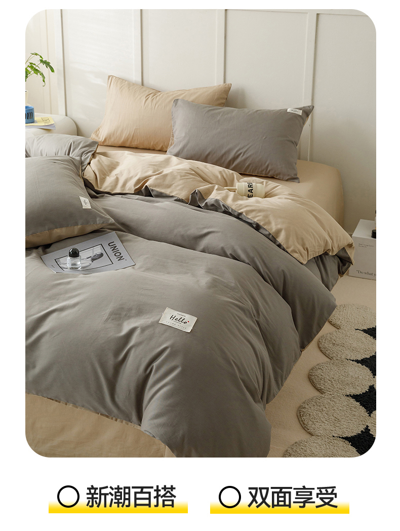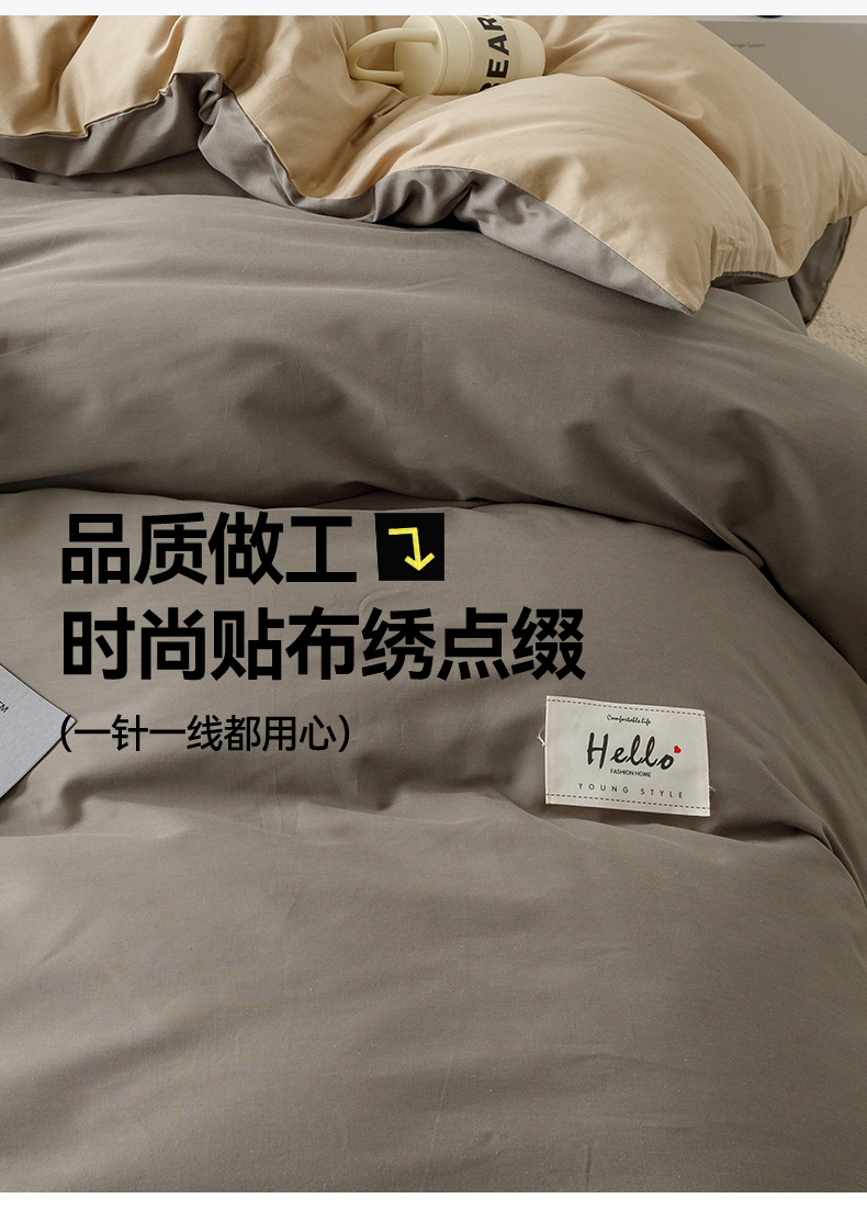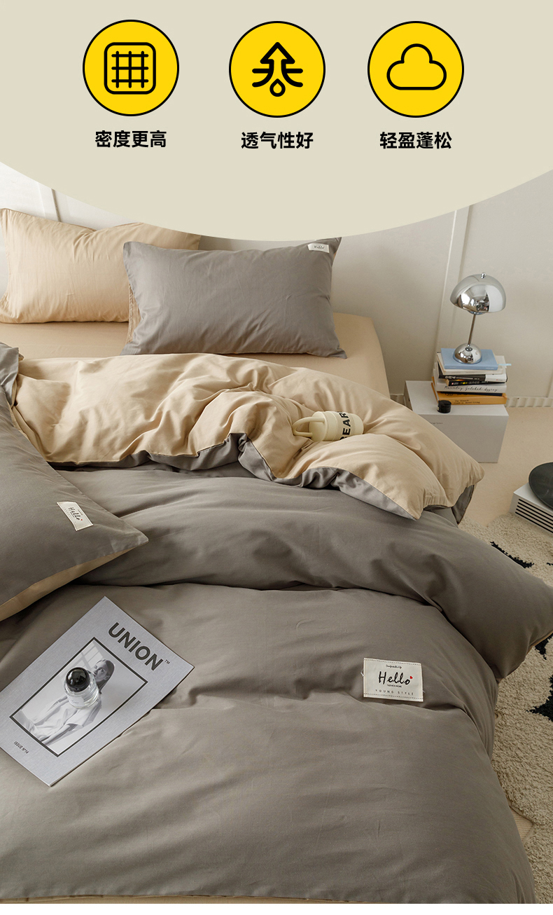 商品名称:798家纺 2026新款全棉13070纯色双拼系列单被套场景一 浅灰+卡其