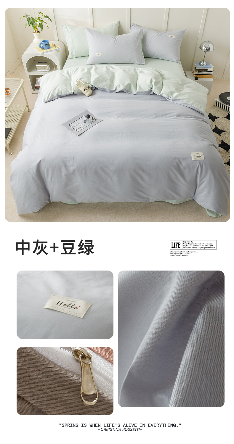 (总)798家纺 2026新款全棉12868学生三件套系列-纯色,布鲁蓝+梧桐灰,豆绿+芍药粉,豆沙+色布灰,果绿+卡其,米黄+豆绿,抹茶绿+浅灰,奶白+豆绿,牛仔蓝+浅灰,浅粉+天兰,浅蓝+浅灰,浅夏紫+芍药粉,深灰+浅灰,天蓝+中灰,杏黄+抹茶绿,中灰+豆绿