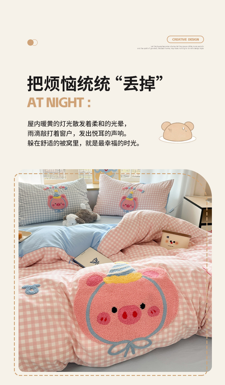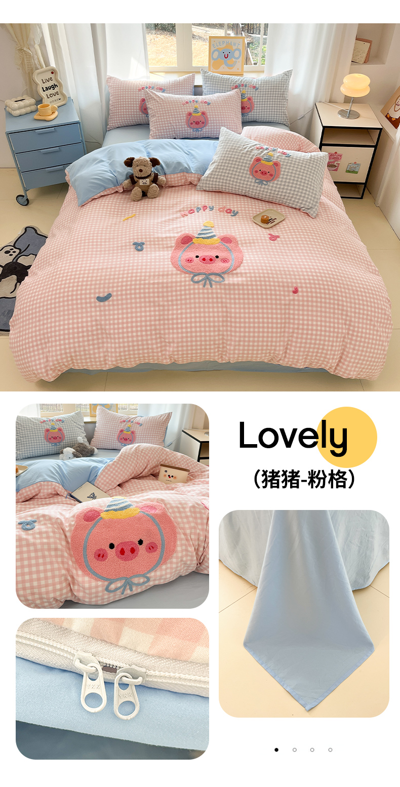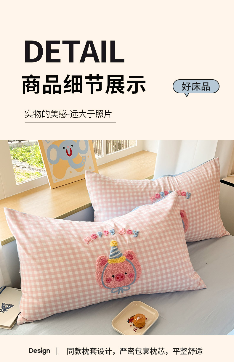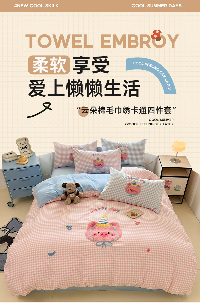 商品名称:乐坊2025新款云朵棉毛巾绣四件套 猪猪-粉格