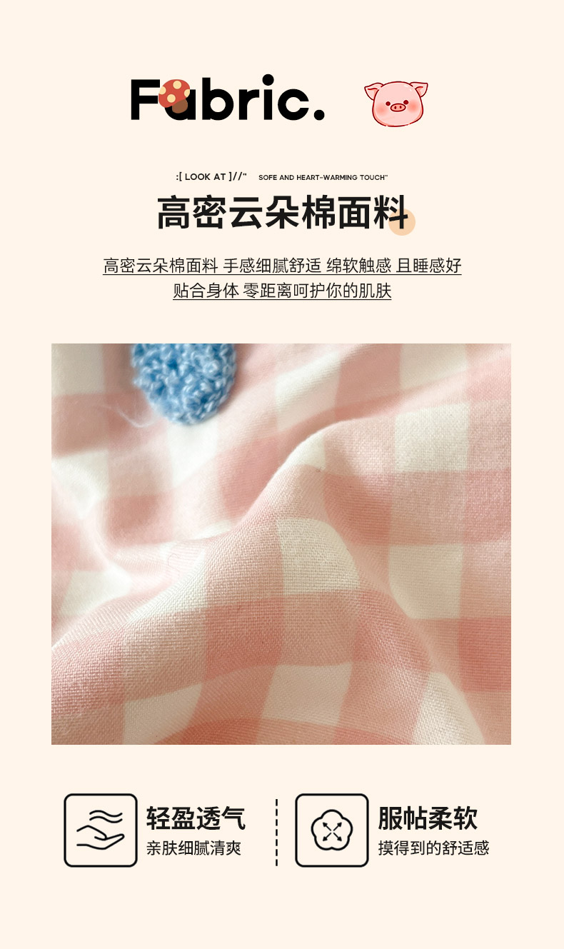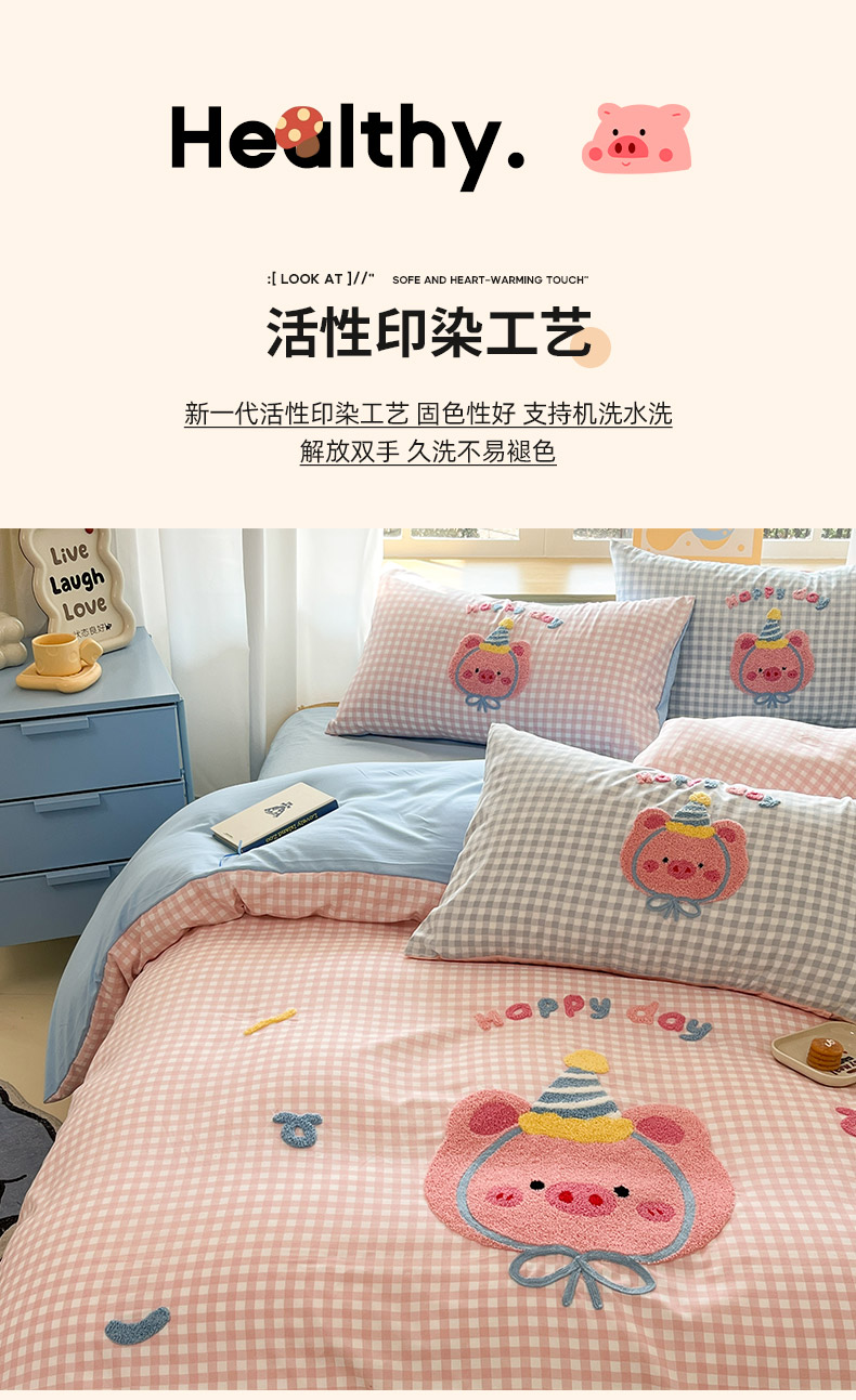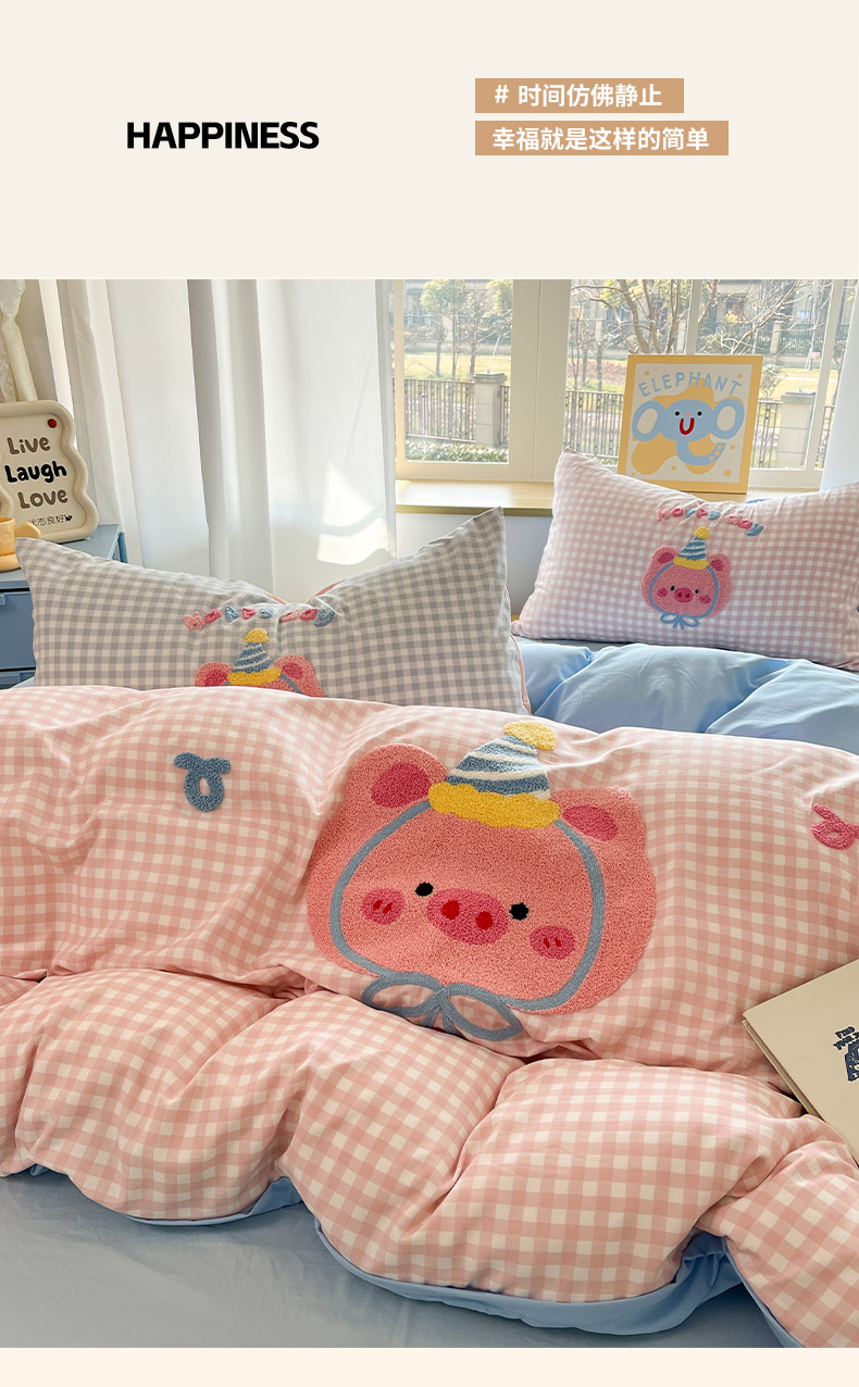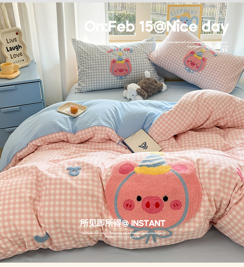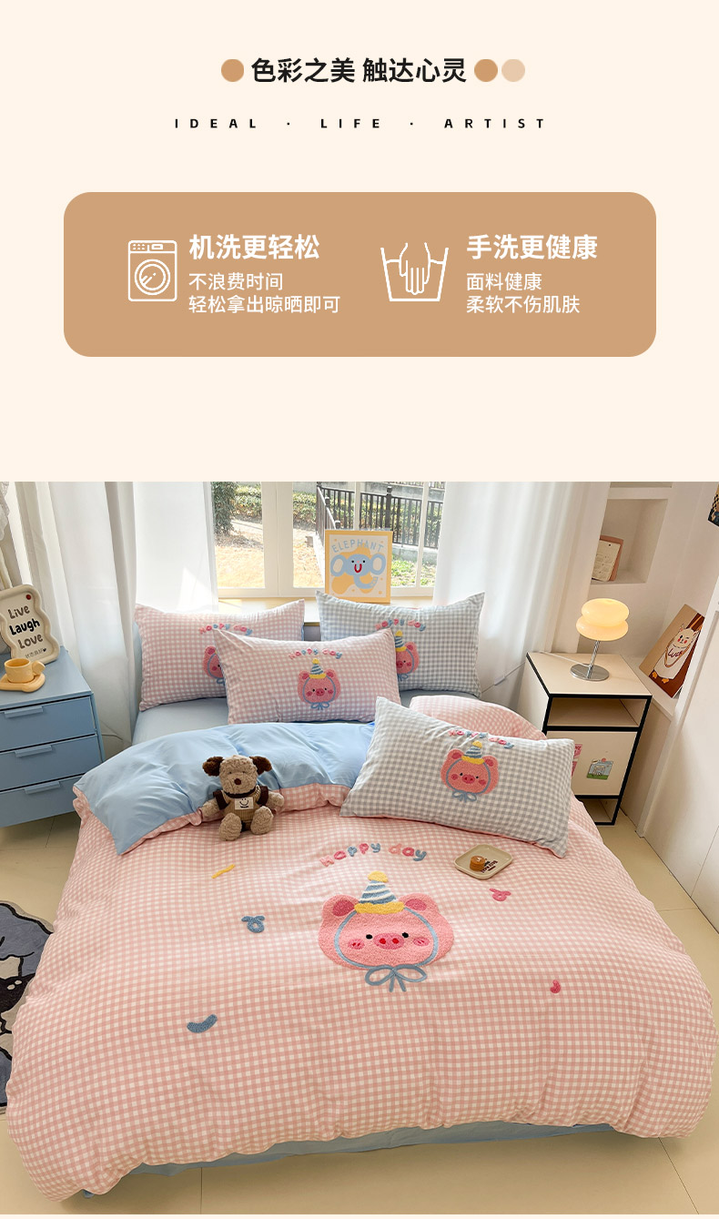 商品名称:乐坊2025新款云朵棉毛巾绣四件套 猪猪-粉格