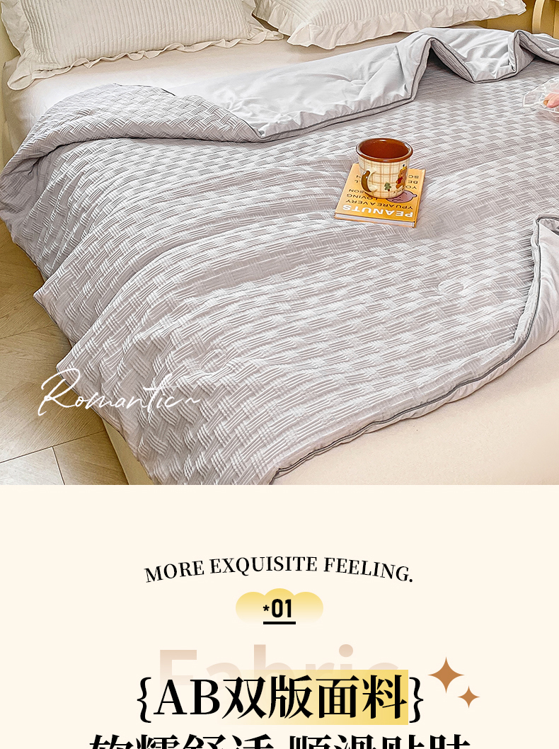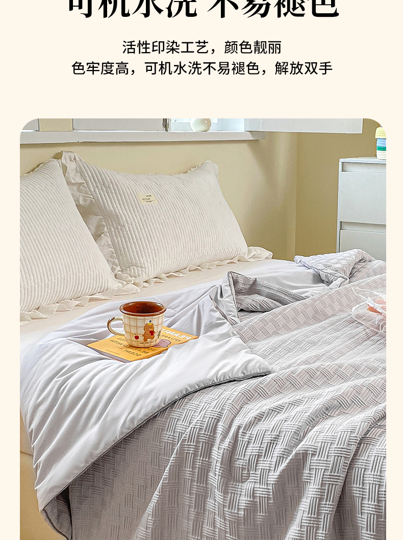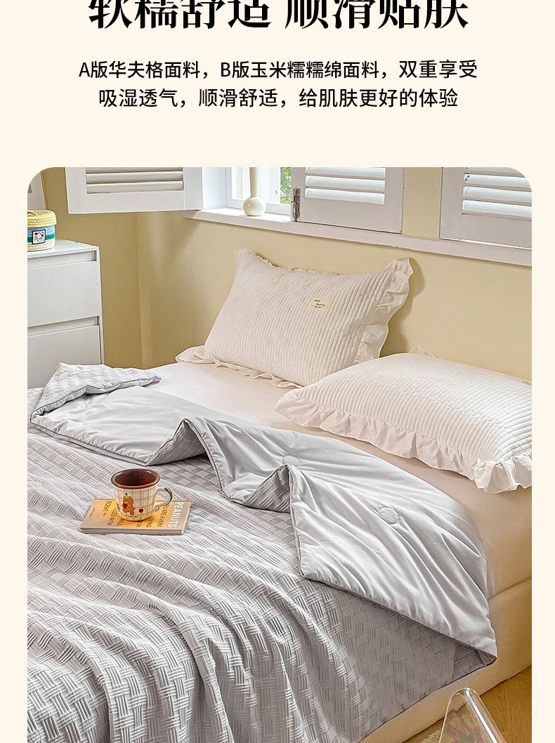 (总)左右家纺 2025新款华夫格大豆夏被被子被芯,浅白,浅粉,浅灰,浅绿,组合