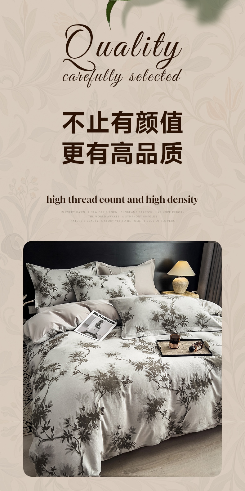 当前位置: 91家纺网 > 商品网购 > 床品套件 > 四件套 > 全棉普通四件套 > 倾慕家纺 2025新款60S提花全棉四件套 南枝绿