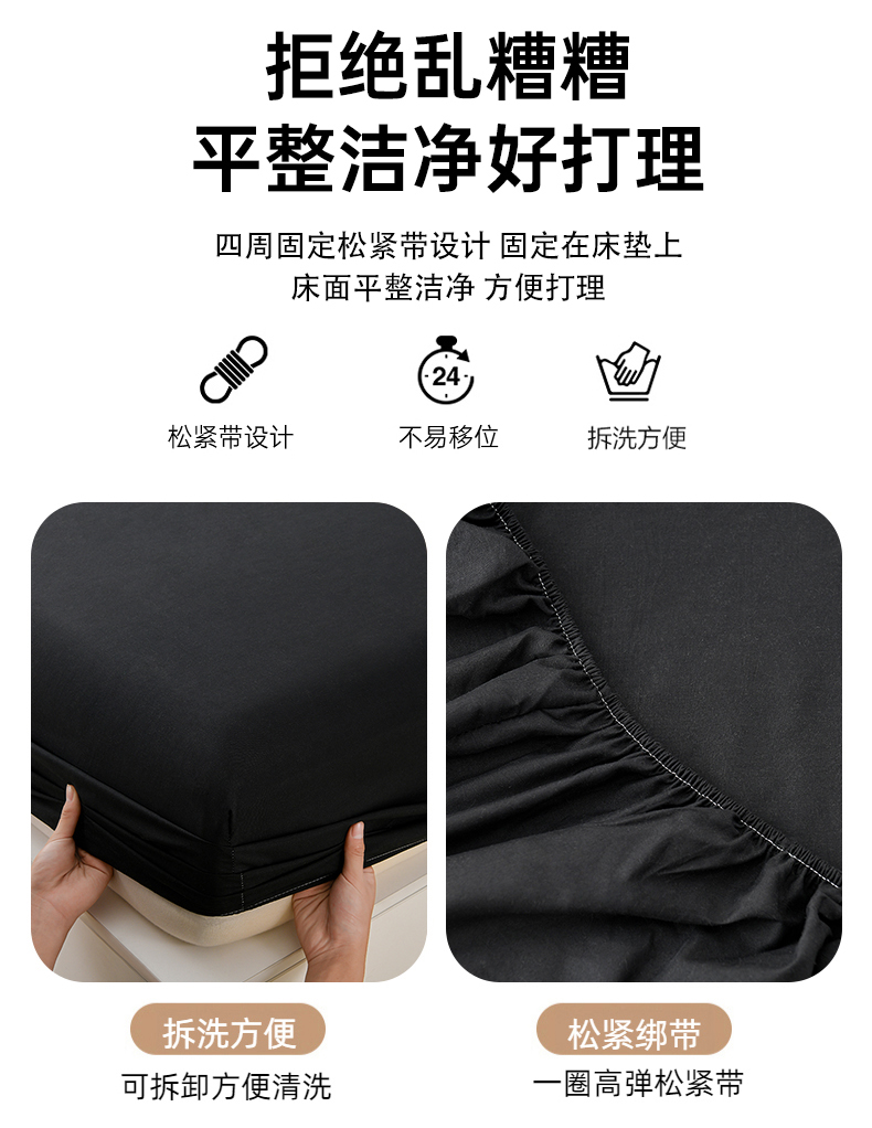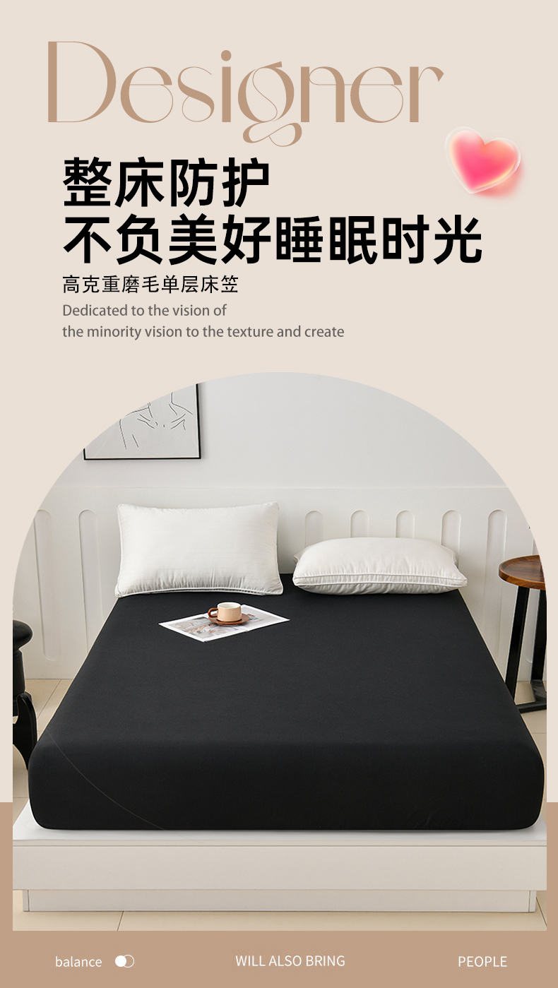 商品名称:一禾 90g高克重磨毛单床笠-特殊跨境尺寸可定制 黑色