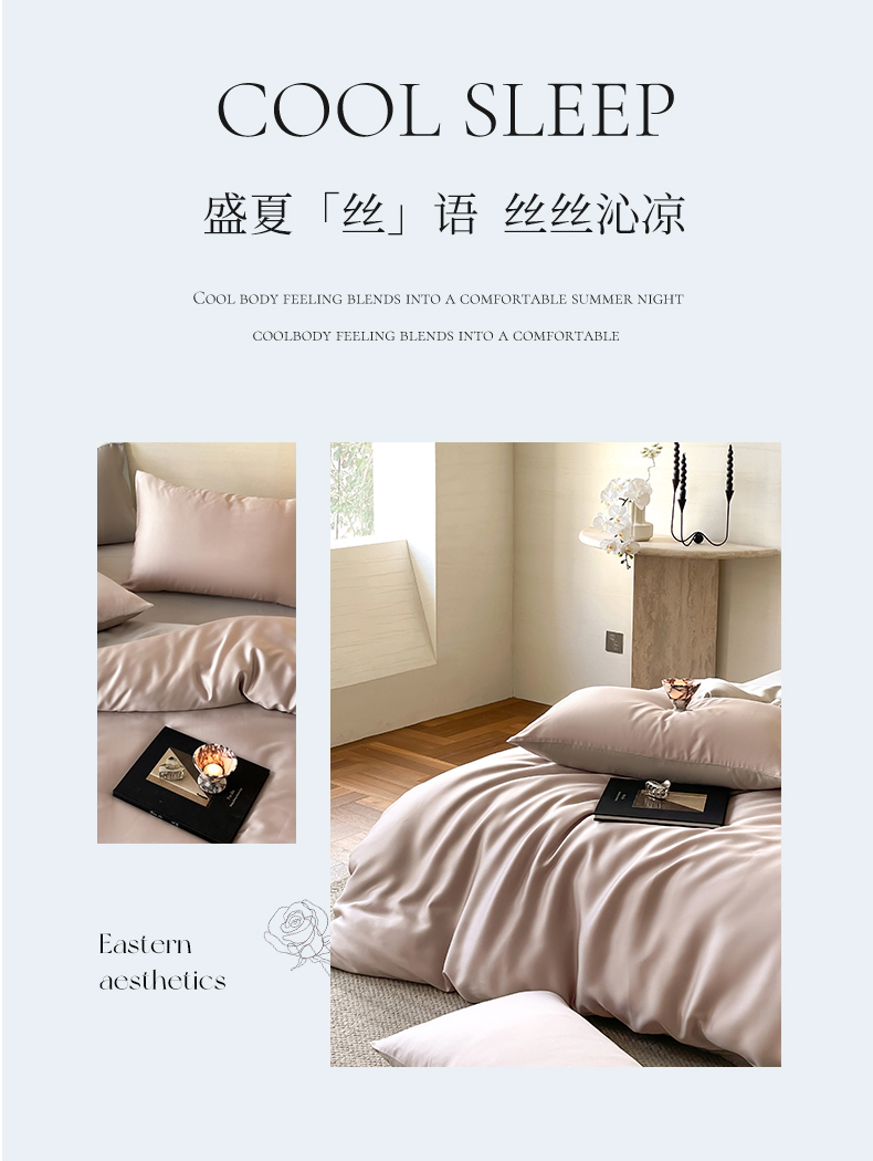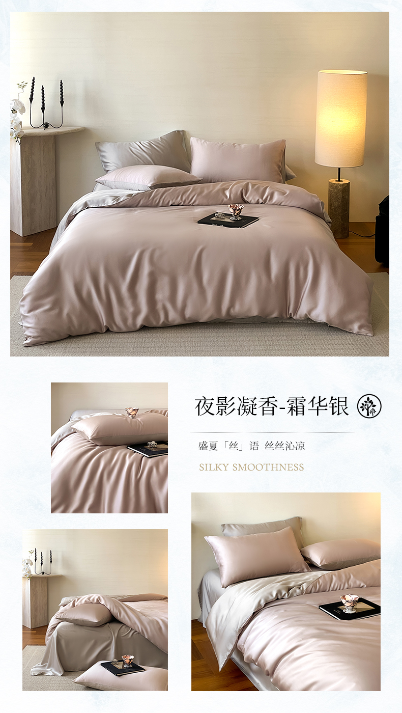 商品名称:启航家居 2025新款60s纯色兰精天丝四件套 夜影凝香-霜华银