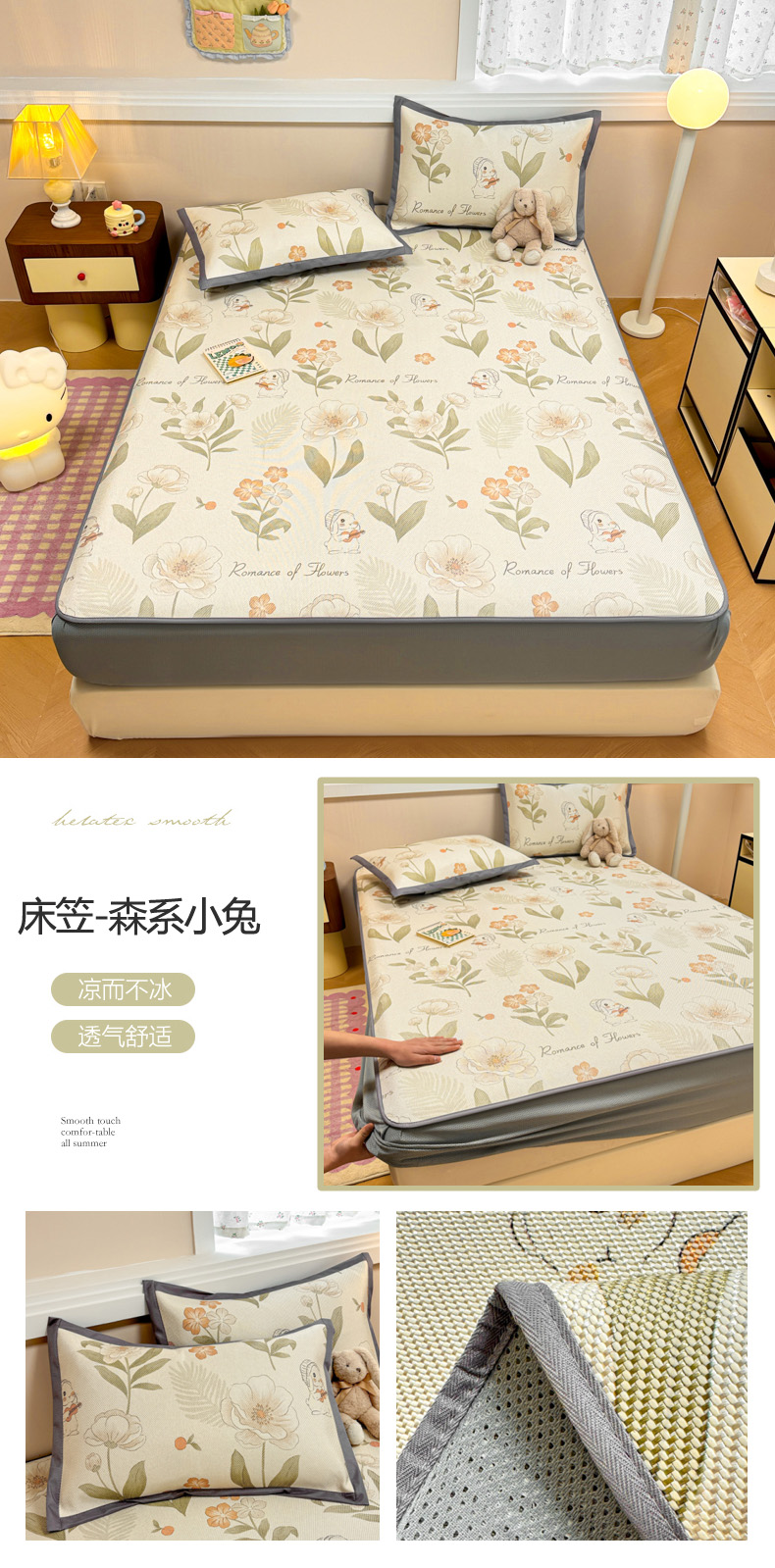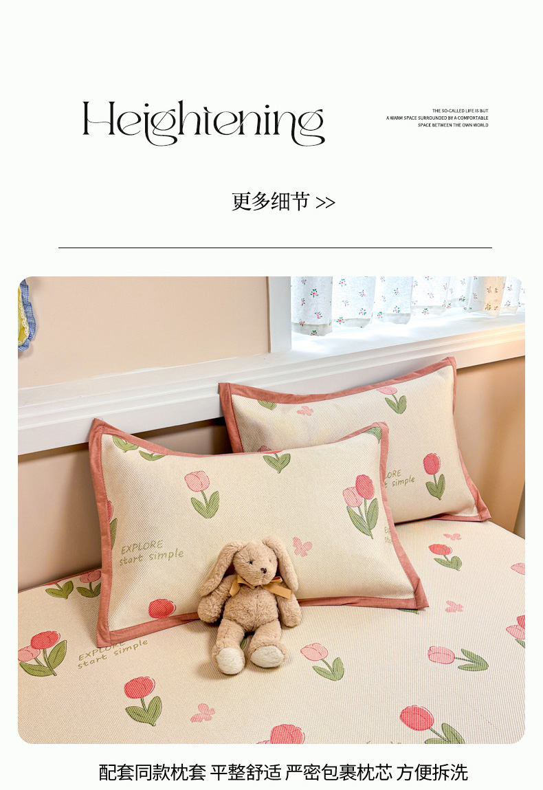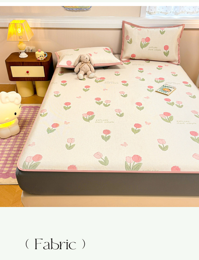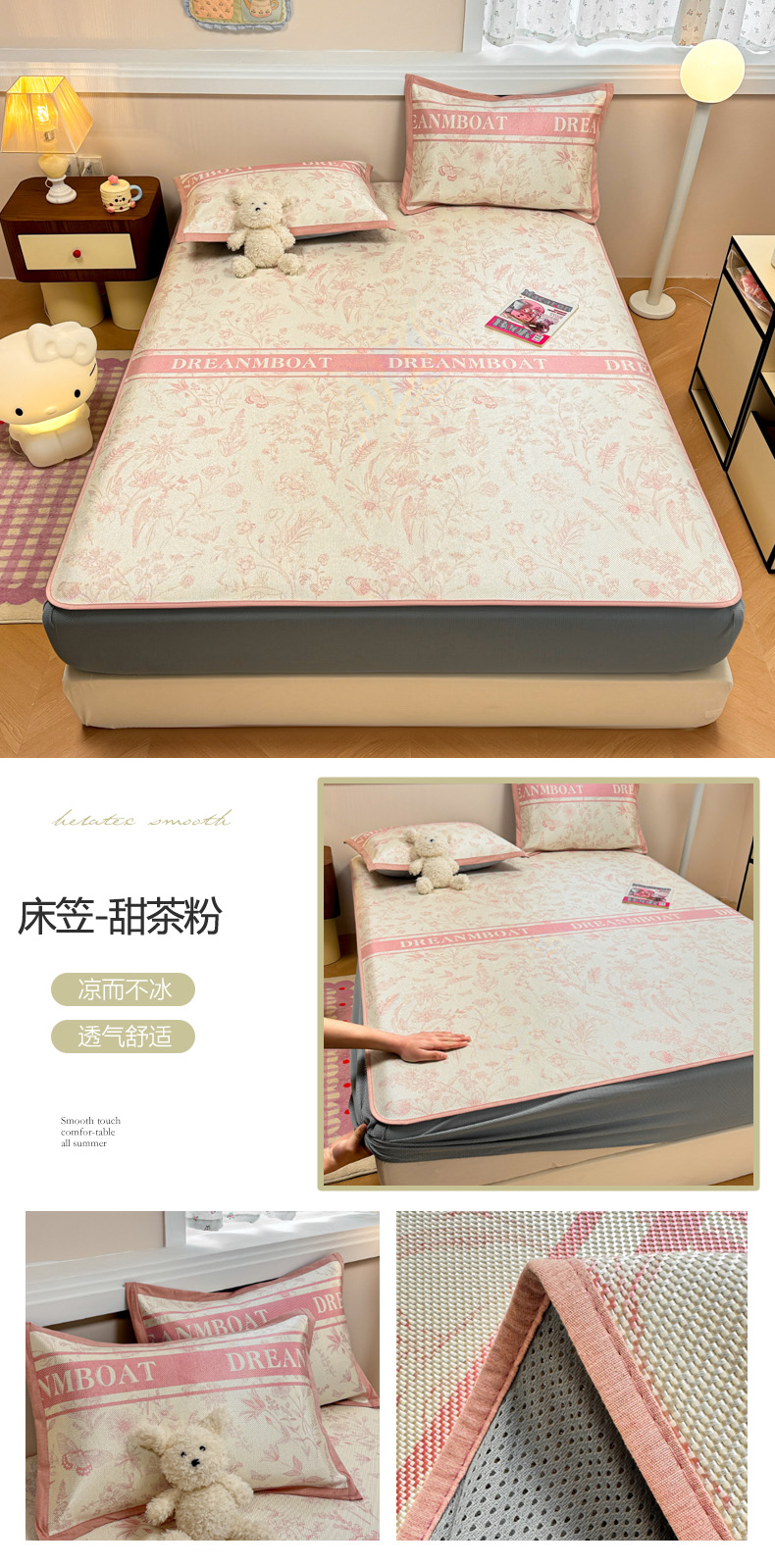 沐慕 2025新款高克重600D冰丝印花冰藤床笠 床笠-粉嫩郁金香