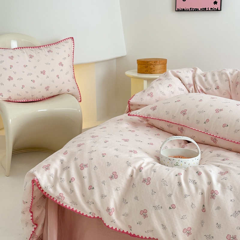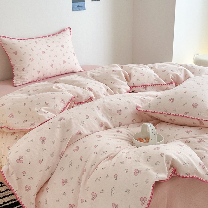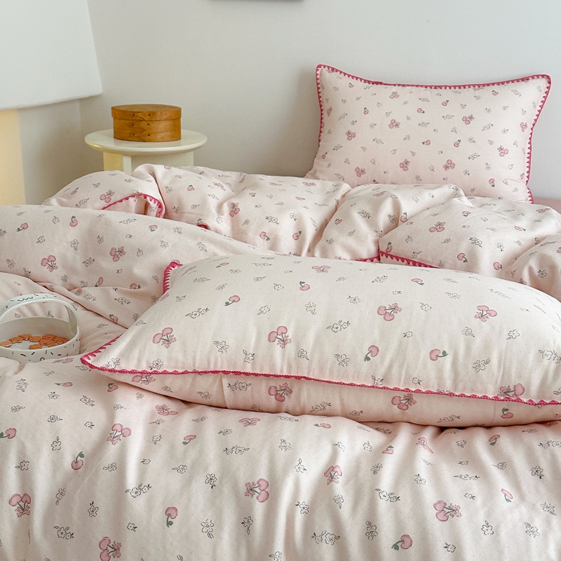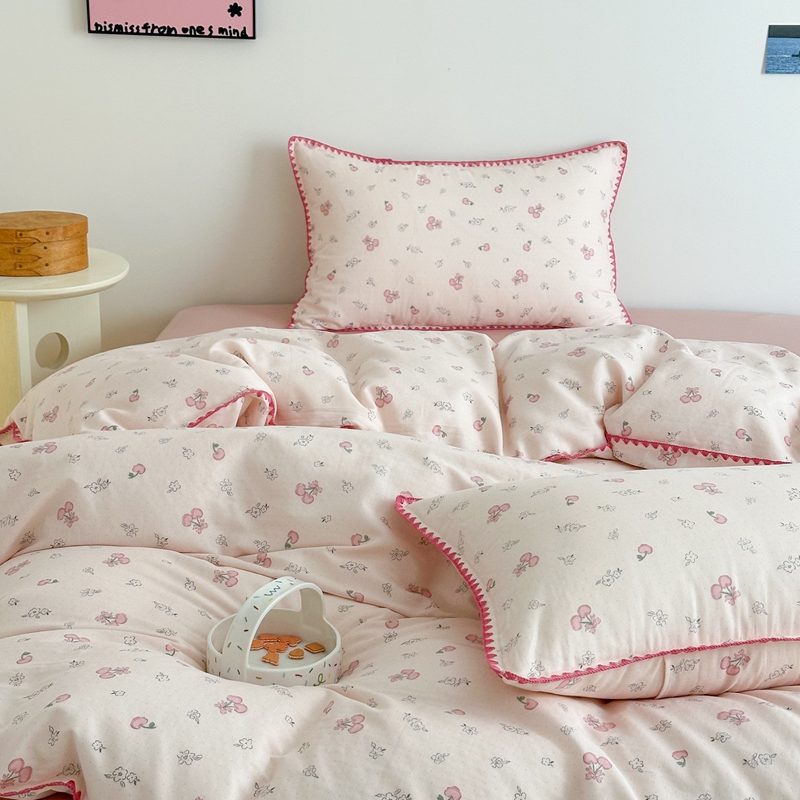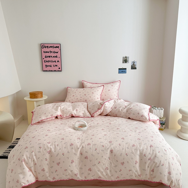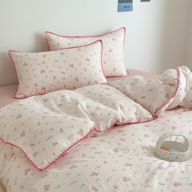 当前位置: 91家纺网 > 商品网购 > 床品套件 > 四件套 > 全棉普通四件套 > 2025新款工艺款全棉双层纱小清新贝壳边四件套 知樱