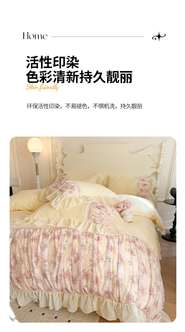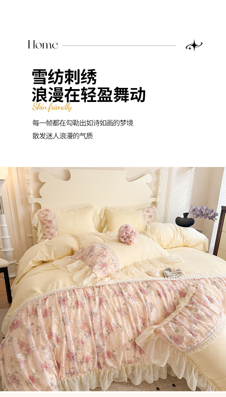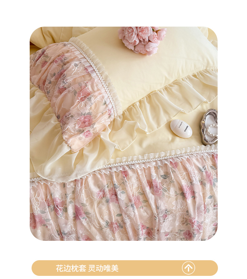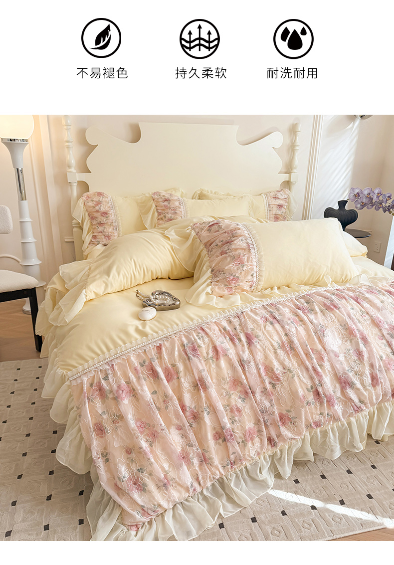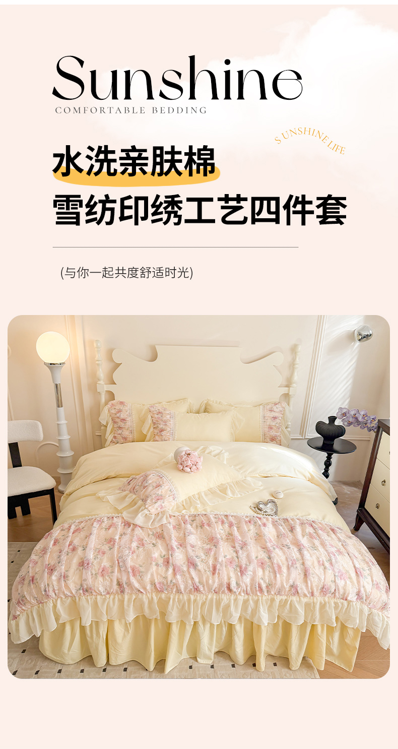 当前位置: 91家纺网 > 商品网购 > 床品套件 > 四件套 > 水洗棉四件套 > 富盛家纺 2025新款水洗亲肤棉雪纺印绣工艺四件套公主风四件套巴黎春天系列 巴黎春天-黄
