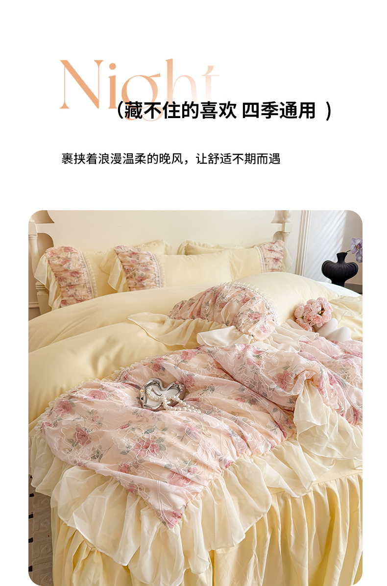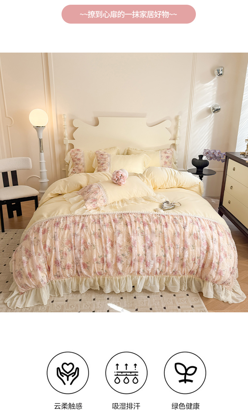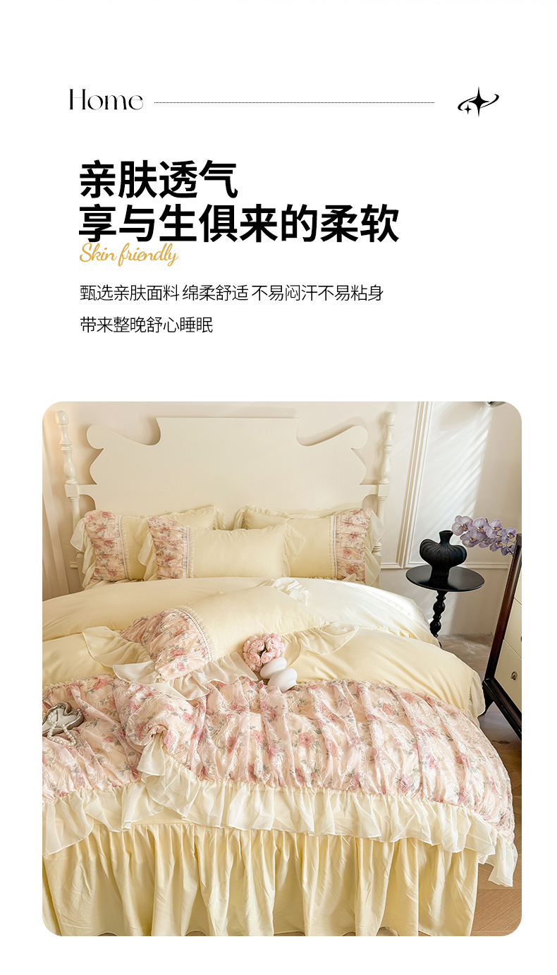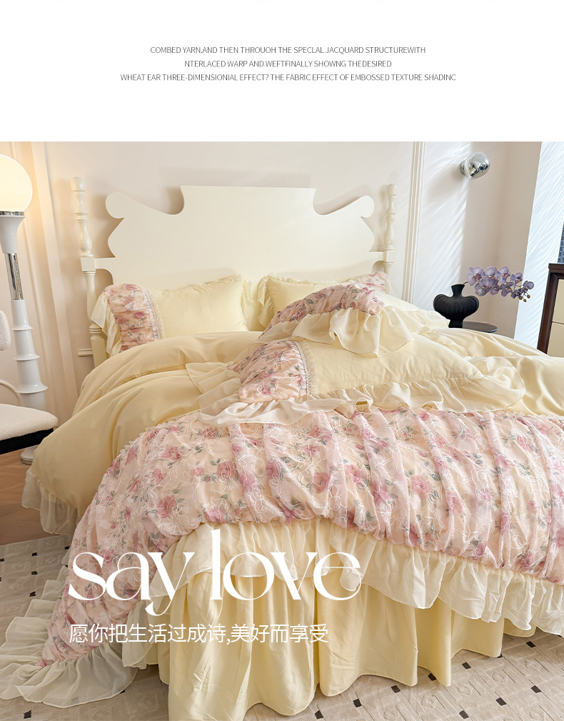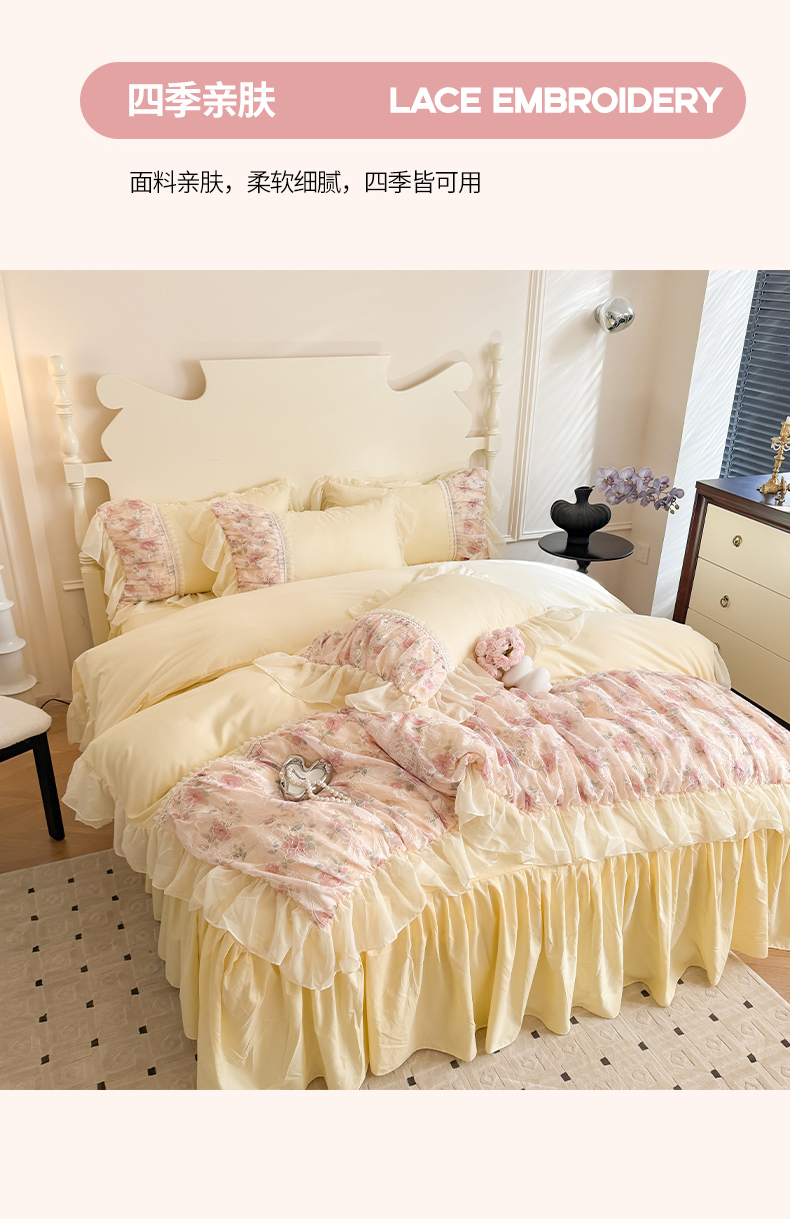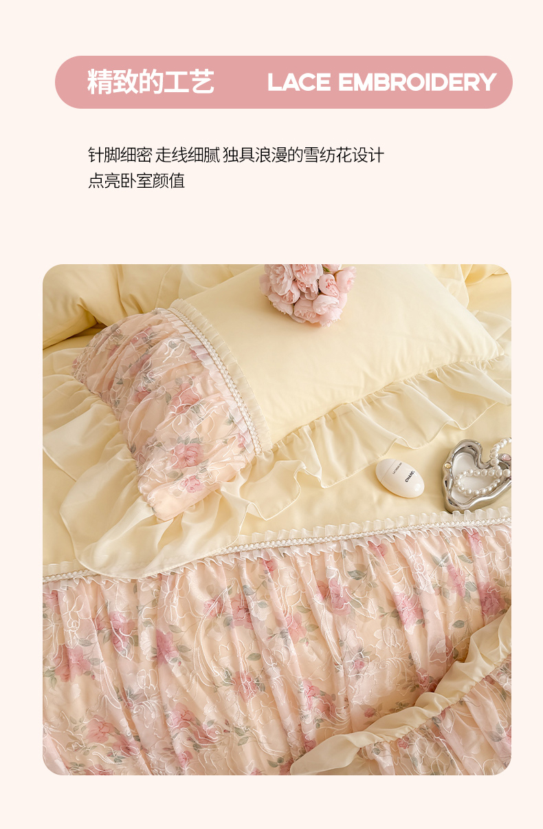 当前位置: 91家纺网 > 商品网购 > 床品套件 > 四件套 > 水洗棉四件套 > 富盛家纺 2025新款水洗亲肤棉雪纺印绣工艺四件套公主风四件套巴黎春天系列 巴黎春天-黄