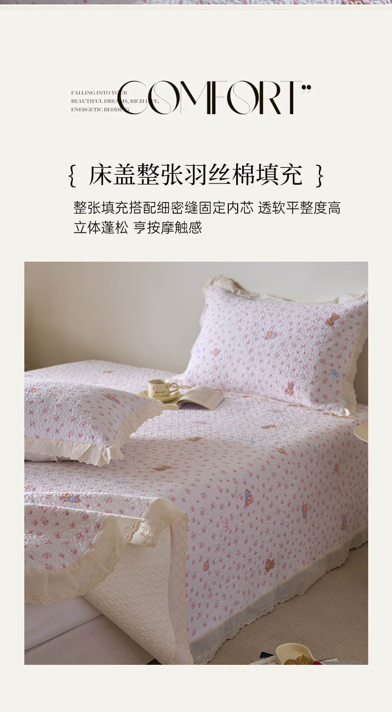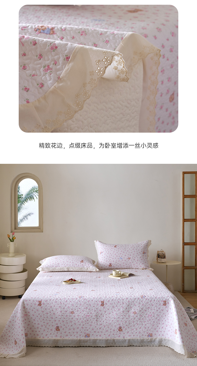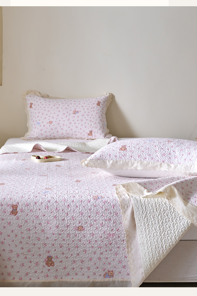 商品名称:漫仙阁家纺 2025新款热卖法式花边款加厚床盖床盖三件套 小熊淘淘