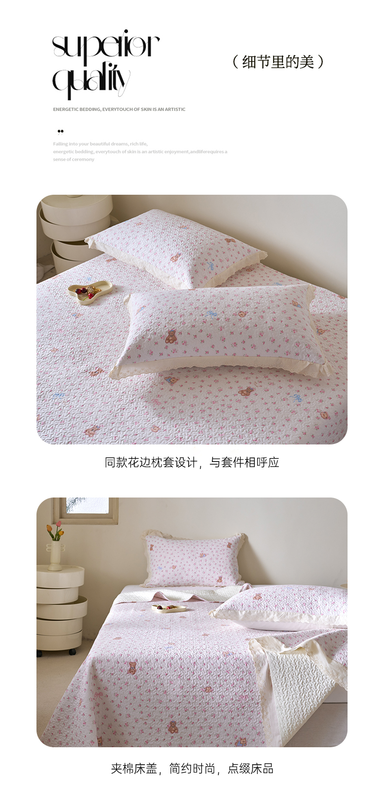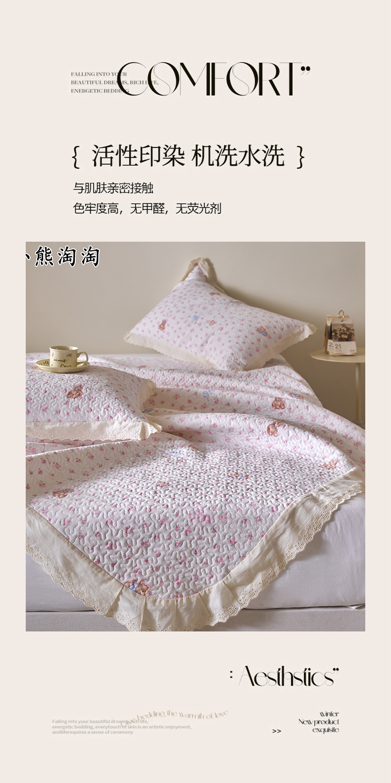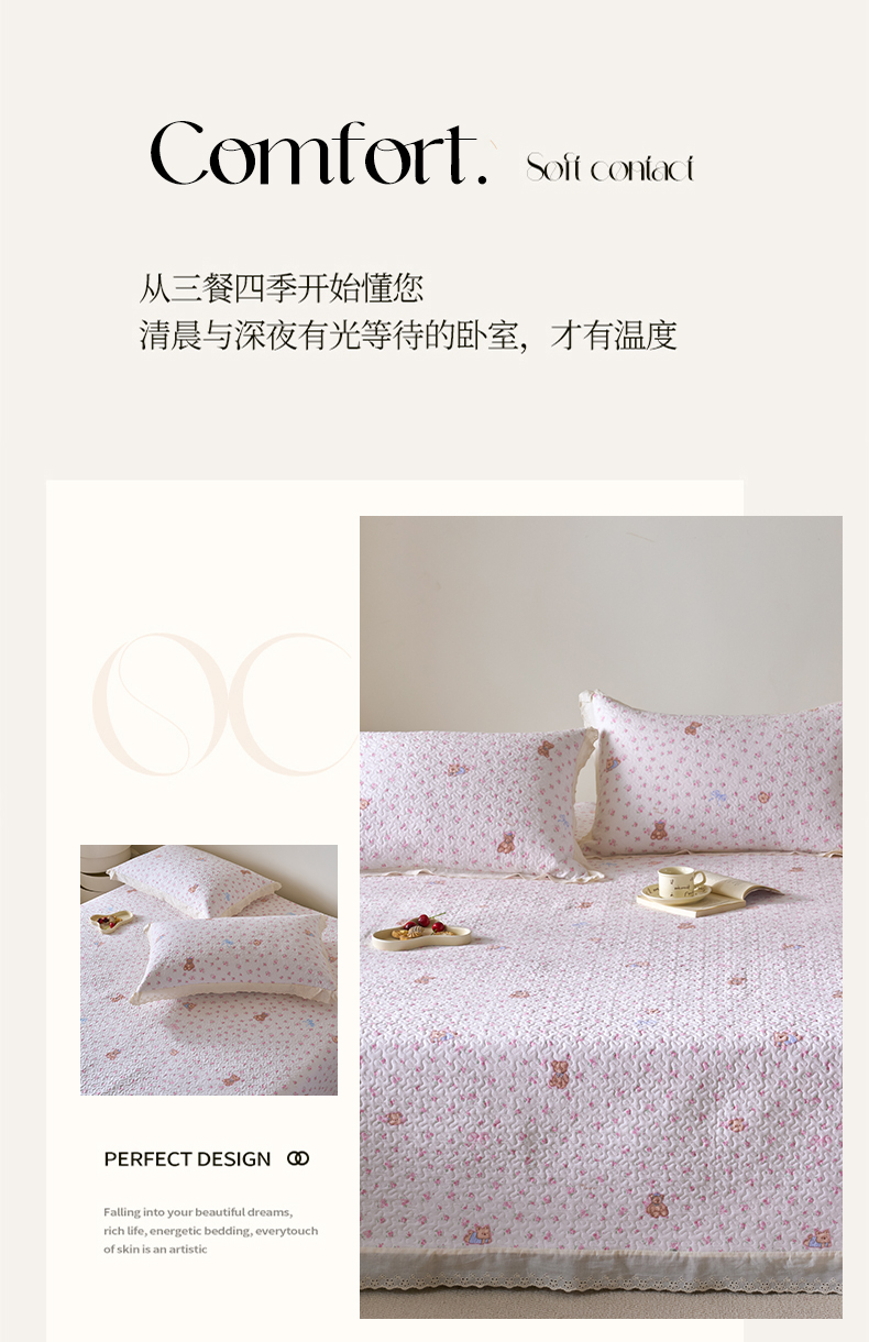 商品名称:漫仙阁家纺 2025新款热卖法式花边款加厚床盖床盖三件套 小熊淘淘