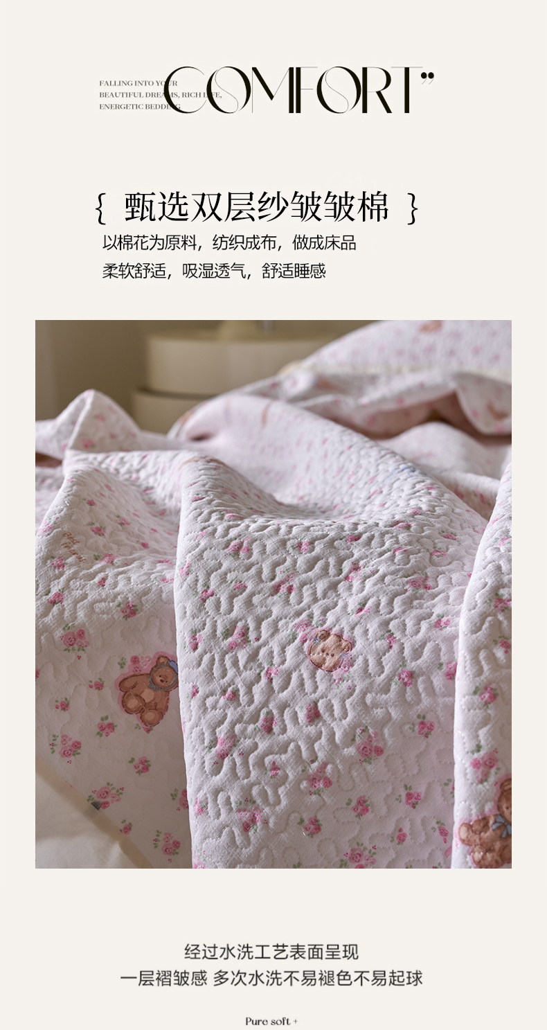 (总)漫仙阁家纺 2025新品云朵棉可爱风卡通烫画单床笠枕套三件套,小浣熊,邻家女孩,小青蛙,兔小姐,花仙子,狗狗家族